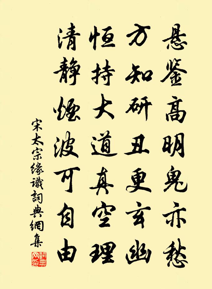 詩詞名句歷史字典書法欣賞書法字典國語詞典說文解字康熙字典古漢語字典標 題 作 者 詩 句 緣識作者:宋太宗 朝代:宋代緣識原文懸鑒高明鬼亦愁,方知研醜更玄幽。恆持大道真空理,清靜煙波可自由。詩詞問答問:緣識的作者是誰?答:宋太宗問:緣識寫於哪個朝代?答:宋代宋太宗緣識書法欣賞緣識書法作品詩詞推薦上之回曹勛〔宋代〕衛騎絕沙漠,關驅過玉門。雲旗梢月窟,輦道屬烏孫。萬國森環衛,三靈駭駿奔。聲容同日月,威德被乾坤。巡狩長亭怨慢周密〔宋代〕記千竹、萬荷深處。綠淨池台,翠涼亭宇。醉墨題香,閒簫橫玉盡吟趣。勝流星聚。知幾誦、燕台句。零落碧雲空余自東山往金峨住山戒師迎於中塗到上方泉石鄭清之〔宋代〕一奩鳴瀑寫天紳,怪石鯨奔欲化鱗。靈隱飛來真相後,老坡重證戒師身。居山話計今成趣,造物工夫總待人。自喜秋日望西陽劉滄〔唐代〕古木蒼苔墜幾層,行人一望旅情增。太行山下黃河水,銅雀台西武帝陵。風入蒹葭秋色動,雨余楊柳暮煙凝。野花送盧郎中赴河東裴令公幕白居易〔唐代〕別時暮雨洛橋岸,到日涼風汾水波。荀令見君應問我,為言秋草閉門多。登舟雨作再作一絕張嵲〔宋代〕平生過眼無窮景,未省經行有此奇。煙雨連山催去棹,不容青壁更題詩。偈五首釋彌光〔宋代〕一拶當機怒雷吼,驚起須彌藏北斗。洪波浩渺浪滔天,拈得鼻孔失卻口。次韻韓毅伯志別王炎〔宋代〕江頭三老風檣急,詩叟欲行還卻立。剛腸不解兒女悲,肯為別離襟袖濕。翰墨場中空白眉,牙游不遂休賓士。平生歲暮雜感陸游〔宋代〕歲盡霜雪稠,相望僵萬木;天豈私梅花,獨畀此芬馥。高標我自有,何憾老空谷。人言和羹實,晚或參鼎餗。哀哉游洞霄宮丁先民〔宋代〕午過青山流,揚鞭入洞霄。旁觀昔隱跡,信步冷泉橋。玉簡金龍古,仙風道古饒。小軒曾寄宿,秋雨鬧芭蕉。老馬行方回〔宋代〕十年何啻騎千馬,望風此馬甘為下。老夫與爾共艱難,定非苟且相逢者。憶昔專城鬢欲霜,宇宙茫茫成戰場。指呼念奴嬌(夏夜流螢照窗)陳著〔宋代〕暑天向晚,最相宜、一簇涼生新竹。瀟灑軒窗還此景,此景真非凡俗。猿鶴相隨,煙霞自在,與我交情熟。人生如郊廟歌辭。晉朝饗樂章。再舉酒佚名〔唐代〕朝野無事,寰瀛大康。聖人有作,盛禮重光。萬國執玉,千官奉觴。南山永固,地久天長。食兔林宗放〔宋代〕弱質司明視,虛名直望舒。軼群辭上蔡,能事到中書。狡計空多窟,珍盤竟付廚。獨將毫未效,曾紀汗青餘。虞美人葉夢得〔宋代〕梅花落盡桃花小。春事餘多少。新亭風景尚依然。白髮故人相遇、且留連。家山應在層林外。悵望花前醉。半天煙端午內中帖子詞皇后閣王珪〔唐代〕夕然辟惡仙香度,朝結延年帝縷成。願上玉宸千萬壽,薰風常泛舜弦聲。百丈箭陳岩〔宋代〕飛瀑舂撞破的余,速如蓬矢脫桑弧。誰知水底天吳伯,曾識人間金僕姑。寄聰娘袁枚〔清代〕一枝花對足風流, 何事人間萬戶侯。生把黃金買別離, 是儂薄倖是儂愁。智果庵徐月溪〔宋代〕居廛終是俗,飯罷即禪房。竹蔭一庭綠,荷分兩岸香。拙鳩呼雨緩,老衲補衣忙。不厭頻來此,岩深風自涼。應百里李天益來求作奉川十詠似之龍松陳著〔宋代〕皮皴肉緊發蒼然,伏雪眠風傲歲年。不見南陽龍臥者,本心元自直通天。名句推薦中秋誰與共孤光。把盞悽然北望。蘇軾《西江月·世事一場大夢》 上不失天時,下不失地利,中得人和,而百事不廢。荀子《荀子·王霸》 樂遊原上清秋節,鹹陽古道音塵絕。李白《憶秦娥·簫聲咽》 養心須淡泊,凡足以累吾心者勿為也。王永彬《圍爐夜話·第九八則》 求財恨不多,財多害自己。佚名《增廣賢文·上集》 繞池閒步看魚游,正值兒童弄釣舟。白居易《觀游魚》 母欺子,子而不信其母,非以成教也。韓非及後人《韓非子·外儲說左上》 暮從碧山下,山月隨人歸。李白《下終南山過斛斯山人宿置酒》 雲雨朝還暮,煙花春復秋。李珣《巫山一段雲·古廟依青嶂》 勸君莫惜金縷衣,勸君惜取少年時。杜秋娘《金縷衣》