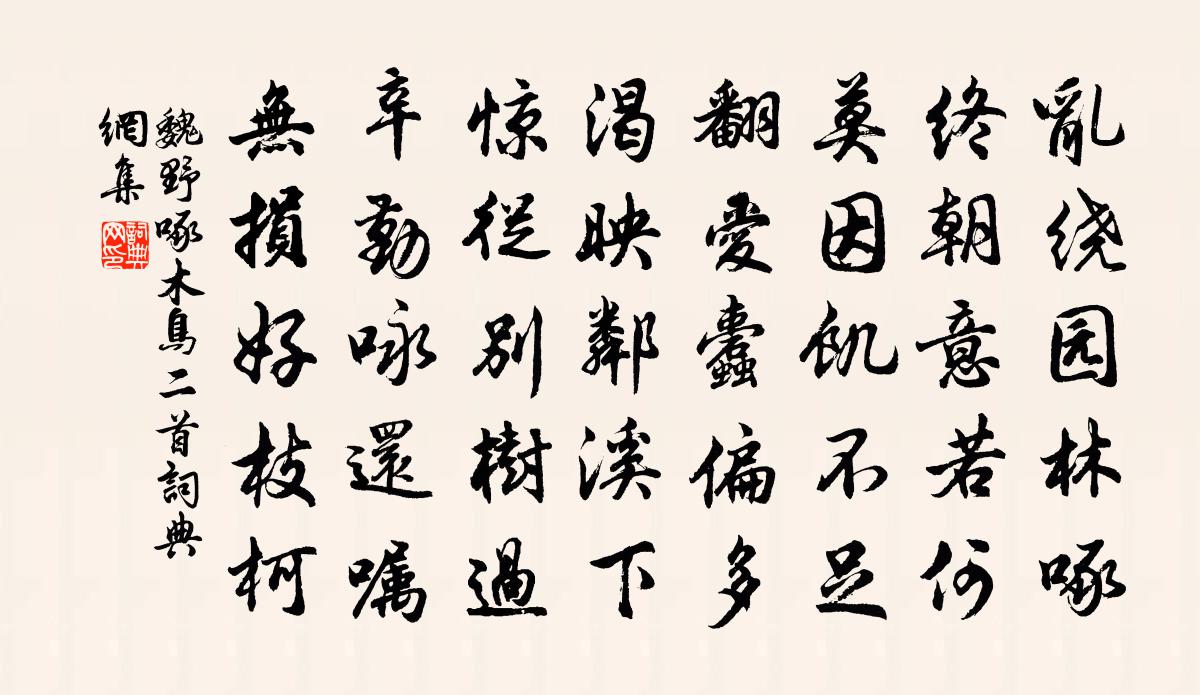詩詞名句歷史字典書法欣賞書法字典國語詞典說文解字康熙字典古漢語字典標 題 作 者 詩 句 啄木鳥二首作者:魏野 朝代:宋代啄木鳥二首原文亂繞園林啄,終朝意若何。莫因飢不足,翻愛蠹偏多。渴映鄰溪下,驚從別樹過。辛勤詠還囑,無損好枝柯。詩詞問答問:啄木鳥二首的作者是誰?答:魏野問:啄木鳥二首寫於哪個朝代?答:宋代魏野啄木鳥二首書法欣賞啄木鳥二首書法作品詩詞推薦雜題司空圖〔唐代〕孤枕聞鶯起,幽懷獨悄然。地融春力潤,花泛曉光鮮。獨酌王績〔唐代〕浮生知幾日,無狀逐空名。不如多釀酒,時向竹林傾。和尚善西禪寺沖虛宮詩李洪〔宋代〕學道尤須惜寸陰,漫勞飯袋走叢林。溈山自昔提宗印,閩嶠於今絕賞音。香髓得皮無著相,非心非佛見機深。豐乾役誠齋劉過〔宋代〕省齋去國艮齋老,不獨宣尼嘆乏才。試數諸公有名者,廬陵那得兩誠齋。追憶征西幕中舊事陸游〔宋代〕憶昨王師戍隴回,遺民日夜望行台。不論夾道壺漿滿,洛筍河魴次第來。擬歸田園張九成〔宋代〕出門何所見,桃李漫阡陌。東風自有情,萬物各有適。驅馳喪我真,塵垢投其隙。可憐漫不知,終日常役役。及其送給事俞學士知宣州宋庠〔宋代〕駮議東曹重,修書秘府榮。緣何厭廬久,便作偃藩行。戒道熊文戟,騰裝鶴膝兵。堯雲迷闕曙,淮雨破舟程。竹契書感陸游〔宋代〕翟公冷落客散去,蕭尹譴死人所憐。輸與桐君山下叟,一生散發醉江天。喜遷鶯·暑風涼月辛棄疾〔宋代〕謝趙晉臣敷文賦芙蓉詞見壽,用韻為謝。暑風涼月。愛亭亭無數,綠衣持節。掩冉如羞,參差似妒,擁出芙蓉花發壽陸放翁三首蘇泂〔宋代〕花間乳鹿笑相迎,拄杖穿花導鹿行。六子子孫俱宦達,三山山水亦聰明。論詩何止高南渡,草檄相看了北征。帶得榕樹樓晚眺李秉禮〔清代〕高閣登臨快晚晴,好風吹送葛衣輕。 雲中古寺疏鍾動,樹里斜陽遠岫明。 被岸軟沙眠乳犢,蘸波垂柳囀流鶯。皇后閣端午帖子夏竦〔宋代〕千門襲吉縈朱索,九禁開晨闢紫闈。宮漏正長天眷重,永宣芳訓率三妃。子靜閱仆舊舉子文有詩因次原韻劉子翬〔宋代〕雪縠烏紗氣似雲,搖毫不瞬已成文。兒時追膛無三捷,老去荒唐更十分。木裹液{滿氵右木}將底用,韶邊朋肯豈奉送李太保兼御史大夫充渭北節度使(即太尉光弼弟)岑參〔唐代〕詔出未央宮,登壇近總戎。上公周太保,副相漢司空。弓抱關西月,旗翻渭北風。弟兄皆許國,天地荷成功。長相思蔡伸〔宋代〕我心堅。你心堅。各自心堅石也穿。誰言相見難。小窗前。月嬋娟。玉困花柔並枕眠。今宵人月圓。行香子 憶師父訓號白雲子,名丹桂,字昌齡王丹桂〔元代〕幼悟離塵。鍊汞烹銀。把壺中、造化區分。虎龍調處,滋助陽初。亘理來容,元來面,本來身。雲水為鄰。風月常漵浦柟木洞蓋神龍所居今年夏大旱縣官乞取其曾幾〔宋代〕傾心南山雲,如渴望梅嶺。朝來有佳思,拄笏不見頂。豐隆駿奔走,列缺元馳騁。雨不到人間,風伯乃為梗。生來鍾馗觀鬼閗蟆圖黃載〔宋代〕誰推酆都扃,逸此魔十二。相群斗蟆供戲劇,綃墨何從拂其跡。兩雄斗於前,四鬼相視欣欣然。小蟆對睨攤雙膝,弟茝家醉中趁筆陳著〔宋代〕前山屏開照檐綠,後山如坐膝抱屋。數畝山園半畝池,松影參差庇梅竹。九月九日天氣清,銀白金黃百種菊。詩人送曾宏甫赴光山守曾幾〔宋代〕千里光山去拊循,長淮練靜屬城闉。開門自少公家事,領客寧無我輩人。網戶得魚肌切玉,兵廚有酒色鎔銀。老翁名句推薦國君好仁,天下無敵焉。孟子《孟子·盡心章句下·第四節》 琴里知聞唯淥水,茶中故舊是蒙山。白居易《琴茶》 閒來無事不從容,睡覺東窗日已紅。程顥《秋日》 日照新妝水底明,風飄香袂空中舉。李白《採蓮曲》 水榭風微玉枕涼。牙床角簟藕花香。蘇庠《浣溪沙·書虞元翁書》 父母教,須敬聽。父母責,須順承。李毓秀《弟子規·入則孝》 知往日所往之非,則學日進矣王永彬《圍爐夜話·第五六則》 綠樹村邊合,青山郭外斜。孟浩然《過故人莊》 青溪水,流得到紅橋。張景祁《小重山·幾點疏雅謄柳條》 路遙知馬力,日久見人心。佚名《增廣賢文·上集》