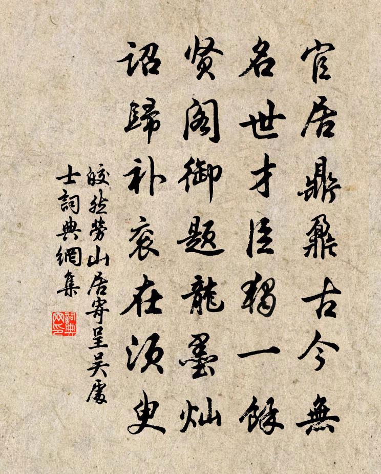 詩詞名句歷史字典書法欣賞書法字典國語詞典說文解字康熙字典古漢語字典標 題 作 者 詩 句 勞山居寄呈吳處士作者:皎然 朝代:唐代勞山居寄呈吳處士原文官居鼎鼐古今無,名世才臣獨一餘。賢閣御題龍墨燦,詔歸補袞在須臾。詩詞問答問:勞山居寄呈吳處士的作者是誰?答:皎然問:勞山居寄呈吳處士寫於哪個朝代?答:唐代問:勞山居寄呈吳處士是什麼體裁?答:七絕皎然勞山居寄呈吳處士書法欣賞勞山居寄呈吳處士書法作品注釋全唐詩:卷819-71詩詞推薦與政仲端夫敬叟季仙至舊圃采采芙蓉金菊之妙劉學箕〔宋代〕秋陽杲杲秋月明,秋風泠冷秋露沮。蕭騷池上萬松竹,鳳笙龍管吹秋聲。山亭與客坐夕陰,眼照萬象前橫陳。一年詠白玉如意乾隆〔清代〕和闐供歲供,制器玉工閒。雖曰來之易,能忘獲以艱。新年符吉兆,代語得心閒。永願洗兵馬,休言致白環。送福州謝學正無疑歸南劍州方回〔宋代〕問知桑梓處,師祖李延平。往正三山學,看馳四海聲。新吟嚴更典,老貌古兼清。上水過衢信,暗淡溪卻順。點頭石釋智愚〔宋代〕大包才剖礙人間,日炙風吹轉放頑。見說聽經曾肯首,更須來透鐵門關。逍遙詠宋太宗〔宋代〕紫陌紅塵里,貪名利好爭。世情皆擾攘,大道甚縱橫。弦直終無曲,心邪自不平。若能如遂意,後學法先生。夏日都門送司馬員外逸客孫員外佺北征李乂〔唐代〕日逐滋南寇,天威撫北垂。析珪行仗節,持印且分麾。羽檄雙鳧去,兵車駟馬馳。虎旗懸氣色,龍劍抱雄雌。候月蝶戀花仲殊〔宋代〕開到杏花寒食近。人在花前,宿酒和春困。酒有盡時情不盡。日長只恁厭厭悶。經歲別離閒與問。花上啼鶯,解道初離鄱陽喻良能〔宋代〕三年勞簿領,今日進歸程。意與長途遠,身兼薄縠輕。板輿頻送喜,山驛屢逢晴。道上人爭指,霜髭彩戲榮。偈頌九十三首釋梵琮〔宋代〕學道先須有指歸,聞聲見色不思議。九旬黑白分明處,如似盤中一片棋。縱橫十字,一著當機。有眼則活,無眼則次韻平江韓子師侍郎見寄范成大〔宋代〕自古四愁湘水深,誰將城郭啟山林。有情碧嶂團欒繞,無數朱樓縹緲臨。蚺鼓揭天驚客坐,象鍪航海厭蠻琛。三千憶秦娥王千秋〔宋代〕雲破碧。作霜天氣西風急。西風急。一行征雁,數聲橫笛。挑燈試問今何夕。柔腸底事愁如織。愁如織。紫苔庭院雨中胡仲參〔宋代〕愁坐黃昏掩客扉,風翻霜葉滿庭飛。孤燈挑到寒更盡,猶有行人帶雨歸。楊柳枝二首司空圖〔唐代〕陶家五柳簇衡門,還有高情愛此君。何處更添詩境好,新蟬欹枕每先聞。數枝珍重蘸滄浪,無限塵心暫免忙。煩暑端午帖子詞皇帝合汪應辰〔宋代〕王業艱難素所知,風單喜見獻新絲。盤中更進長生縷,卻記新蠶繭館時。逍遙詠宋太宗〔宋代〕從來教法甚分明,幾許心迷事不成。棄世經圖閒自性,精修道路必長生。清明郊行王邁〔宋代〕年例清明是暮春,今年春事卻平分。故添一閏知天巧,欲探群芳奈雨頻。煙樹對人愁脈脈,暮山似我老陳陳。感時送周德望之參告太學趙蕃〔宋代〕噸州清節著吾州,宜爾諸郎總好修。過我山林忘僻陋,為君雞黍乏淹留。結交群從非一日,欲話令人翻百憂。畫舸桃源圖胡仲弓〔宋代〕誤人仙源不記春,花間一見喜津津。可憐塵跡空遺恨,一樹桃花經幾秦。鐵船峰吳國倫〔明代〕天風吹席掛廬峰,棹鼓無聲雲漢重。一自鐵船飛不去,至今山澤吼雙龍。晨興自籬西望東園新開花張耒〔宋代〕東園本是吾家有,不到經旬亦可嗟。步出寢門迎曉日,卻從籬外望新花。安禪豈問荒三徑,閱古終須飽五車。兒女名句推薦美人梳洗時,滿頭間珠翠。鄭遨《富貴曲》 野店垂楊步,荒祠苦竹叢。范成大《寒食郊行書事》 女兒年幾十五六,窈窕無雙顏如玉。蕭衍《東飛伯勞歌》 行高者,名自高。人所重,非貌高。李毓秀《弟子規·泛愛眾》 荊山長號泣血人,忠臣死為刖足鬼李白《鞠歌行》 樹大招風風撼樹,人為名高名喪人。吳承恩《西遊記·第三十三回》 雞鳴紫陌曙光寒,鶯囀皇州春色闌。岑參《奉和中書舍人賈至早朝大明宮》 不成便沒相逢日,重整釵鸞箏雁。張翥《陌上花·有懷》 形勝三分國,波流萬世功。潘大臨《江間作四首·其三》 宮粉雕痕,仙雲墮影,無人野水荒灣。吳文英《高陽台·落梅》