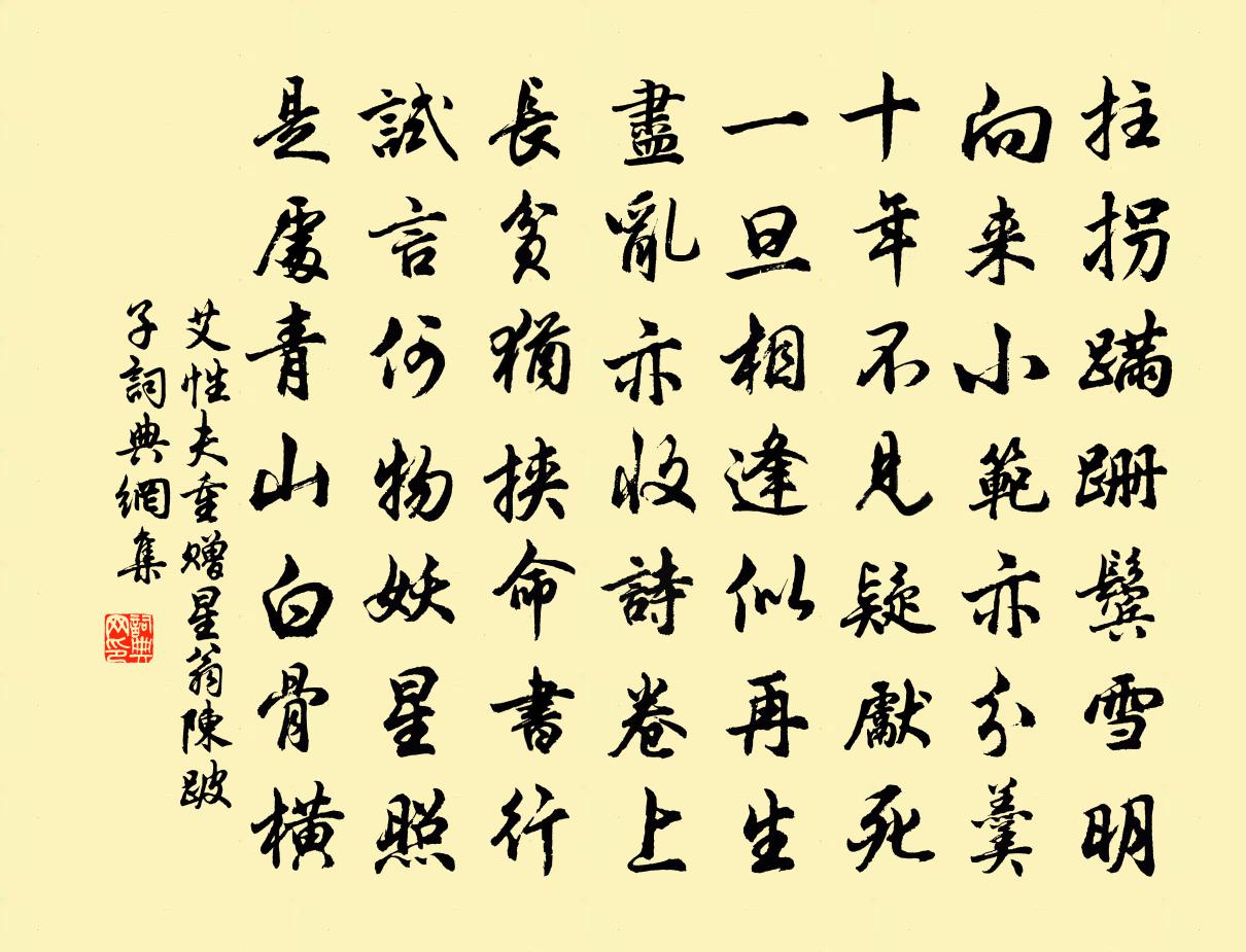 詩詞名句歷史字典書法欣賞書法字典國語詞典說文解字康熙字典古漢語字典標 題 作 者 詩 句 重贈星翁陳跛子作者:艾性夫 朝代:宋代重贈星翁陳跛子原文拄拐蹣跚鬢雪明,向來小范亦分羹。十年不見疑先死,一旦相逢似再生。盡亂亦收詩卷上,長貧猶挾命書行。試言何物妖星照,是處青山白骨橫。詩詞問答問:重贈星翁陳跛子的作者是誰?答:艾性夫問:重贈星翁陳跛子寫於哪個朝代?答:宋代問:重贈星翁陳跛子是什麼體裁?答:七律艾性夫重贈星翁陳跛子書法欣賞重贈星翁陳跛子書法作品詩詞推薦田園雨後贈鄰人錢起〔唐代〕安排常任性,偃臥晚開戶。樵客荷蓑歸,向來春山雨。殘雲虹未落,返景霞初吐。時鳥鳴村墟,新泉繞林圃。堯年初夏二首舒邦佐〔宋代〕稍久梅黃雨,新晴麥熟天。寸懷煎百慮,一病費三年。方冊強遮眼,短窗時送眠。三生償業盡,四體合安便。華亭百詠俞塘許尚〔宋代〕延袤三鄉外,東流與海通。河神屢加惠,帆借往來風。泛舟蕭公陂曹彥約〔宋代〕山水繞青爐鞴紅,花開絮亂春欲空。太白酌酒塵世外,小舟盪槳農事中。築堤溉田十里同,居民舉手稱蕭公。蕭公別費檢正二首李流謙〔宋代〕香案前頭自乞歸,歸心選逐雁西飛。豈關松菊吾身重,偶托蓴鱸此意微。行樂不妨千騎擁,照人何必萬釘圍。兒曹追和尤延之檢詳紫辰殿賀雪楊萬里〔宋代〕鍚山詩老立層霄,黃竹賡歌宴在瑤。有客夢中聞雪作,曲肱篷底信船搖。遙知端葉飄香袖,笑向梅花趁早朝。未嘆少年行吳象之〔唐代〕承恩借獵小平津,使氣常游中貴人。一擲千金渾是膽,家無四壁不知貧。從事中郎張彥明為中護軍奚世都為汲郡太守客陸雲〔魏晉〕思樂華堂。雲構崇基。公王有酒。薄言饗之。景曜徽芒。芳風詠時。宴爾賓儐。具樂於茲。縣齋感懷二首張詠〔宋代〕前朝官政似無端,袁澤先生百日還。堪愧崇陽九河客,明時不敢自歸山。踏莎行 追次雲間王德璉韻,為施以和作香匣沈禧〔元代〕鳳翅煙凝,鴉翎膏膩。湘雲一片簾前墜。頻呼小玉灌蘭湯,金盆瀲灩輕*洗。翡翠窗前,合歡帳底。殷勤重把殘妝和資政侍郎湖亭雜詠絕句十首汀鷺梅堯臣〔宋代〕食魚日已晚,矯翼煙際還。不與鴈鶩競,風標亦自閒。春吟四絕張榘〔宋代〕岸草不知緣底綠,山花試問為誰紅。元造本來惟寂寞,年年多事是春風。送杜丞李新〔宋代〕鴨頭未換秋豀綠,漲水吹沙亂泥玉。孤城雨過星斗稀,曉起為誰歌別貢。江皋人散空鷗鷺,飛截長煙斷寒素。當年送侯寺丞知鞏縣梅堯臣〔宋代〕伊洛合河流,正臨歸鞏路。崖壁人畏崩,芹泥岸長固。山回邑郭見,馬入雲煙暮。宰茲雖所淹,況與鄉黨附。望仙鋪梅癯兵〔宋代〕一叟搜盆婦絮羹,喜聞官至出相迎。兩三家自為鄰里,一半田皆無主名。使金和趙良嗣馬擴〔宋代〕未見燕銘勒故山,耳聞殊議骨毛寒。願君共事烹身語,易取皇家萬世安。文宣王及其弟子贊宋高宗〔宋代〕文學之目,名重一時。為君子儒,作魏侯師。不要後禮,始可言詩。假蓋小嫌,聖亦不疵。題扇面六言黃復之〔宋代〕峽束天圍漸小,林穿日腳微明。竹居有徑誰掃,水礁無人自鳴。偈頌一百六十首釋宗杲〔宋代〕如天普蓋,似地普擎。一念相應,一時清淨。又代孫檢討作二首司馬光〔宋代〕人為天地客,處世若浮休。豈有生長在,祗知名可留。露沾寒草晚,風嘯白楊秋。地下求文友,應從顧陸游。名句推薦曾與美人橋上別,恨無訊息到今朝。劉禹錫《楊柳枝 / 柳枝詞》 喧鳥覆春洲,雜英滿芳甸。謝朓《晚登三山還望京邑》 子胥既棄吳江上,屈原終投湘水濱。李白《行路難三首》 漢家旌幟滿陰山,不遣胡兒匹馬還。戴叔倫《塞上曲二首·其二》 故國神遊,多情應笑我,早生華髮。蘇軾《念奴嬌·赤壁懷古》 短景歸秋,吟思又接愁邊。史達祖《玉蝴蝶·晚雨未摧宮樹》 財物輕,怨何生。言語忍,忿自泯。李毓秀《弟子規·出則弟》 窣地春袍,嫩色宜相照。梅堯臣《蘇幕遮·草》 歸去來兮,吾歸何處?蘇軾《滿庭芳·歸去來兮》 就解佩旗亭,故人相遇。吳文英《掃花游·西湖寒食》