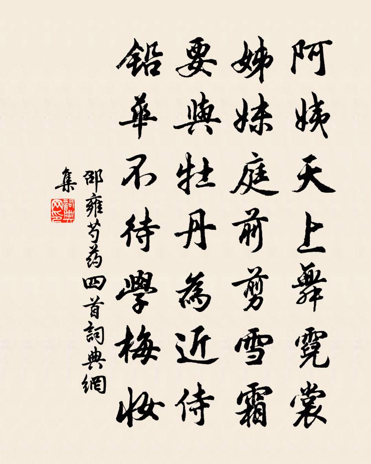 詩詞名句歷史字典書法欣賞書法字典國語詞典說文解字康熙字典古漢語字典標 題 作 者 詩 句 芍藥四首作者:邵雍 朝代:宋代芍藥四首原文阿姨天上舞霓裳,姊妹庭前剪雪霜。要與牡丹為近侍,鉛華不待學梅妝。詩詞問答問:芍藥四首的作者是誰?答:邵雍問:芍藥四首寫於哪個朝代?答:宋代邵雍芍藥四首書法欣賞芍藥四首書法作品詩詞推薦香山范成大〔宋代〕采香徑里木蘭舟,嚼蕊吹芳爛熳游。落日青山都好在,桑間蕎麥滿芳洲。兒歸行孔武仲〔宋代〕兒歸兒不歸。朝為子母歡,暮為禽鳥飛。故居不得返,深林安可依。此身寂寞已如此,我母在家應憶子。子今豈不頌古三十六首釋惟一〔宋代〕來去客情千樣別,高低主禮一般施。相逢不飲空歸去,明月清風也笑伊。費華文輓詩二首魏了翁〔宋代〕三鳳齊飛日,相期到白頭。一丘生處樂,萬事死前休。風急啼烏放,霜零斷雁秋。懷人竟何極,緘淚寄西州。薛氏鏡山甄龍友〔宋代〕我生不是先,偶與前輩隔,古人猶愛水,況此千丈碧。孤圓本然明,萬象紛如繹。行吟鬼破膽,坐釣風生腋。疏梅晚秋拾遺朱放訪山居秦系〔唐代〕不逐時人後,終年獨閉關。家中貧自樂,石上臥常閒。墜栗添新味,寒花帶老顏。侍臣當獻納,那得到空山。慈恩寺二月半寓言蘇頲〔唐代〕二月韶春半,三空霽景初。獻來應有受,滅盡竟無餘。化跡傳官寺,歸誠謁梵居。殿堂花覆席,觀閣柳垂疏。共命豫章上游江中有道觀蓋屍堅吾遊仙之地三首曾豐〔宋代〕淨蛻凡身一羽輕,安排兩腳踏長鯨。忽逢一陣風吹送,直溯紫虛凌太清。長發佚名〔先秦〕浚哲維商,長發其祥。洪水芒芒,禹敷下土方。外大國是疆,幅隕既長。有娀方將,帝立子生商。玄王桓撥,受小感事陸龜蒙〔唐代〕將軍被鮫函,只畏金石鏃。豈知讒箭利,一中成赤族。古來信簧舌,巧韻淒鏘曲。君聞悅耳音,盡日聽不足。初因得伯逢書宋祁〔宋代〕書來何所道,報我二毛生。種種因年化,星星著領明。別離才幾日,感慨若為情。且莫悲遲暮,須容四海兄。永遇樂(壽葉樞密)趙磻老〔宋代〕香雪堆梅,繡絲蹙柳,仙館春到。午夜華燈,烘春艷粉,月借今宵好。袞衣搖曳,簪纓閒繞,共祝大椿難老。望台荊湖望月張栻〔宋代〕浩浩湖之源,迤邐衡山下。有月來中天,明珠千斛瀉。澂澈一塵無,並輝清不夜。嗟彼泉下人,逝莫挽逸駕。惟有車制華岳〔宋代〕昔年劉震帥池陽,曾制輕車學運糧。獨輻不堪承重向,至今零落在行廓。過武夷韓元吉〔宋代〕不到仙山二十年,道人雙鬢亦皤然。卻看翠嶺千尋石,又汎清溪九曲船。目極已高聊自喜,身輕欲上可無緣。只應答中書詩謝靈運〔南北朝〕契闊北京。劬勞西郢。守官末局。年月已永。孰是疲劣。逢此多□。厚顏既積。在志莫省。奉和添酒中六詠酒船皮日休〔唐代〕剡桂復刳蘭,陶陶任行樂。但知涵泳好,不計風濤惡。嘗行麴封內,稍系糟丘泊。東海如可傾,乘之就斟酌。立春曹勛〔宋代〕初信車風入彩幡,自挑雪薺飣春盤。土牛又送一年老,野鶴不知三逕寒。筋力尚堪耕綠野,□毛並欲掛黃冠。無人豐城道中鄧深〔宋代〕西風著衣袂,涼意曉來加。宿露眩光彩,朝陽濕精華。人煙互疏密,物色興嘆嗟。喧囂鴨子市,蕭索漁人家。皂裙余應卿招飲袁說友〔宋代〕東門郭外七桐里,知有宣州別駕家。再世從游心自喜,暫時觴詠語無嘩。平田寒日行孤鶩,枯木淒風集亂鴉。酒聖名句推薦憑畫檻,雨洗秋濃人淡。厲鶚《謁金門·七月既望湖上雨後作》 花近高樓傷客心,萬方多難此登臨。杜甫《登樓》 煢煢白兔,東走西顧。佚名《古艷歌》 莫愁前路無知己,天下誰人不識君。高適《別董大二首》 池上憑闌愁無侶。奈此個、單棲情緒。柳永《甘草子·秋暮》 女大不中留。馮夢龍《警世通言·卷三十八》 臣強則死,念妄則亡。來俊臣《羅織經·事上卷第二》 不近人情,舉世皆畏途;不察物情,一生俱夢境。陳繼儒《小窗幽記·集醒篇》 紅葉滿寒溪,一路空山萬木齊。納蘭性德《南鄉子·秋暮村居》 山無陵,江水為竭。佚名《上邪》