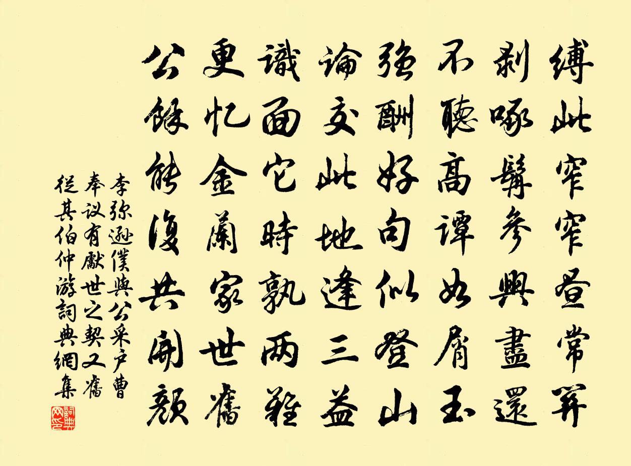 詩詞名句歷史字典書法欣賞書法字典國語詞典說文解字康熙字典古漢語字典標 題 作 者 詩 句 仆與公采戶曹奉議有先世之契又舊從其伯仲游作者:李彌遜 朝代:宋代原文縛此窄窄晝常關,剝啄髯參興盡還。不聽高譚如屑玉,強酬好句似登山。論交此地逢三益,識面它時孰兩難。更憶金蘭家世舊,公餘能復共開顏。詩詞問答問:《仆與公采戶曹奉議有先世之契又舊從其伯仲游》的作者是誰?答:李彌遜問:該詩寫於哪個朝代?答:宋代書法欣賞仆與公采戶曹奉議有先世之契又舊從其伯仲游書法作品詩文賞析【原題】:仆與公采戶曹奉議有先世之契又舊從其伯仲游今復相遇於此前日偶過西鄰不知嘗辱車馬承貺佳什次韻為謝詩詞推薦紹興朝日十首佚名〔宋代〕天宇四齊,嘉壇聿崇。肅祗嚴祀,登降有容。仰瞻蠼靈,位居其中。既安既妥,沛哉豈融。病臥陸游〔宋代〕老境偏饒臥,秋天不肯晴。愁憑書解散,病仗藥支撐。果熟鳥烏樂,村深雞犬聲。邊頭定何似,頗說募新兵。秋曉孫應時〔宋代〕高葉明初日,偏林澹遠煙。晴空如滉漾,秋氣更暄妍。睡足小窗淨,心清浮慮捐。與人同樂意,憂國見豐年。春寒二首張耒〔宋代〕星霜殘臘過,霰雪一冬頻。雲重常昏晝,寒多更入春。晚風捎翠暮,輕雨斂微塵。滿酌山樽酒,驅愁爾最親。頌古十六首釋道寧〔宋代〕風頭坐斷進還難,衲子相將不易看。不到潼關天已曉,不堪回首望長安。滿江紅(始生之日,丘宗卿使君攜具來為壽,坐中賦詞,次韻謝之)范成大〔宋代〕竹里行廚,來問訊、諸侯賓老。春滿座、彈絲未遍,揮毫先了。雲避仁風收雨腳,日隨和氣薰林表。向尊前、來訪傷春朱淑真〔宋代〕覽鏡驚容卻自嫌,逢春長是病厭厭。吹花弄粉新來懶,惹恨供愁近日添。生怕子規聲到耳,苦羞雙燕語穿簾。眉頭送楊皞東歸盧綸〔唐代〕登樓掩泣話歸期,楚樹荊雲發遠思。日裡揚帆聞戍鼓,舟中酹酒見山祠。西江風浪何時盡,北客音書欲寄誰。若說如夢令(中呂思情)周邦彥〔宋代〕塵滿一絣文繡。淚濕領巾紅皺。初暖綺羅輕,腰勝武昌官柳。長晝。長晝。困臥午窗中酒。見柿樹有感張九成〔宋代〕茲山余初來,掩冉柿葉青。相去未三月,柿花亦已零。乃茲尋去路,累累滿空庭。人生豈無情,眷眷不忍行。嚴霜和崔侍御日用游開化寺閣吳少微〔唐代〕左憲多才雄,故人尤鷙鶚。護贈單于使,休軺太原郭。館次厭煩歊,清懷尋寂寞。西緣十里餘,北上開化閣。初入游城南即事二首王安石〔宋代〕神奸變化久難知,禹鼎由來更不疑。螭魅合謀非一日,太丘真復社亡遲。光福塘上范成大〔宋代〕指點炊煙隔莽蒼,午餐應可寄前莊。雞聲人語小家樂,木葉草花深巷香。春去已空衣尚絮,雨來何晚稻初芒。祗今踏莎行·潤玉籠綃吳文英〔宋代〕潤玉籠綃,檀櫻倚扇。繡圈猶帶脂香淺。榴心空疊舞裙紅,艾枝應壓愁鬟亂。午夢千山,窗陰一箭。香瘢新褪紅絲劉晦叔許洮河綠石硯黃庭堅〔宋代〕久聞岷石鴨頭綠,可磨桂溪龍文刀。莫嫌文吏不知武,要試飽霜秋兔毫。不見胡仲隸題蘇溪僧壁林季仲〔宋代〕念別三年久,相望一舍間。無人寄訊息,風雨暗前山。煮茶方岳〔宋代〕瀑近春風濕,松花滿石壇。不知茶鼎沸,但覺雨聲寒。山好僧吟久,雲深鶴睡寬。詩成不須寫,怕有俗人看。游靈岩和韻三首李壁〔宋代〕蕭然陳跡寄林坰,千古誰分偽與真。惟有離宮歌舞地,遺簪墜珥付耕人。生查子(同前夏日即事)晁補之〔宋代〕永日向人妍,百合忘憂草。午枕夢初回,遠柳蟬聲杳。蘚井出冰泉,洗瀹煩襟了。卻掛小簾鉤,一縷爐煙裊。沁園春佚名〔宋代〕金虎鳴秋,玉龍斯月,天氣正涼。應夢熊時候,葉丹苔碧,棲鸞亭館,橘綠橙黃。人在蘭台公子上,更身寄風流名句推薦讀書不下苦功,妄想顯榮,豈有此理?王永彬《圍爐夜話·第一一四則》 何時一樽酒,重與細論文。杜甫《春日憶李白》 製法而自犯之,何以帥下?陳壽《三國志·魏書·武帝紀》 天涯靜處無征戰,兵氣銷為日月光。常建《塞下曲四首·其一》 惡之者眾則危。荀子《荀子·正論》 臥看牽牛織女星,月轉過梧桐樹影。盧摯《沉醉東風·七夕》 朝辭白帝彩雲間,千里江陵一日還。李白《早發白帝城 / 白帝下江陵》 孤村落日殘霞,輕煙老樹寒鴉,一點飛鴻影下。白樸《天淨沙·秋》 耽於女樂,不顧國政,則亡國之禍也。韓非及後人《韓非子·十過》 反古者未必可非,循禮者未足多是也。商鞅《商君書·更法》