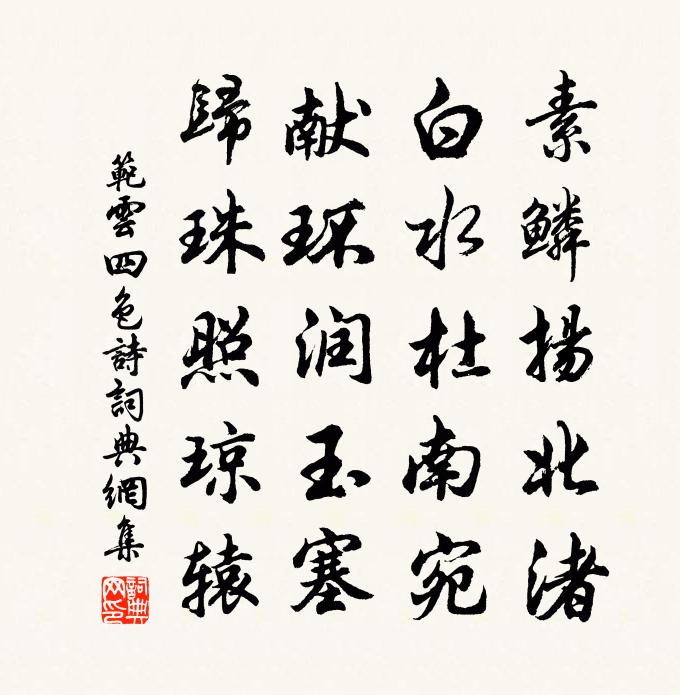 詩詞名句歷史字典書法欣賞書法字典國語詞典說文解字康熙字典古漢語字典標 題 作 者 詩 句 四色詩作者:范雲 朝代:南北朝四色詩原文素鱗揚北渚。白水杜南宛。獻環潤玉塞。歸珠照瓊轅。詩詞問答問:四色詩的作者是誰?答:范雲問:四色詩寫於哪個朝代?答:南北朝范雲四色詩書法欣賞四色詩書法作品詩詞推薦送大理金少卿赴闕以老成耆德重於典刑為韻兼仲並〔宋代〕高山列松柏,歲寒寧動色。顏色一簞瓢,掩關養吾直。紛紛聲利場,時勝時奔北。袖手了不關,昂然見全德。漫興 其二王冕〔元代〕屯聚皆羌屬,蒼茫路轉西。草深車跡淺,霜重角聲低。軍馬行無數,山林望欲迷。老兵通漢語,指點話征西。送蕭穎士赴東府,得草字姚發〔唐代〕天生良史筆,浪跡擅文藻。中夏授參謀,東夷願聞道。行軒玩春日,餞席藉芳草。幸得師季良,欣留篋笥寶。道室即事陸游〔宋代〕黃金堆屋無處用,甲第連雲誰與居?莫笑先生無仆馬,風雷萬里跨鯨魚。塞上周朴〔唐代〕受降城必破,回落隴頭移。蕃道北海北,謀生今始知。【越調】寨兒個張可久〔元代〕道士王中山操琴傍翠陰,解塵襟,婆娑小亭深又深。軫玉徽金,霞佩瓊簪,一操《醉翁吟》。野猿啼雪滿遙岑,玄浪淘沙近宋祁〔宋代〕少年不管。流光如箭。因循不覺韶光換。至如今,始惜月滿、花滿、酒滿。扁舟欲解垂楊岸。尚同歡宴。日斜歌闋瀑布黃居萬〔宋代〕龍梭織處人觀見,地軸舒來尺莫量。定是水仙工性巧,逐時裁去補滄浪。梁文靖南安漳岩泉福三帖贊岳珂〔宋代〕詞真意浹,不屈不狎,端重有法。此近世名臣之帖。承平流風,尚或可接,予欲以此觀相業。觀別者王維〔唐代〕青青楊柳陌,陌上別離人。愛子游燕趙,高堂有老親。不行無可養,行去百憂新。切切委兄弟,依依向四鄰。都門秋日酬王昭儀汪元量〔宋代〕愁到濃時酒自斟,挑燈看劍淚痕深。黃金台愧少知己,碧玉調將空好音。萬葉秋風孤館夢,一燈夜雨故鄉心。庭前答潘尼詩陸機〔魏晉〕於穆同心。如瓊如琳。我東曰徂。來餞其琛。彼美潘生。實綜我心。探子玉懷。疇爾惠音。南歌子朱彝尊〔清代〕忍淚潛窺鏡,催歸懶下階。臨去不勝杯。為郎回一盼,強兜鞋。春貫休〔唐代〕自來自去動洪爐,無象無私無處無。回雁不多消氣力,染花應最費工夫。溟濛便恨豪家惜,濃暖深為政筆驅。莫訝別詩應瑒〔魏晉〕浩浩長河水。九折東北流。晨夜赴滄海。海流亦何抽。遠適萬里道。歸來未有由。臨河累太息。五內懷傷憂。 玉樓春石孝友〔宋代〕春生澤國芳菲早。樓外牆陰聞語笑。東君著意到西園,點破施朱渾未了。楚雲暮合吳天杳。天色沈沈雲擾擾。洞門吏部彭侍郎召會馮少師園亭即席賦詩范祖禹〔宋代〕門生猶記鑿龍登,載酒東堂命友朋。終日清談陪几杖,赤松況是坐禪僧。金陵雜興二百首蘇泂〔宋代〕鐘山閣上看朝曦,玉作遙山碧四圍。雲氣茫茫疑是水,人間無此米元暉。次韻郎中弟見寄李彌遜〔宋代〕季子論才到履絇,十年不調可憐渠。自聞馬祖今非佛,不似潛夫但著書。雨後登城上亭朱翌〔宋代〕何堪濕熱坐支離,且就虛涼看劇棋。避雨唯應急走耳,登城原丐少休之。江山政此成三絕,耳目醒然亦一奇。突兀名句推薦不恨古人吾不見,恨古人不見吾狂耳。辛棄疾《賀新郎·甚矣吾衰矣》 興盡晚回舟,誤入藕花深處。李清照《如夢令·常記溪亭日暮》 細影將圓質,人間幾處看。薛濤《月》 草草興亡休問,功名淚、欲盈掬。黃機《霜天曉角·儀真江上夜泊》 面譽者不忠,飾貌者不情戴聖《大戴禮記·文王官人第七十二》 吾任天下之智力,以道御之,無所不可。陳壽《三國志·魏書·武帝紀》 湘女歸魂,佩環玉冷無聲,凝情誰訴。吳文英《過秦樓·黃鐘商芙蓉》 花時同醉破春愁,醉折花枝作酒籌。白居易《同李十一醉憶元九》 春晚綠野秀,岩高白雲屯。謝靈運《入彭蠡湖口》 手紅冰碗藕,藕碗冰紅手。蘇軾《菩薩蠻·回文夏閨怨》