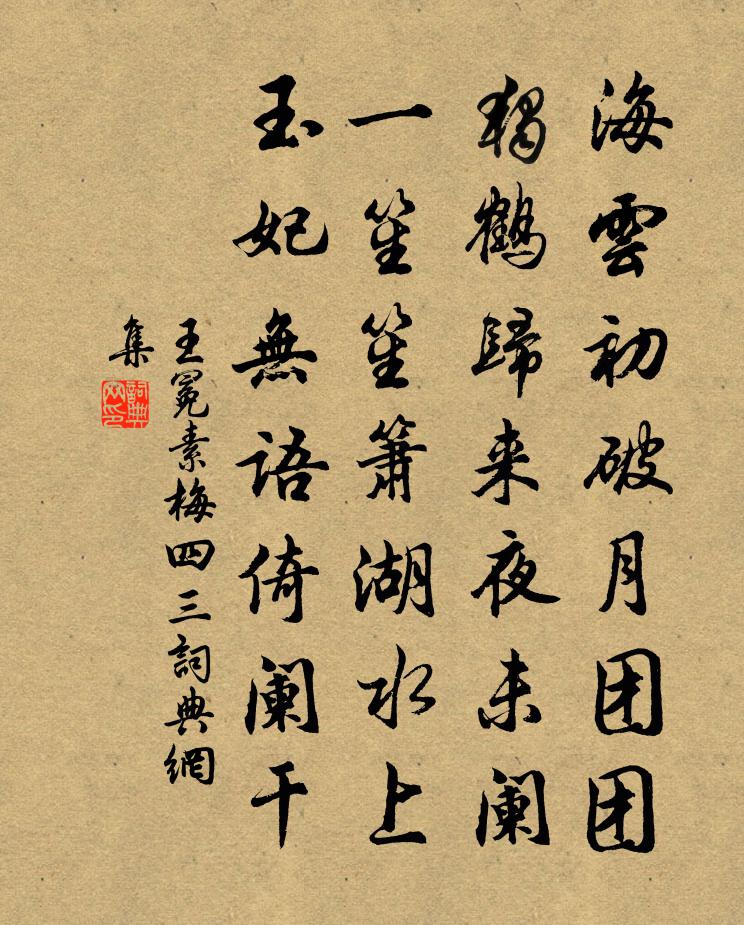 海雲初破月團團,獨鶴歸來夜未闌。一笙笙簫湖水上,玉妃無語倚闌乾。