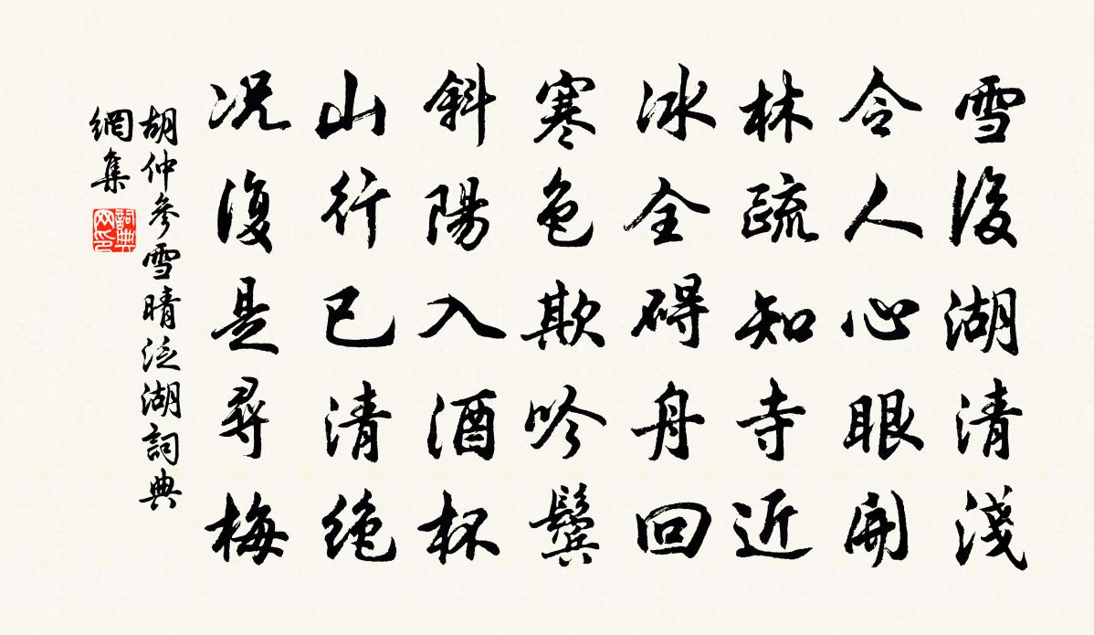 詩詞名句歷史字典書法欣賞書法字典國語詞典說文解字康熙字典古漢語字典標 題 作 者 詩 句 雪晴泛湖作者:胡仲參 朝代:宋代雪晴泛湖原文雪後湖清淺,令人心眼開。林疏知寺近,冰全礙舟回。寒色欺吟鬢,斜陽入酒杯。山行已清絕,況復是尋梅。詩詞問答問:雪晴泛湖的作者是誰?答:胡仲參問:雪晴泛湖寫於哪個朝代?答:宋代胡仲參雪晴泛湖書法欣賞雪晴泛湖書法作品詩詞推薦龍井白玉蟾〔宋代〕山腰石有千年潤,海眼泉無一日乾。天下蒼生望霖雨,不知龍在此中蟠。禱雨木欄堂四首陳造〔宋代〕物享用達幽秘,政戾自奸陰陽。我已泣刑白鶂,誰繼請烹洪羊。送盧說亂後投知己齊己〔唐代〕兵寇殘江墅,生涯盡盪除。事堪煎桂玉,時莫倚詩書。暮狖啼空半,春山列雨余。舟中有新作,回寄示慵疏。次韻楊蟠〔宋代〕零落東山老佛師,古來獨往似君稀。雪邊氣候春將破,林下神情句欲飛。後日當尋慧遠社,何人更贈大顛衣。一篇懷鄰叟貫休〔唐代〕常思東溪龐眉翁,是非不解兩頰紅。桔槔打水聲嘎嘎,紫芋白薤肥濛濛。鷗鴨靜游深竹里,兒孫多在好花中。千門晚晴方回〔宋代〕油泥方滑道,返照隔樓明。年已如秋老,心猶愛晚晴。鼓刀寧異遇,帶索定徒行。倚遍闌乾夜,寒砧處處聲。偈頌七十六首釋師觀〔宋代〕佛語心為宗,無門無法門。個裡全身入,別是一乾坤。丈人生辰強至〔宋代〕才過中元九日期,人間最重早秋時。當年間傑凝天粹,此際生賢作吏師。候屬金行資義節,氣鍾庚宿究兵奇。願公呂不韋徐鈞〔宋代〕謀立儲君誰孕姬,巨商販鬻巧觀時。十年富貴隨輕覆,奇貨元來禍更奇。同孫構免官後登薊樓張謂〔唐代〕昔在五陵時,年少心亦壯。嘗矜有奇骨,必是封侯相。東走到營州,投身似邊將。一朝去鄉國,十載履亭障。部曲偈傾一百三十三首釋法薰〔宋代〕明如日,黑如漆。通天大路,萬重鐵壁。南山口似血盆,爭敢妄通訊息。舞者薛能〔唐代〕綠毛釵動小相思,一唱南軒日午時。慢靸輕裾行欲近,待調諸曲起來遲。筵停匕箸無非聽,吻帶宮商儘是詞。為問丞相信庵趙公哀詩五首劉克莊〔宋代〕出為董統今韓范,入告忠嘉古卨夔。 * 在前裹瘡戰,黃麻拜右掉頭辭。去猶耿耿心存闕,老尚堂堂表出師。蓋世八朋七日省真苦雨三首司馬光〔宋代〕悵望中秋月,於今已上弦。明生圭樣小,影露桂華偏。幽恩邈難致,浮雲去不還。何當出陰翳,清澈照中天。橫山楊萬里〔宋代〕已過方山了,橫山更絕奇。爭高一尖喜,妒逸眾青追。萬馬頭驚拶,千旗腳恣吹。娟峰恰三五,隔柳尚參差。雨晴游洞宮山天慶觀坐間復雨陸游〔宋代〕近水松篁鎖翠微,洞天宮殿對清暉。快晴似為酴醾計,急雨還妨燕子飛。道士晝閒丹灶冷,山童曉出藥苗肥。拂床滿江紅吳潛〔宋代〕細閱浮生,為甚底、區區碌碌。算只是、信緣隨分,早尋歸宿。造物小兒忺簸弄,翻雲覆雨難擐觸。謾一堆、歲月天姥嶺樓鑰〔宋代〕剡水迂迴徹底清,濫觴從此一泓澄。曉來蠟屐沖寒上,踏碎山頭十里冰。見王宣子侍郎二首楊萬里〔宋代〕老去渾多難,愁來敢怨天。生遭文字誤,更結簿書緣。苦憶懸間榻,難回雪後船。三年才一見,百歲幾三年。和顏長官百詠朱門朱繼芳〔宋代〕百斛明珠米在倉,沉香火底捻銀簧。人生行樂那須許,多少邊兵未有糧。名句推薦我欲穿花尋路,直入白雲深處,浩氣展虹霓。黃庭堅《水調歌頭·遊覽》 楊花落,燕子橫穿朱閣。李清臣《謁金門·楊花落》 此生只是償詩債,白菊開時最不眠。司空圖《白菊雜書四首》 悲懷感物來,泣涕應情隕。潘安《悼亡詩三首》 國將興,必貴師而重傅,貴師而重傅,則法度存。荀子《荀子·大略》 知否,知否?應是綠肥紅瘦。李清照《如夢令·昨夜雨疏風驟》 亂鴉三四點,愁坐話無憀。陳維崧《臨江仙·寒柳》 禮者,人道之極也。荀子《荀子·禮論》 芳菲歇。故園目斷傷心切。向子諲《秦樓月·芳菲歇》 不及夜台塵土隔,冷清清、一片埋愁地納蘭性德《金縷曲·亡婦忌日有感》