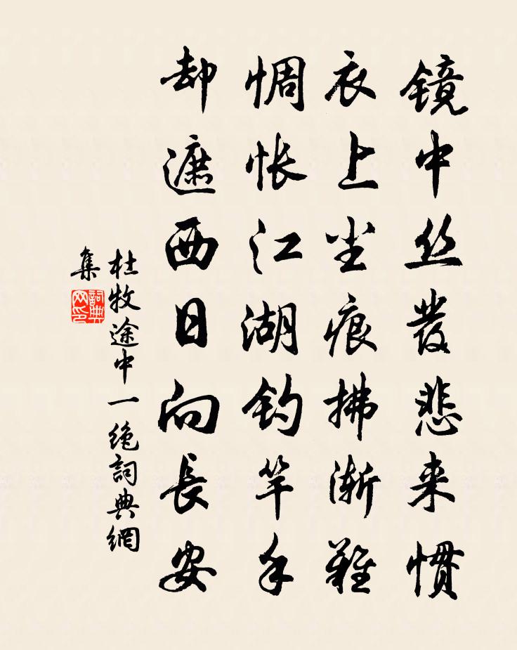 鏡中絲髮悲來慣,衣上塵痕拂漸難。惆悵江湖釣竿手,卻遮西日向長安。