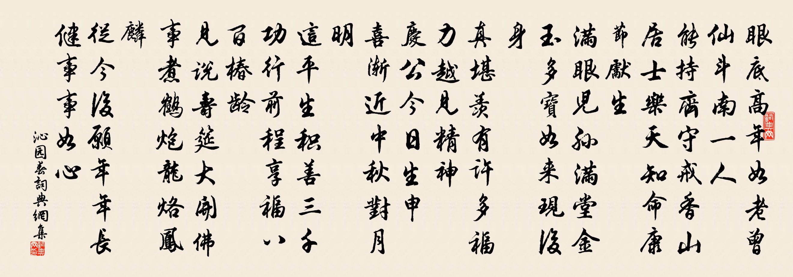 眼底高年,如老曾仙,斗南一人。能持齊守戒,香山居士,樂天知命,康節先生。