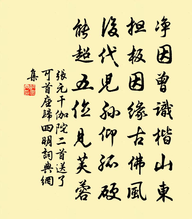 張元乾伽陀二首送了可首座歸四明書法欣賞