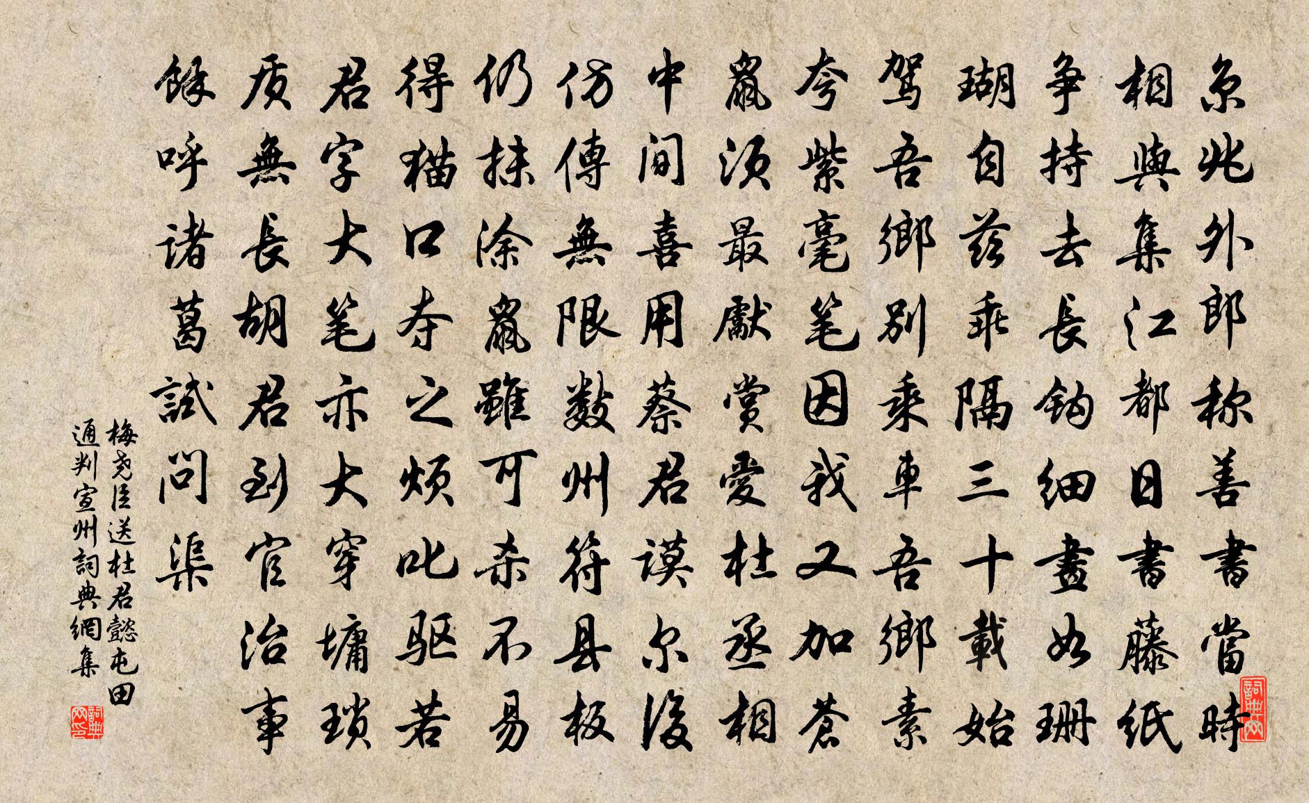 梅堯臣送杜君懿屯田通判宣州書法欣賞