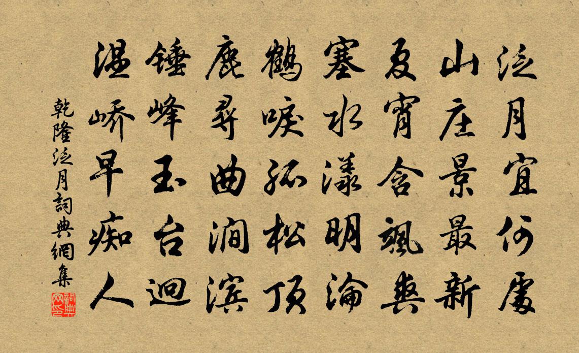 詩詞名句歷史字典書法欣賞書法字典國語詞典說文解字康熙字典古漢語字典標 題 作 者 詩 句 泛月作者:乾隆 朝代:清代泛月原文泛月宜何處,山莊景最新。夏宵含颯爽,塞水漾明淪。鶴唳孤松頂,鹿尋曲澗濱。錘峰玉台迥,溫嶠早痴人。詩詞問答問:泛月的作者是誰?答:乾隆問:泛月寫於哪個朝代?答:清代問:泛月是什麼體裁?答:五律乾隆泛月書法欣賞泛月書法作品詩詞推薦江邊吟韋莊〔唐代〕江邊烽燧幾時休,江上行人雪滿頭。誰信亂離花不見,只應惆悵水東流。陶潛政事千杯酒,張翰生涯一葉舟。若有常庵翁合〔宋代〕我是曾孫孫又孫,今朝始謁武夷君。三英秀峙千岩合,九曲平空兩岸分。丹壑何年流絳水,幔亭整日鏁紅雲。一生終八月八日發潭州後得絕句四十首趙蕃〔宋代〕朝未厭哭大灘聲,歸近何妨細作程。送盡鵝湖青一帶,靈山已復遠相迎。清明日試新火作牡丹會范成大〔宋代〕再鑽巴火尚浮家,去國年多客路賒。那得青煙穿御柳,且將銀燭照京花。香鬟半醉斜枝重,病眼全昏瘴霧遮。錦地寄洪與權王令〔宋代〕與權江南來,適自滿門會。初無合我志,財以客面待。時時相釣探,稍稍互酬對。根源豁披張,扃鐍失分解。君然戈陽縣學北堂見夾竹桃花有感而書李覯〔宋代〕暖碧覆晴殷,依依近朱欄。異類偶相合,勁節何能安。同地盡妖艷,無地容檀欒。移根既不可,潔心誠為難。外貌偈頌六十首釋曇華〔宋代〕五月五日端午節,天童為汝開真訣。驅釋迦,逐彌勒。佛病祖病毛病頓清涼,魍魎邪神俱殄滅。相從唯喜本色人,句羅大經〔宋代〕臭襪終須來塞口,枉收八百斛胡椒。和潘倅新溪七首姜特立〔宋代〕溪頭風月四時新,機盡還欣烏鳥親。沮溺相逢如借問,報言老子自知津。劉欽貢元第一百一十二文天祥〔宋代〕文章日自負,去家死路傍。高視見霸王,感子故意長。滿江紅佚名〔宋代〕長風送月,近中秋、更無一點塵俗。絳闕真仙來瑞世,昨夜翔鸞飛鵠。奕世登科,諸昆競秀,名蓋天南北。持心恬河滿子晏幾道〔宋代〕綠綺琴中心事,齊紈扇上時光。五陵年少渾薄倖,輕如曲水飄香。夜夜魂消夢峽,年年淚盡啼湘。歸雁行邊遠字,巫山高王融〔南北朝〕想像巫山高,薄暮陽台曲。煙霞乍舒捲,蘅芳時斷續。彼美如可期,寤言紛在屬。憮然坐相思,秋風下庭綠。雞菜嶺李洪〔宋代〕煙雨濛濛不濕衣,春風欺客逞寒威。籃輿無著新愁處,小酌村醪款竹扉。同誼夫國才餞季然於普門院取壁間五字詩各探王灼〔宋代〕暑途勸加餐,養成摩天翮。中車寶帶黃,小隊油幢碧。陳子厚送韶鴨將以七絕因次其韻吳芾〔宋代〕雖是微禽亦美觀,豈無繒弋欲相干。不須更起高飛念,且向湖中戢羽翰。次韻楊廷秀郎中游西湖十絕喻良能〔宋代〕湖堤樓閣劇蜂房,樓上爭看湖上航。萬柄芙蓉清冉冉,臨風新折麝臍香。昝公溉文同〔宋代〕晚泊昝公溉,船頭余落暉。攜家上岸行,愛此風滿衣。村巷何蕭條,四顧煙火稀。問之曰去歲,此地遭凶飢。斯民感皇恩 別情趙企〔宋代〕騎馬踏紅塵,長安重到。人面依前似花好。舊歡才展,又被新愁分了。未成雲雨夢,巫山曉。千里斷腸,關山古道頭風戲作陸游〔宋代〕出門處處皆桃李,我獨呻吟一室中。只道有詩敺瘧鬼,誰知無檄愈頭風!名句推薦天子居未央,妾侍卷衣裳。李白《秦女卷衣》 同來望月人何處?風景依稀似去年。趙嘏《江樓舊感 / 江樓感舊》 中庭月色正清明,無數楊花過無影。張先《木蘭花·乙卯吳興寒食》 葉落根偏固,心虛節更高。憨山德清《詠竹五首》 蓬門未識綺羅香,擬托良媒益自傷。秦韜玉《貧女》 記得那年花下,深夜,初識謝娘時。韋莊《荷葉杯·記得那年花下》 金槳木蘭船,戲采江南蓮。劉孝威《採蓮曲·金槳木蘭船》 正見空江明月來,雲水蒼茫失江路。歐陽修《晚泊岳陽》 客里看春多草草,總被詩愁分了張炎《清平樂·采芳人杳》 但將千歲葉,常奉萬年杯。趙彥昭《奉和元日賜群臣柏葉應制》