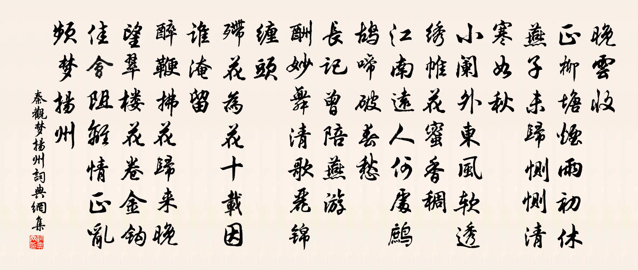 夢揚州:《欽定詞譜》云:“宋秦觀自製詞,取詞中結句為名。”又云:“此調只此一詞,無別首可校。”可知此詞為少游創調。《花菴詞選》及《草堂詩餘》別集題作“中春”。