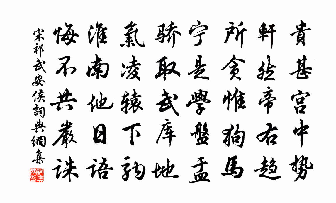 詩詞名句歷史字典書法欣賞書法字典國語詞典說文解字康熙字典古漢語字典標 題 作 者 詩 句 武安侯作者:宋祁 朝代:宋代武安侯原文貴甚宮中勢,軒然帝右趨。所貪惟狗馬,寧是學盤盂。驕取武庫地,氣凌轅下駒。淮南他日文,悔不共嚴誅。詩詞問答問:武安侯的作者是誰?答:宋祁問:武安侯寫於哪個朝代?答:宋代問:宋祁的名句有哪些?答:宋祁名句大全宋祁武安侯書法欣賞武安侯書法作品詩詞推薦次韻馬樞密二首許月卿六〔宋代〕臥聽爭雨半篙深,曉展芭蕉數尺心。攜手方山行樂處,滿林松竹翠陰陰。黃山雜詠滴水岩鄧宗度〔宋代〕石壁碎寒流,行人暮已愁。更傾風月耳,無水不生秋。點絳唇(送常守陳正同應之還朝)蔡伸〔宋代〕解紱朝天,滿城桃李繁陰布。彩舟難駐。忍聽驪歌舉。協贊中興,聖意方傾注。從今去。五雲深處。穩步沙堤路。偈頌七十六首釋子益〔宋代〕我此一門,初無關鍵。半合半開,東扇西扇。千聞不如一見。殘句吾曹總為長江老蘇軾〔宋代〕吾曹總為長江老。酒樓秋望華岳〔宋代〕西風吹客上闌乾,萬里無雲宇宙寬。秋水碧連天一色,暮霞紅映日三竿。花搖舞帽枝猶軟,酒入詩腸句不寒。古往四時田園雜興范成大〔宋代〕茅針香軟漸包茸,蓬櫑甘酸半染紅。采采歸來兒女笑,杖頭高掛小筠籠。題義門胡氏華林書院王浻〔宋代〕桃李清明舊著地行,門旌高映詵堂。烏衣里巷欽風化,曲水杯盤樂羽觴。客館早鄰徐孺宅,仙居今似武夷鄉。家聲還神岡圓首座戒刀頌黃庭堅〔宋代〕平生受用,三尺吹毛。歡喜斬新,拾得孟勞。夢中喚起,猶自忉忉。我王庫中,無如是刀寄孟郊戴叔倫〔唐代〕亂餘城郭怕經過,到處閒門長薜蘿。用世空悲聞道淺,入山偏喜識僧多。醉歸花徑雲生履,樵罷松岩雪滿蓑。石上聞高平公殂謝述哀感舊以助輓歌三首梅堯臣〔宋代〕一出屢更郡,人皆望酒壺。俗情難可學,奏記向來無。貧賤常甘分,崇高不解諛。雖然門館隔,泣與眾人俱。武夷鼓樓岩葉夢鼎〔宋代〕鼓樓岩下鼓樓開,舉世邯鄲夢未回。安得老獸教喚起,萬人醒眼上山來。句劉望之〔宋代〕莫道南州居井底,請來此處望川原。登扶風王宗元山亭黃庶〔宋代〕雲收南山頭,太白青崔嵬。我有泉石夢,坐對懷抱開。小池數斛水,涉鳥來氈毸。遺翎與行跡,縱橫在蒼苔。憶得送李子勉張嵲〔宋代〕馳騖謝新軌,息偃思舊扉。嬋連悵若人,閱歲此音徽。直諒方求益,離憂忽在茲。平居輕歲月,分首重斯時。出郭與圖書工羅翁艾性夫〔宋代〕木天荒寒風雨黑,夜氣無人驗東壁。天球大玉生土花,虞歌魯頌誰能刻。翁持鐵筆不得用,小試印材蒸栗色。我今陳粹中再約重陽之集即不果赴以詩寄這二首王洋〔宋代〕九月南州菊未黃,年年長待飽經霜。使君著意勤招客,催促離間日夜忙。偈頌四十二首釋祖先〔宋代〕種種性相義,我及十方佛。乃能知是事,晝見日,夜見月。坐臥經行,曾無間歇,吽吽,有甚交涉。偈頌十五首釋寶印〔宋代〕前箭射人可,後箭射人深。鍾先生沒後,此道少知音。題丹徒漕渠顧時大〔宋代〕兩岡相望山壁立,地形脊高勢回瀦。練湖寸板雖得尺,庱亭泄去如尾閭。自從秦鑿興赭徒,大業廣此事遨娛。歲久名句推薦粉墮百花洲,香殘燕子樓。曹雪芹《唐多令·柳絮》 積善逢善,積惡逢惡。馮夢龍《喻世明言·卷二十六》 古今多少事,都付笑談中。楊慎《臨江仙·滾滾長江東逝水》 青春花姊不同時。淒涼生較遲。吳文英《醉桃源·芙蓉》 還似舊時游上苑,車如流水馬如龍。李煜《憶江南·多少恨》 滿園花菊鬱金黃,中有孤叢色似霜。白居易《重陽席上賦白菊》 只向從前悔薄情,憑仗丹青重省識,盈盈,一片傷心畫不成。納蘭性德《南鄉子·為亡婦題照》 茅檐人靜,蓬窗燈暗,春晚連江風雨。陸游《鵲橋仙·夜聞杜鵑》 待浮花、浪蕊都盡,伴君幽獨。蘇軾《賀新郎·夏景》 馬上相逢無紙筆,憑君傳語報平安。岑參《逢入京使》