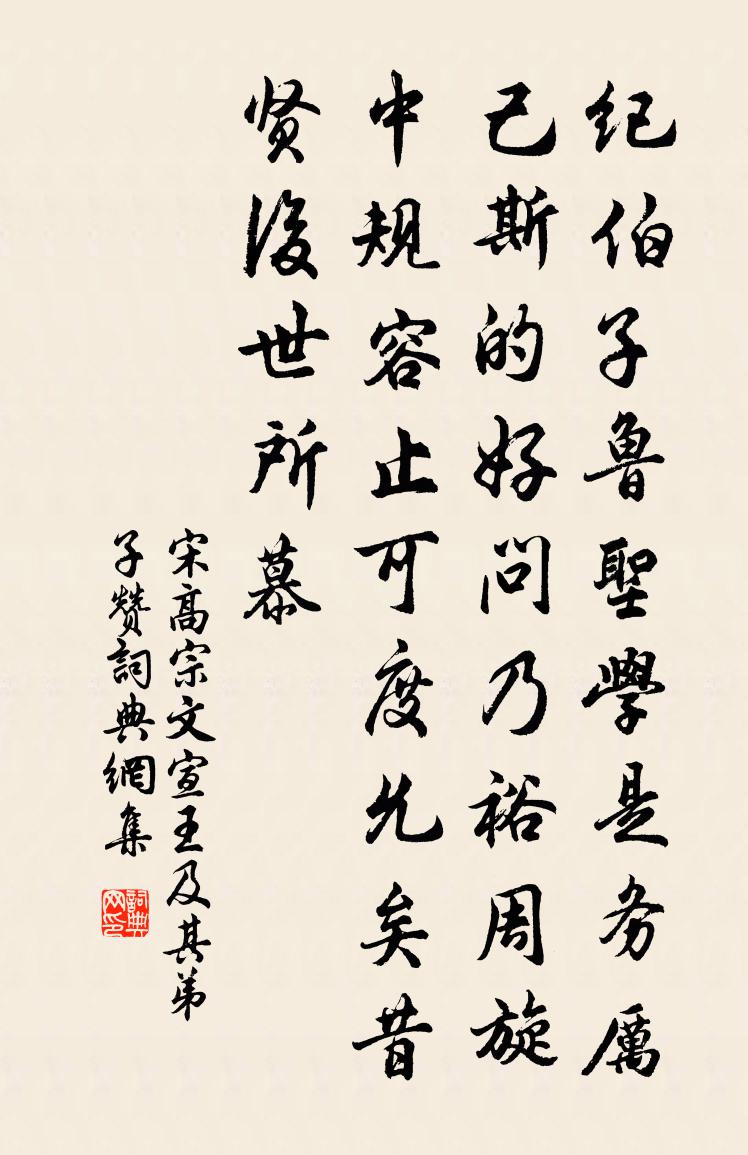詩詞名句歷史字典書法欣賞書法字典國語詞典說文解字康熙字典古漢語字典標 題 作 者 詩 句 文宣王及其弟子贊作者:宋高宗 朝代:宋代文宣王及其弟子贊原文紀伯子魯,聖學是務。厲己斯的,好問乃裕。周旋中規,容止可度。允矣昔賢,後世所慕。詩詞問答問:文宣王及其弟子贊的作者是誰?答:宋高宗問:文宣王及其弟子贊寫於哪個朝代?答:宋代宋高宗文宣王及其弟子贊書法欣賞文宣王及其弟子贊書法作品詩詞推薦最高樓(客有敗棋者,代賦梅)辛棄疾〔宋代〕花知否,花一似何郎。又似沈東陽。瘦稜稜地天然白,冷清清地許多香。笑東君,還又向,北枝忙。著一陣、霎時登李叔器家見一亭趙蕃〔宋代〕別駕當年蚤見幾,郎君久亦棄文闈。閉門幽徑滋蒼蘚,杖策高亭接翠微。試問丘園返初服,定勝風雨蓋征衣。一官遠意梁瓊〔唐代〕脈脈長攄氣,微微不離心。叩頭從此去,煩惱阿誰禁。朝天堤李翔〔宋代〕兩山吞浪白如煙,忽見橋樑接岸邊。已是築成堤上路,不須重喚渡頭船。千年野鶴歸華表,百尺長虹駕巨川。歲物鴛鴦杜牧〔唐代〕兩兩戲沙汀,長疑畫不成。錦機爭織樣,歌曲愛呼名。好育顧棲息,堪憐泛淺清。鳧鷗皆爾類,惟羨獨含情。昇平詞五首(一作薛能詩)曹唐〔唐代〕瑞氣繞宮樓,皇居上苑游。遠岡連聖祚,平地載神州。會合兼重譯,潺湲近八流。中興豈假問,據此自千秋。寥泬贈子直花下(令狐綯字子直)李商隱〔唐代〕池光忽隱牆,花氣亂侵房。屏緣蝶留粉,窗油蜂印黃。官書推小吏,侍史從清郎。並馬更吟去,尋思有底忙。送從弟游江淮兼謁鄱陽劉太守李頎〔唐代〕都門柳色朝朝新,念爾今為江上人。穆陵關帶清風遠,彭蠡湖連芳草春。泊舟借問西林寺,曉聽猿聲在山翠,潯陽題村舍杜牧〔唐代〕三樹稚桑春未到,扶床乳女午啼飢。潛銷暗鑠歸何處?萬指侯家自不知。投宿寶覺精舍釋紹嵩〔宋代〕驛路向山郭,江蘺滿意馨。遠雲收海雨,獨樹隱沙汀。桑椹累累紫,杉栽處處青。夜投寶覺寺,重上竹西亭。石洞唐仲友〔宋代〕流泉在石上,細路在石下。石宇閉復開,竹樹邃而雅。我來不值桂壑風,月寒病骨艱迎逢。野田午後愛日烘,杖藜次韻王穉川客舍二首黃庭堅〔宋代〕五更歸夢常苦短,一寸客愁無奈多。慈母每占烏鵲喜,家人應賦扊扅歌。送李判官李郢〔唐代〕津市停橈送別難,熒熒蠟炬照更闌。東風萬疊吹江月,誰伴袁褒宿夜灘。獨游家園孟氏〔唐代〕可惜春時節,依前獨自游。無端兩行淚,長只對花流。壬戌人日南溪暮景三首楊萬里〔宋代〕翡翠驚飛不作行,沙鷗亂下自成雙。一天霞綺沉波底,便是西川濯錦江。自題像周信庵〔宋代〕信庵年生七十二,經過庚子乙亥春。自權自力承家業,榮辱無驚樂太真。吾歸去,別鄉親,平生樸直坦夷人。今朝勘婆釋心道〔宋代〕三月春光上國游,祥雲瑞氣鎖龍樓。親從宣德門前過,更問行人覓汴州。東屯莊監秤六言三首劉學箕〔宋代〕讀書不執箋注,治生奚用豐財。詩吟一首兩首,酒飲三杯五杯。石田茅屋無恙,不與亂生蒼苔。舟行艤韶下石夜聽曾豐〔宋代〕江響合蠻吹,鳥聲諧越吟。仍收南郭籟,併入大韶音。纚纚聽於耳,徐徐寫以琴。倘猶有作韻,著語付何陰。逍遙觀佚名〔宋代〕昔設黃婆舊酒壚,如何今日似蓬壺。只因王郭仙人過,化作青城上帝都。名句推薦天勢圍平野,河流入斷山。暢當《登鸛雀樓》 今年春淺臘侵年。冰雪破春妍。蘇軾《一叢花·今年春淺侵年》 萬物靜觀皆自得,四時佳興與人同。程顥《秋日》 先生名利比塵灰,綠竹青鬆手自栽。王汝舟《詠歸堂隱鱗洞》 水調數聲持酒聽。午醉醒來愁未醒。張先《天仙子·水調數聲持酒聽》 悵臥新春白袷衣,白門寥落意多違。李商隱《春雨》 野曠雲連樹,天寒雁聚沙。文森《九日》 窮兵極武,仁者不為。令狐德棻《周書·列傳·卷二十七》 昔聞洞庭水,今上岳陽樓杜甫《登岳陽樓》 任力者故勞,任人者故逸。呂不韋《呂氏春秋·論·開春論》