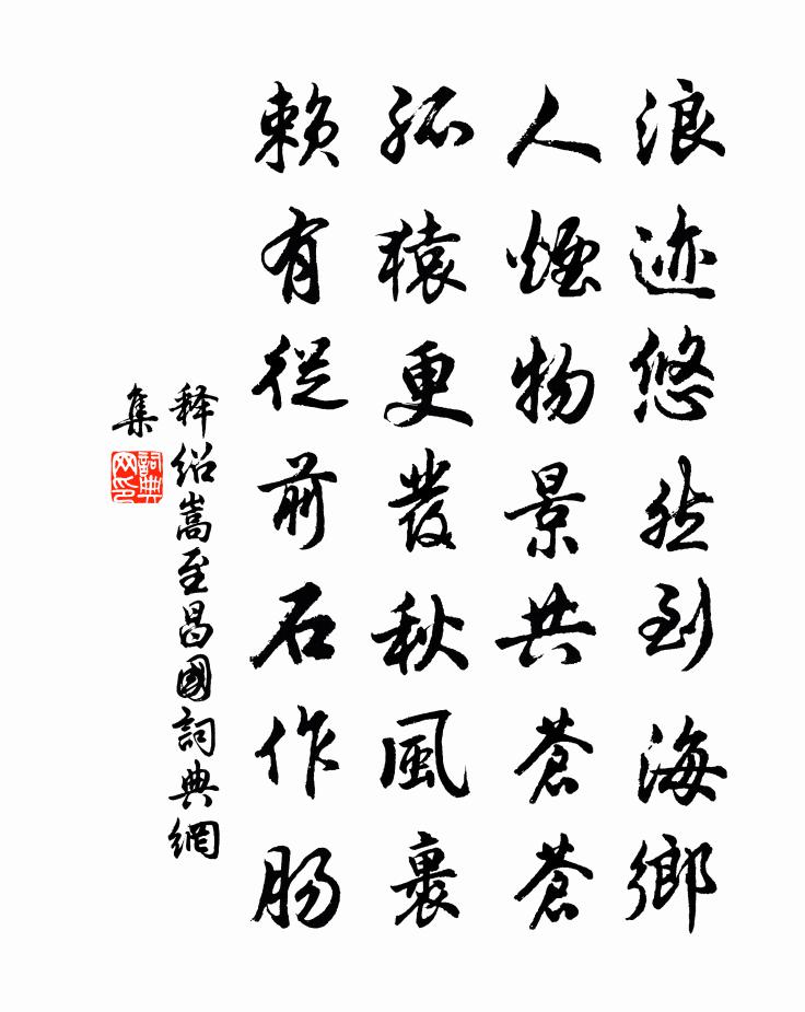 詩詞名句歷史字典書法欣賞書法字典國語詞典說文解字康熙字典古漢語字典標 題 作 者 詩 句 至昌國作者:釋紹嵩 朝代:宋代至昌國原文浪跡悠然到海鄉,人煙物景共蒼蒼。孤猿更發秋風裹,賴有從前石作腸。詩詞問答問:至昌國的作者是誰?答:釋紹嵩問:至昌國寫於哪個朝代?答:宋代釋紹嵩至昌國書法欣賞至昌國書法作品詩詞推薦次韻倪巨濟春懷李若水〔宋代〕青衫一領縛閒身,飽識官街肥馬塵。昨日友生雙鯉至,怪人不憶故溪春。飲沈氏園得僻字曾協〔宋代〕會心足勝侶,暇日訪春色。慵尋剡溪榜,厭曳永嘉屐。名園可徘徊,勝概在咫尺。峰巒起平地,村落墮城壁。梅橫謝兩知縣送鵝酒羊面二首陳造〔宋代〕麥生宜配臥沙羊,鵝炙仍便碧酒香。陡覺今年好冬節,朝來紅日為誰長。賀新郎(送楊帥參之任)姚勉〔宋代〕唱徹陽關調。伴行人、梅拂征鞍,曉霜寒峭。金甲雕戈開玉帳,尊俎風流談笑。看策馬、從容江表。自是藥階苔砌偈頌三十四首釋如淨〔宋代〕白圭無玷,頑石點砂。轉關一拶,佛祖仇讎。咦,咬豬狗漢轉風流。挽文魁母齊魏國夫人三首鄧剡〔宋代〕客談剪髻德,鄰識斷機心。梭壁風雲早,諼春雨露深。安輿神物相,歸旐路足欽。滂母猶難比,生兒振古今。哭張元伯職方邵雍〔宋代〕近年老輩頻凋落,使我中心又惻然,洛社掛冠高臥者,唯君清澈如神仙。昔日與君論少長,今日與君爭後先。把酒霜天曉角高觀國〔宋代〕爐煙浥浥。花露蒸沈液。不用寶釵翻炷,閒窗下、裊輕碧。醉拍。羅袖惜。春風偷染得。占取風流聲價,韓郎是、贈日東鑒禪師司空圖〔唐代〕故國無心度海潮,老禪方丈倚中條。夜深雨絕松堂靜,一點飛螢照寂寥。題上饒半月岩四絕胡寅〔宋代〕何年落月掛蒼山,長似瑤梳插翠鬟。擬琢半輪營魄處,莫教如玦只如環。追和東坡梅花十絕王之道〔宋代〕問言何處是前村,萬木號寒雪障昏。安得夢為蝴蝶去,花間栩栩適吟魂。挽鄭通判陳宓〔宋代〕厚重公清譽藹然,人言端似楚公賢。為官不取橫科勢,佐郡何妨二十年。徐貌價通常不變,陽城撫字已先傳。雙旌掃花游(前題)王沂孫〔宋代〕捲簾翠濕,過幾陣殘寒,幾番風雨。問春住否。但匆匆暗裡,換將花去。亂碧迷人,總是江南舊樹。謾凝佇。念昔瞿塘、巫峽張問陶〔清代〕瞿塘蟠大壁,巫峽削千峰。處處奇相敵,山山妙不重。詩隨林壑變,天辟畫圖濃。何日真游遍,穿雲策短筇?奔牛堰陳造〔宋代〕挽舟下奔牛,挽丁已疲極。長衖此埭東,衖心齒砂礫。千指取寸進,贔屓山可拆。舟子提肺肝,舟材寧鐵石。即今定風波 暮春漫興辛棄疾〔宋代〕少日春懷似酒濃,插花走馬醉千鍾。老去逢春如病酒。唯有,茶甌香篆小簾櫳。卷盡殘花風未定。休恨,花開元自題寐宮詩佚名〔宋代〕農桑不擾幾常登,邊將無功吏不能。四十二年如夢過,東風吹唳灑昭陵。送進士李殷下第游汾河曹鄴〔唐代〕上國花照地,遣君向西征。旁人亦有恨,況復故人情。腳踏車欲雲去,別酒忽然醒。如何今夜夢,半作道路程。邊士秋風亭拜寇萊公遺像陸游〔宋代〕豪傑何心後世名,材高遇事即崢嶸。巴東詩句澶州策,信手拈來盡可驚。陪王卿郎中游南池韋應物〔唐代〕鵷鴻俱失侶,同為此地游。露浥荷花氣,風散柳園秋。菸草凝衰嶼,星漢泛歸流。林高初上月,塘深未轉舟。清言名句推薦獨坐幽篁里,彈琴復長嘯。王維《竹里館》 夫子循循然善誘人孔子弟子《論語·子罕篇》 尊賢使能,俊傑在位。孟子《孟子·公孫丑章句上·第五節》 春山碧樹秋重綠,人在武陵溪。劉基《眼兒媚·秋思》 一味學吃虧,是處事良方。王永彬《圍爐夜話·第五四則》 露葉翻風驚鵲墜。暗落青林紅子。陳師道《清平樂·秋光燭地》 彭蠡湖天晚,桃花水氣春。白居易《彭蠡湖晚歸》 生當作人傑,死亦為鬼雄。李清照《夏日絕句》 嘆流年、又成虛度。陸游《謝池春·壯歲從戎》 福壽康寧,固人之所同欲;死亡疾病,亦人所不能無。程登吉《幼學瓊林·卷三·疾病死喪》