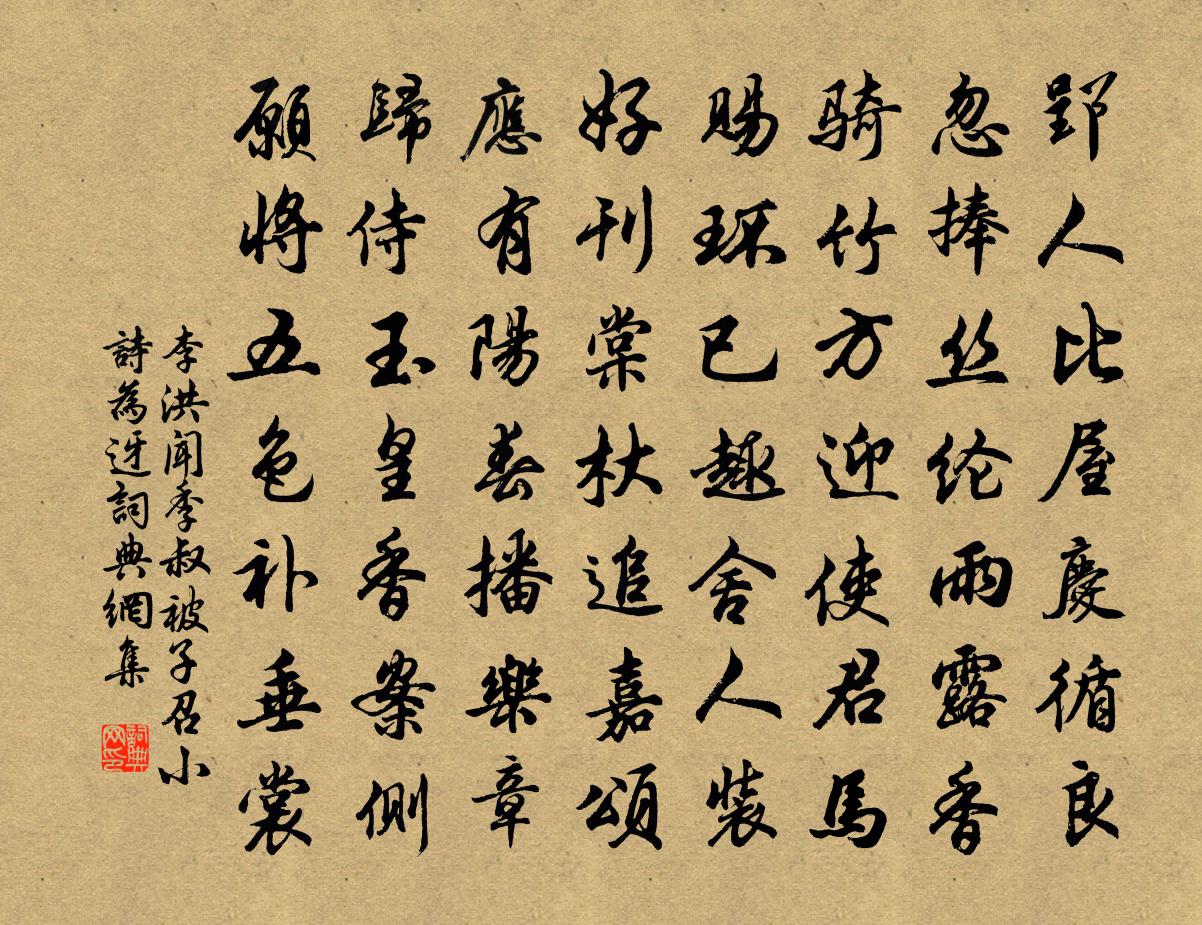 詩詞名句歷史字典書法欣賞書法字典國語詞典說文解字康熙字典古漢語字典標 題 作 者 詩 句 聞季叔被子召小詩為迓作者:李洪 朝代:宋代聞季叔被子召小詩為迓原文郢人比屋慶循良,忽捧絲綸雨露香。騎竹方迎使君馬,賜環已趣舍人裝。好刊棠杕追嘉頌,應有陽春播樂章。歸侍玉皇香案側,願將五色補垂裳。詩詞問答問:聞季叔被子召小詩為迓的作者是誰?答:李洪問:聞季叔被子召小詩為迓寫於哪個朝代?答:宋代李洪聞季叔被子召小詩為迓書法欣賞聞季叔被子召小詩為迓書法作品詩詞推薦頌古四十五首釋如珙〔宋代〕設粥殷勤請念誦,白槌各為念摩訶。上來或德要圓滿,復去廚頭打破鍋。和慮可庵悲秋十首何夢桂〔宋代〕秋風業戶牖,出戶天地寬。俯仰何跼蹐,天地猶盤盤。況復中間人。機險一黃間。毋懷千歲憂,且盡百年歡。妙源首座請贊釋智遇〔宋代〕道不可傳,貌不可繪。冷坐深雲,虎視百怪。源遠流長滅正宗,不比瞎驢趁機大隊。蘄春聽琵琶五首孔武仲〔宋代〕北踏胡霜漢馬驕,千秋琴調思嬌嬈。華堂夜飲燈如書,共聽新聲不寂寥。送黃景聲秘丞提舉浙西樓鑰〔宋代〕宅家親擢得真才,柏府蘭堂更外台。未問遄驅向溝壑,半途應有詔書催。春日登樓野望薛稷〔唐代〕憑軒聊一望,春色幾芬菲。野外煙初合,樓前花正飛。嬌鶯弄新響,斜日散餘暉。誰忍孤遊客,言念獨依依。鳳棲梧/蝶戀花杜安世〔宋代〕閒上江樓初雨過。滿袖清風,微散誰知我。蓮臉佳人顏未破。沙洲兩兩鴛鴦臥。時有漁歌相應和。疊秀危橫,黛撥歸塗春晚楊冠卿〔宋代〕暫解征驂野水湄,卷衣上馬夜何其。客愁政自不堪說,殘月一聲聞子規。初到金陵王安石〔宋代〕江湖歸不及花時,空繞扶疏綠玉枝。夜直去年看蓓蕾,晝眠今日對紛披。漢宮春(題鍾肇長短句)劉克莊〔宋代〕謝病歸來,便文殊相問,懶下禪床。雀羅晨有剝啄,顛倒衣裳。袖中贄卷,原夫輩、安敢爭強。若不是,子期苗裔青玉案陳瓘〔宋代〕碧空暗淡同雲繞。漸枕上、風聲峭。明透紗窗天欲曉。珠簾才卷,美人驚報,一夜青山老。使君留客金尊倒。正千偈傾一百三十三首釋法薰〔宋代〕老倒慈明為指迷,釣絲絞水出群機。時人貪看蘆花白,不見沙鷗隔岸飛。題繡川驛陸游〔宋代〕繡川池閣記曾游,落日欄邊特地愁。白首即今行萬里,淡煙依舊送孤舟。歸心久負鱸魚鱠,春色初回杜若洲。會買淨聖庵王賓〔宋代〕樂道岩前沙路平,淡煙和月照人行。林端仙館千山合,石罅靈泉一派清。蘊藻競嚴朝斗意,琳琅惟聽步虛聲。青書任道源轉示玉艷亭探梅詩卷未暇屬和閏月十一張鎡〔宋代〕細看孤標迎臘瘦,爭如繁 * 春酣。古為節士功名薄,乘欲裁詩問水南。寄謝希賢先覺表兄王邁〔宋代〕昔君弱冠我猶兒,黃卷青燈茅屋西,父對人談稱衛玠,母因客過器王珪。別來陰寄尺書鯉,夢裡時親日角犀。風快偈頌八十七首釋慧開〔宋代〕圖列千山開畫嶂,帶圍一水繞蓬瀛。腳頭未舉已先入。不用門前彈指聲。嘲春風溫庭筠〔唐代〕春風何處好,別殿饒芳草。苒裊轉鸞旗,萎蕤吹雉葆。揚芳歷九門,澹蕩入蘭蓀。爭奈白團扇,時時偷主恩。和聖俞詠昌言五物淡樹石屏司馬光〔宋代〕昔行鞏洛間,馬瘦天復陰。寒煙淡不收,一拂橫長林。當時無畫工,負此清賞心。今朝石上跡,歷歷皆可尋。輕素偈頌一百四十一首釋師範〔宋代〕九旬今日滿,那事意如何。無為無事人,往往成蹉跎。育王敢道不蹉跎,少年曾決龍蛇陣,老倒還同稚子歌。名句推薦過頭飯好吃,過頭話難聽!佚名《增廣賢文·下集》 惟有今宵,皓彩皆同普。郭應祥《醉落魄·丙寅中秋》 擊鼓其鏜,踴躍用兵。佚名《擊鼓》 兩株桃杏映籬斜,妝點商州副使家。王禹偁《春居雜興·兩株桃杏映籬斜》 犬吠水聲中,桃花帶露濃。李白《訪戴天山道士不遇》 沙上並禽池上暝。雲破月來花弄影。張先《天仙子·水調數聲持酒聽》 秋霜不惜人,倏忽侵蒲柳。李白《長歌行》 喚起一天明月,照我滿懷冰雪,浩蕩百川流。辛棄疾《水調歌頭·和馬叔度游月波樓》 顧此耿耿存,仰視浮雲白。文天祥《正氣歌》 竹喧歸浣女,蓮動下漁舟。王維《山居秋暝》