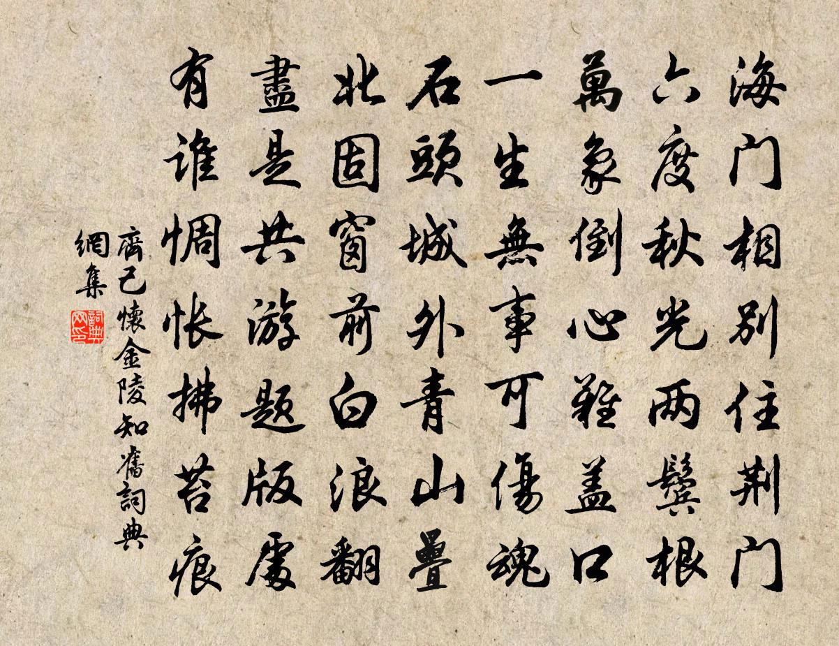 海門相別住荊門,六度秋光兩鬢根。萬象倒心難蓋口,一生無事可傷魂。