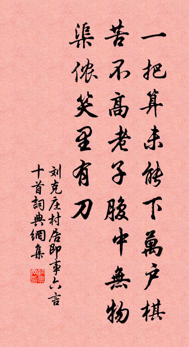 一把算未能下,萬戶棋苦不高。老子腹中無物,渠儂笑里有刀。