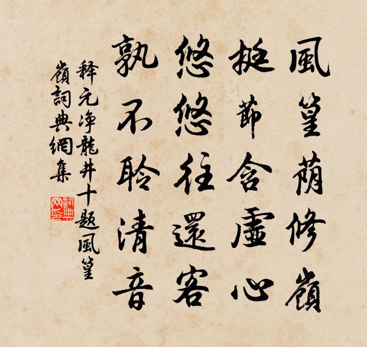 詩詞名句歷史字典書法欣賞書法字典國語詞典說文解字康熙字典古漢語字典標 題 作 者 詩 句 龍井十題風篁嶺作者:釋元淨 朝代:宋代龍井十題風篁嶺原文風篁蔭修嶺,挺節含虛心。悠悠往還客,孰不聆清音。詩詞問答問:龍井十題風篁嶺的作者是誰?答:釋元淨問:龍井十題風篁嶺寫於哪個朝代?答:宋代釋元淨龍井十題風篁嶺書法欣賞龍井十題風篁嶺書法作品詩詞推薦寄崔二十七立之韓愈〔唐代〕西城員外丞,心跡兩屈奇。往歲戰詞賦,不將勢力隨。下驢入省門,左右驚紛披。傲兀坐試席,深叢見孤羆。文如和李昇之夜遊灕江上章峴〔宋代〕自笑無錢對菊花,天寒欲冷慢令賒。桄榔葉暗臨江圃,茉莉香來釀酒家。月霧空濛螢照水,霜風蕭瑟鷺眠沙。歸尋得雨沾足遂有豐年意欣然口占陸游〔宋代〕人事銷沉渺莽中,此身元合付天公。儒生可逐惟求忘,社酒常辭不怕聾。鬱郁稻苗欣出穗,汪汪陂水告成功。老民出越城遊陸游〔宋代〕出郊聊曠目,小艇受樵風。煙柳淺深綠,水花顛倒紅。秋光無遠近,晚興信西東。欲訪幽人宿,高旛古木中。苑中人日遇雪應制趙彥昭〔唐代〕始見青雲乾律呂,俄逢瑞雪應陽春。今日回看上林樹,梅花柳絮一時新。送達觀禪師歸隱靜寺古律二首梅堯臣〔宋代〕初逢洛陽陌,再見南徐州。所歷幾何時,倏去二十秋。今復振霜屨,還山遠莫留。我詠阮公詩,物靡必沈浮。誰雲千秋歲吳潛〔宋代〕水晶宮裡。有客閒遊戲。溪漾綠,山橫翠。柳紓陰不斷,荷遞香能細。撐小艇,受風多處披襟睡。回首看朝市。名聞蟬五絕句奉呈諸幕友曾豐〔宋代〕靜坐幽眠自反聽,我新兩耳似蟬鳴。今日更向耳邊噪,會忘歸真作一聲。浣溪沙·游蘄水清泉寺蘇軾〔宋代〕游蘄水清泉寺,寺臨蘭溪,溪水西流。山下蘭芽短浸溪,松間沙路淨無泥,蕭蕭暮雨子規啼。誰道人生無再少?門送李才元學士知邛州梅堯臣〔宋代〕太守車煌煌,莫如還故鄉。昔登蜀郡籍,今得臨邛章。過家禮耆舊,接境跪壺漿。寒徑道路遠,春入山川長。俗將和郡守彭吏部按視湖亭凡二首周鍔〔宋代〕使群風味壓荊州,每為吾民樂更憂。錦里篇章推唱首,浣溪光景促遨頭。行春預約花欹帽,把酒方欣雪點裘。岳史偶成李若水〔宋代〕自憐疇昔抱痴頑,不慣黃埃日跨鞍。荒徑露霑旗尾潤,幽窗塵鎖筆頭乾。半林殘照人煙晚,一笛秋風雁影寒。還有菩薩蠻程垓〔宋代〕曉煙籠日浮山翠。春風著水回川媚。遠近碧重重。人家山色中。野花香自度。似識幽人處。安得著三間。與山終日朝雨陸游〔宋代〕午夜星照泥,平旦雲行西。小屋古澤中,天昏雨淒淒。避濕升我堂,垂翅閔老雞;所欣園中蔬,冒土青滿畦。門無贈詩僧方岳〔宋代〕從來佛法無多子,底用芒鞋半九州。贏得諸人詩滿袖,草深一丈法堂秋。鴛鴦湖棹歌 之九十六朱彝尊〔清代〕茅屋東溪興可乘,竹籬隨意掛魚罾。三冬雪壓千年樹,四月花繁百尺藤。有鳥褐色而羽如青錦解作諸般語一卒蓄之籠中郭印〔宋代〕錦作雙翰褐作衣,雕籠蓄養亦多時。只緣學得千般語,欲返山林未有期。井梧吟薛濤〔唐代〕庭除一古桐,聳乾入雲中。[1]枝迎南北鳥,葉送往來風。[2]山市晴嵐楊公遠〔宋代〕橫嵐髴抹高岡,村市人家釀秫香。溪上曉來爭渡急,里鹽沽酒趁虛忙。水調歌頭(自湖北漕移湖南,總領王、趙守置酒南樓,席上留別)辛棄疾〔宋代〕折盡武昌柳,掛席上瀟湘。二年魚鳥江上,笑我往來忙。富貴何時休問,離別中年堪恨,憔悴鬢成霜。絲竹陶寫耳名句推薦又到斷腸回首處,淚偷零。納蘭性德《山花子·風絮飄殘已化萍》 敗葉填溪水已冰,夕陽猶照短長亭。納蘭性德《浣溪沙·敗葉填溪水已冰》 重幃深下莫愁堂,臥後清宵細細長。李商隱《無題·重幃深下莫愁堂》 昭昭若日月之明,離離如星辰之行劉勰《文心雕龍·宗經》 命將征西極,橫行陰山側。李白《塞上曲》 淚滴千千萬萬行,更使人、愁腸斷。樂婉《卜運算元·答施》 素臣稱有道,守在於四夷。田錫《塞上曲》 拔一毛而利天下,不為也。孟子《孟子·盡心章句上·第二十六節》 綠葉青跗映丹萼,與君裴回上金閣。王勃《落花落》 客里相逢,籬角黃昏,無言自倚修竹。姜夔《暗香疏影》