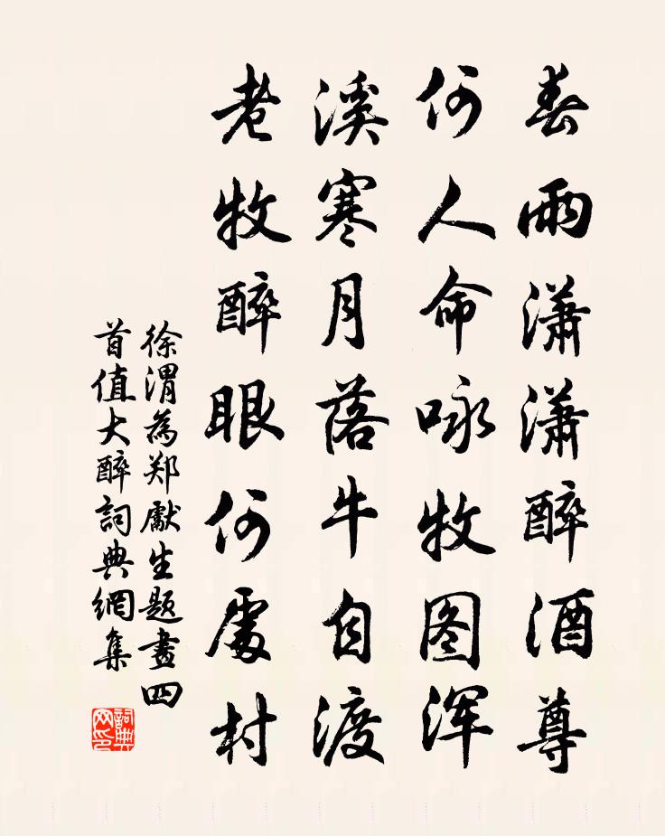 詩詞名句歷史字典書法欣賞書法字典國語詞典說文解字康熙字典古漢語字典標 題 作 者 詩 句 為鄭先生題畫四首,值大醉作者:徐渭 朝代:明代為鄭先生題畫四首,值大醉原文春雨瀟瀟醉酒尊,何人命詠牧圖渾。溪寒月落牛自渡,老牧醉眼何處村。詩詞問答問:為鄭先生題畫四首,值大醉的作者是誰?答:徐渭問:為鄭先生題畫四首,值大醉寫於哪個朝代?答:明代徐渭為鄭先生題畫四首,值大醉書法欣賞為鄭先生題畫四首,值大醉書法作品詩詞推薦庚子至前二日韓德全李師民相繼而至聊書一時晁說之〔宋代〕先後客無約,寒窗注夕陽。縱談香柏子,孤興飲松黃。不道仇池遠,唯迎至日長。於焉豈易得,回首即他鄉。驄馬庾抱〔唐代〕櫪上浮雲驄,本出吳門中。發跡來東道,長鳴起北風。回鞍拂桂白,赬汗類塵紅。滅沒徒留影,無因圖漢宮。滿江紅 授(原作受,據道藏改)記門人李道純〔元代〕吾道玄關,決不許、外邊人人。有學者來參,防他做賊。猛把 * 刀子舉,活人手段輕拈出。更單提、獨弄逞神通題山寺井賈島〔唐代〕沈沈百尺余,功就豈斯須。汲早僧出定,鑿新蟲自無。藏源重嶂底,澄翳大空隅。此地如經劫,涼潭會共枯。送日本爾侍者釋紹曇〔宋代〕徑山無法與人傳,幾度親遭劈面拳。今日大唐回首去,鼻頭元在口皮邊。重慶閫治十詠六角亭李曾伯〔宋代〕四維風折勢,一片雪同規。花竹叢間著,開樽淪苟茗宜。春愁曲次劉正仲韻戴表元〔宋代〕山翁隱居雁蒼谷,春樹年年為翁綠。耕休坐樹作勞歌,山光水景相徵逐。歌成無人祗自娛,行人頗怪歌聲殊。循蹤偶成蕭元之〔宋代〕少年鞍馬疾如飛,賣盡儒衣買戰衣。老去不知筋力減,夜闌猶夢解重圍。書嬾陸游〔宋代〕此身不覺老侵尋,殘發蕭蕭雪滿簪。那有新詩書觸目,亦無閒話問安心。塞垣西戍茫如夢,省戶東歸病至今。一嬾酬趙懶翁求墨王諶〔宋代〕會面苦無因,緘書意亦勤。相望七十里,隔天一重雲。有句來求墨,得詩如見君。從知相憶夢,花下擬論文。退之劉克莊〔宋代〕向來諛墓人,其報在身後。柳車不免埋,硫黃安能壽。流傳碑板多,篇篇說不朽。溘先同露電,沙魘曰山斗。使都梁次韻真德秀〔宋代〕第一山前路半蕪,憑欄小立捻吟須。雲橫紫塞無來雁,冰斷黃流不渡狐。此日都梁聊共醉,向來夷甫可長吁。淮山又謁武侯祠孫應時〔宋代〕城南風景故堪憐,勝日經行意洒然。江上竹寒偏卻暑,廟前柏老尚參天。堂堂不配能千古,鼎鼎何能漫百年。醉里和陶神釋吳芾〔宋代〕人生稟一氣,自微而至著。不問富與貧,不論新與故。自有形影初,我便相親附。二子既有言,我寧無一語。汝形薌林五十詠梨花原楊萬里〔宋代〕禁火曉未暖,蹈青昏恰皈。何堪一原雪,將冷入春衣。水調歌頭(寄王信父)張炎〔宋代〕白髮已如此,歲序更駸駸。化機訊息,莊生天籟雍門琴。頗笑論文說劍,休問高車駟馬,袞袞□黃金。蟻在元無夢上制置侍郎度正〔宋代〕武侯落落舊規摹,千載誰能發壯圖。撫定南方無後顧,感通北面自前孚。但於號令教心服,自是歡忻聽指呼。群策題筆架山積翠樓白玉蟾〔宋代〕萬頃平田指掌間,松梢直上與檐乾。雲粘暮色月華濕,樹顫秋聲天籟寒。窗外好山千翡翠,屋頭修竹萬琅玕。樓中題萊公泉趙汝鐩〔宋代〕馬鞍山下倚吟鞭,慨想前賢古道邊。健筆南軒三大字,高風相國一泓泉。征途著句雖無暇,詩版留名自可傳。寺主銘座六言二首劉克莊〔宋代〕數步覺蕭娘臭,三日聞荀令香。涑水公銘衾戒,乖崖老按劍防。名句推薦不可以一時之譽,斷其為君子;不可以一時之謗,斷其為小人。馮夢龍《警世通言·卷四》 墉集欺貓鼠,林藏逐雀鸇。徐威《中秋詠懷借杜子美秋日述懷一百韻和寄柳州假鳴桑先生》 同來不得同歸去,故國逢春一寂寥!杜牧《宣州送裴坦判官往舒州時牧欲赴官歸京》 松月生夜涼,風泉滿清聽。孟浩然《宿業師山房期丁大不至 / 宿業師山房待丁大不至》 上無威,下生亂。來俊臣《羅織經·治下卷第三》 南朝四百八十寺,多少樓台煙雨中。杜牧《江南春》 彼竊鉤者誅,竊國者為諸侯,諸侯之門而仁義存焉莊子《莊子·外篇·胠篋》 有其言,無其行,君子恥之戴聖《禮記·雜記下》 人生得意須盡歡,莫使金樽空對月。李白《將進酒》 為山九仞,功虧一簣。佚名《尚書·周書·旅獒》