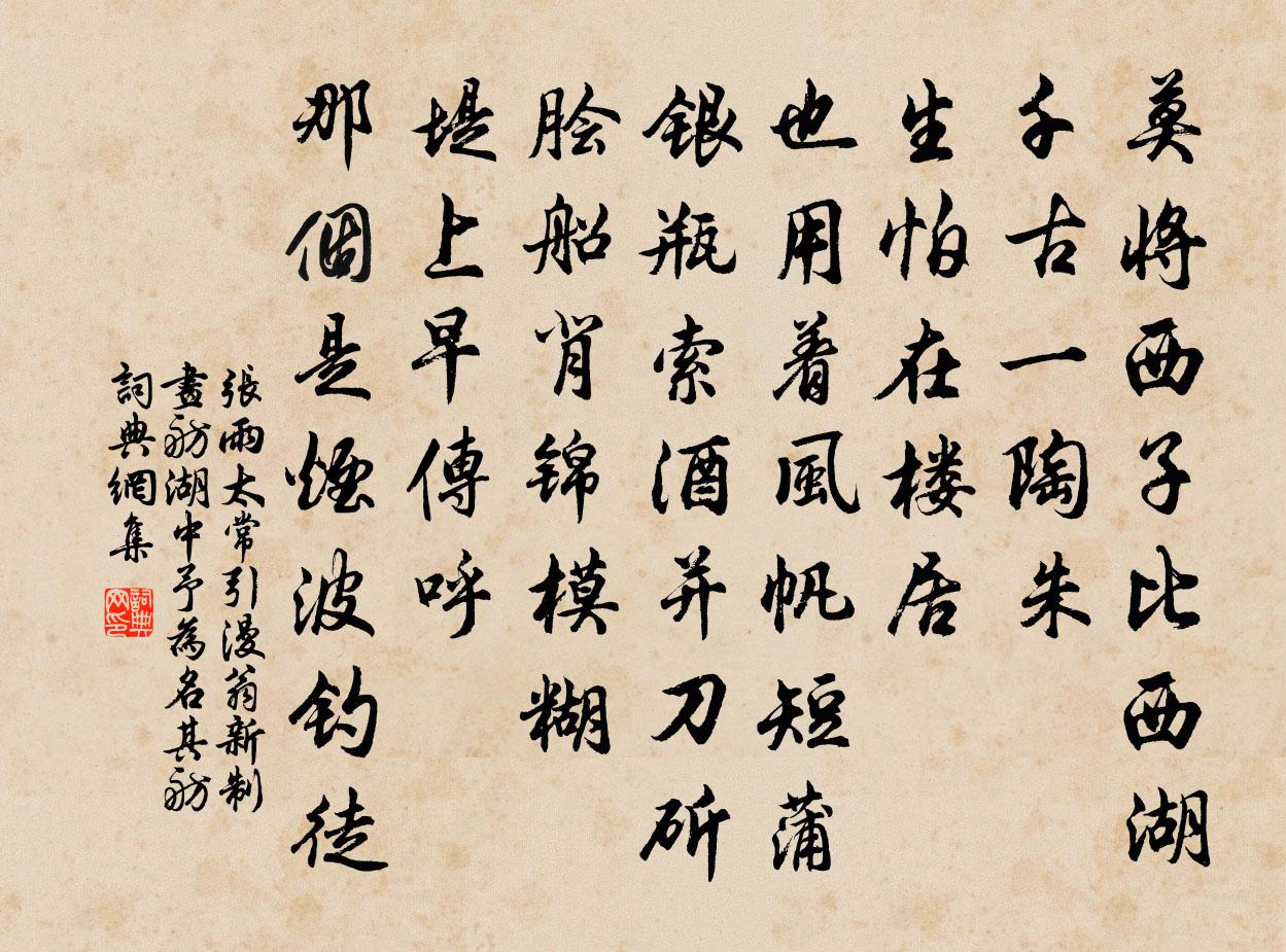 詩詞名句歷史字典書法欣賞書法字典國語詞典說文解字康熙字典古漢語字典標 題 作 者 詩 句 太常引 漫翁新制畫舫湖中,予為名其舫作者:張雨 朝代:元代原文莫將西子比西湖。千古一陶朱。生怕在樓居。也用著風帆短蒲。銀瓶索酒,並刀斫膾,船背錦模糊。堤上早傳呼。那個是煙波釣徒。詩詞問答問:《太常引 漫翁新制畫舫湖中,予為名其舫》的作者是誰?答:張雨問:該詩寫於哪個朝代?答:元代問:該詩是什麼體裁?答:詞書法欣賞太常引 漫翁新制畫舫湖中,予為名其舫書法作品詩詞推薦詠史詩褒城胡曾〔唐代〕恃寵嬌多得自由,驪山舉火戲諸侯。只知一笑傾人國,不覺胡塵滿玉樓。和宇文漢州□□氣房樓記詩魏了翁〔宋代〕房公胸中妙刀尺,翦刻玻璃貯寒碧。今侯著樓於其上,竹色荷光得良覿。詩來殷勤問故侯,別日雖賒情轉密。因思臨江仙(賞興)趙長卿〔宋代〕柳上斜陽紅萬縷,烘人滿院荷香。晚涼初浴略梳妝。冠兒輕替枕,衫子染鶯黃。蓄意新詞輕緩唱,殷勤滿捧瑤觴。直溪吏吳偉業〔清代〕直溪雖鄉村,故是尚書里。短棹經其門,叫聲忽盈耳。一翁被束縛,苦辭橐如洗。吏指所居堂,即貧誰信爾。呼人次韻張子開教授游杖錫寺偶成陳著〔宋代〕禪老慈悲下界愁,長詩招我到深幽。人知晚節陶元亮,誰識初心馬少游。星月天高空繞鵲,江湖風惡不容鷗。苦無和汝霖三首胡寅〔宋代〕聖門功業海同深,大禹猶曾惜寸陰。知有詩書消永日,不將狐貉愧寒衾。定心應已觀川逝,闊步何須嘆陸沉。聞道見東閣劉黻〔宋代〕大唐詩派遠,今復有唐人。慎吐冰霜句,恐妨天地春。閉門惟嗜古,養鶴亦甘貧。未識孤高貌,梅花想逼真。比見愚卿於廬陵出示楊謹仲詩卷中及其弟魯卿趙蕃〔宋代〕廬陵得交君弟兄,楊子詩中稱魯卿。問雲攜琴嶽麓行,歸期去日雲秋清。今晨復見楊子面,為方卓卿近相見。玉隆沁園春 樵王玠〔元代〕家住孤峰,門臨曲澗,木作橫橋。與世事相違,心求活計,蓑衣掛體,斧柄懸腰。出入玄關,往來幽徑,直上高山還家於鄴〔唐代〕為客憶歸舍,歸來還寂寥。壯時看欲過,白首固非遙。獨酌幾回醉,此愁終不銷。猶殘雞與犬,驅去住山椒。題州宅艤閣林積〔宋代〕濟川須用楫,罔水戒行舟。四海風波路,安眠是勝游。和谹父問訊吉父王洋〔宋代〕困臂知三折,攻頑費七旬。不聞覆杯水,能救一輿薪。俗傲軒轅聖,巫夸越女神。百年勾漏術,觸處白頭新。南歌子程垓〔宋代〕雨燕翻新幕,風鵑繞舊枝。畫堂春盡日遲遲。又是一番平綠、漲西池。病起尊難盡,腰寬頻易垂。不堪村落子規啼九仙瀑布泉柳德驥〔宋代〕白雲深處是仙鄉,石澗飛流瀑布長。天插一泉聲潄玉,地高六月夜凝霜。煙霞極目浮孤嶼,蘿薜牽衣出上方。明發再用前韻方回〔宋代〕此事誰知我,他年豈料今。棋殘才有眼,燈暗欲無心。衰老常為客,山林故自深。忘形侶猿鶴,可待整冠襟。天下不用車王安石〔宋代〕天下不用車,人人乘馬馳。王良雖善御,攬轡欲從誰。漢武伐大宛, * 若京坻。孝文卻走馬,獨行先安之。萬物賣葛粉錢時〔宋代〕市聲朝暮過樓欄,喧得人來不耐煩。寂寞山前聞叫賣,如何不作此心觀。謁金門(題沅州幽蘭鋪壁)徐珌〔宋代〕秋欲暮。路入亂山深處。撲面西風吹霧雨。驛亭欣暫駐。可惜國香風度。空谷寂寥誰顧。已作竹枝傳楚女。客愁推頌古十七首釋師觀〔宋代〕傀{礧石換亻}棚頭,全火只候。明眼人前,一場漏逗。浣溪沙張鎡〔宋代〕無計長留月里花。收英巧付火前茶。綠塵飛處粉芳華。午夜露濃天竺徑,一秋香滿玉川家。掃除殘夢入雲涯。名句推薦河西幕中多故人,故人別來三五春。岑參《涼州館中與諸判官夜集》 野橋經雨斷,澗水向田分。劉長卿《碧澗別墅喜皇甫侍御相訪》 患名之不立,不患年之不長。陳壽《三國志·魏書·劉司馬梁張溫賈傳》 柳條折盡花飛盡,借問行人歸不歸?佚名《送別詩》 竹樹無聲或有聲,霏霏漠漠散還凝。杜荀鶴《春日山中對雪有作》 信者人之乾也,義者行之節也。劉向《列女傳·貞順傳·陳寡孝婦》 行路難!行路難!多歧路,今安在?李白《行路難三首》 木謂之華,草謂之榮。佚名《爾雅·釋草》 一夕輕雷落萬絲,霽光浮瓦碧參差。秦觀《春日》 易漲易退山溪水,易反易覆小人心。佚名《增廣賢文·上集》