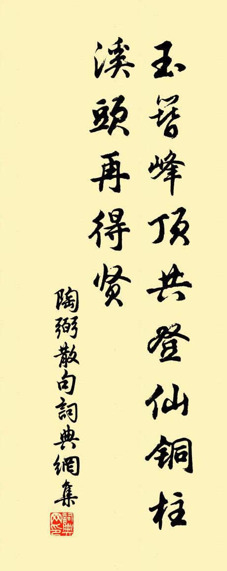 詩詞名句歷史字典書法欣賞書法字典國語詞典說文解字康熙字典古漢語字典標 題 作 者 詩 句 句作者:陶弼 朝代:宋代句原文玉簪峰頂共登仙,銅柱溪頭再得賢。詩詞問答問:句的作者是誰?答:陶弼問:句寫於哪個朝代?答:宋代陶弼句書法欣賞句書法作品詩詞推薦桃源春曉圖趙孟頫〔元代〕宿雲初散青山濕,落紅繽紛溪水急。桃花源里得春多,洞口春煙搖綠蘿。綠蘿搖煙掛絕壁,飛泉淙下三千尺。瑤草漁父詞張鎡〔宋代〕西塞山前得杖藜,波晴不見鷺群飛。何曾千載同心處,只在斜風細雨時。題朱林修塵外樓圖杜濬〔清代〕芳草無邊似綠江,高樓臨眺客愁降。向東一面尤奇絕,盡放鐘山入小窗。致爽亭二首張嵲〔宋代〕霧豁空江平,楚疏遠山出。龍溪夜來雨,爽氣侵衣濕。遣興喻良能〔宋代〕山園近寒食,春事總芳菲。風暖鵓鴣語,日長蝴蝶飛。花光明醉眼,草色淨塵衣。自足家居樂,為生未覺非。京城第二十文天祥〔宋代〕當寧陷玉座,兩宮棄紫微。北城悲笳發,失涕萬人揮。送劉季展從軍雁門二首黃庭堅〔宋代〕劉郎才力耐百戰,蒼鷹下韝秋未晚。千里荷戈防犬羊,十年讀書厭藜莧。試尋北產汗血駒,莫殺南飛寄書雁。人生游石鼓寺李新〔宋代〕石鼓寂不振,金聲無處求。層岩參霧樹,亂玉響冰溝。破屐前無齒,孤城遠見樓。山僧痴問客,阿汝謂湯休。送李戎扶侍往壽安賈島〔唐代〕二千餘里路,一半是波濤。未曉著衣起,出城逢日高。關山多寇盜,扶侍帶弓刀。臨別不揮淚,誰知心鬱陶。輓趙秋曉陳庚〔宋代〕取友慚何益,論昏不厭貧。亦公自為德,而我竟奚因。事巧緣何淺,言深死已瀕。枕邊呼別意,生死見情真。飛雲樓王邁〔宋代〕亭前一望水東流,更有雄樓在上頭。燕子飛來春漠漠,鴟夷仙去水悠悠。神交故國三千里,目斷中原四百州。日暮霜徐璣〔宋代〕詩鬢曉星星,霜天似水清。風當窗眼入,冰向硯池生。已瘦梅枝影,獨乾竹葉聲。夜來天地潔,惟是月華明。新竹鄭燮〔清代〕新竹高於舊竹枝,全憑老乾為扶持。下年再有新生者,十丈龍孫繞鳳池。(下年 一作:明年)積食不消化訣賈似道〔宋代〕積食不化甚堪嗟,水畔紅蟲是可佳。研細任君分兩處,餵畢鬭勝是誰家。洞霄宮陳堯佐〔宋代〕谷口停驂上翠微,五雲宮殿闢金扉。不知何處朝元會,卻見龍鸞隊仗歸。訪次張廣上人繼至趙汝鐩〔宋代〕都不見塵埃,園扉傍水開。晴茵鋪碧草,風彈落黃梅。訪子因尋竹,呼童急辦杯。詩僧相繼至,罷酒把茶來。古松林景熙〔宋代〕獨占寬閒地,不知搖落天。山林猶古色,風雪自窮年。龜伏靈根壽,禽巢絕頂仙。棟樑非所屑,幾見海成田。將赴嶺外,留題蕭寺遠公院(寺即梁朝蕭內史創)劉長卿〔唐代〕竹房遙閉上方幽,苔徑蒼蒼訪昔游。內史舊山空日暮,南朝古木向人秋。天香月色同僧室,葉落猿啼傍客舟。此去和況子提刑途中遇雪韓維〔宋代〕雪凝野曠接高低,切切寒侵使者衣。客路怳驚霜鬢改,家山回望玉觴飛。更添宿雨催花潤,未放春雷起蟄威。柳色和劉景文雪蘇軾〔宋代〕占雨又得雪,龜寧欺我哉。似知吾輩喜,故及醉中來。童子愁冰硯,佳人苦膠杯。那堪李常侍,入蔡夜銜枚。名句推薦曉霧將歇,猿鳥亂鳴;陶弘景《答謝中書書》 雨雪自飛千嶂外,榆林只隔數峰西。朱彝尊《出居庸關》 悵望千秋一灑淚,蕭條異代不同時。杜甫《詠懷古蹟五首·其二》 小男供餌婦搓絲,溢榼香醪倒接罹。李郢《南池》 已知泉路近,欲別故鄉難。夏完淳《別雲間》 野老念牧童,倚杖候荊扉。王維《渭川田家》 春無主!杜鵑啼處,淚灑胭脂雨陳子龍《點絳唇·春日風雨有感》 鏡湖三百里,菡萏發荷花。李白《子夜吳歌·夏歌》 雪照山城玉指寒,一聲羌管怨樓間。劉著《鷓鴣天·雪照山城玉指寒》 親愛我,孝何難。親憎我,孝方賢。李毓秀《弟子規·入則孝》