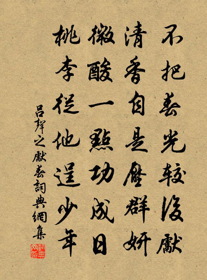 詩詞名句歷史字典書法欣賞書法字典國語詞典說文解字康熙字典古漢語字典標 題 作 者 詩 句 先春作者:呂聲之 朝代:宋代先春原文不把春光較後先,清香自是壓群妍。微酸一點功成日,桃李從他逞少年。詩詞問答問:先春的作者是誰?答:呂聲之問:先春寫於哪個朝代?答:宋代呂聲之先春書法欣賞先春書法作品詩詞推薦簡徐宰方岳〔宋代〕俗吏相傳作縣難,及民那有一分寬。聞君猶逮從諸老,說到民貧鼻亦酸。大雪送炭與芥隱范成大〔宋代〕無因同撥地爐灰,想見柴荊晚未開。不是雪中須送炭,聊裝風景要詩來。柳梢青佚名〔宋代〕家近閩南。三姑姊妹,秀揖仙岩。須女精神,玉卮標格,謫下塵凡。他時佳婿成雙,紅絲應牽第三。倚看樽前,團立秋後三日得二侄並侄孫家書程公許〔宋代〕萬里書來印籀紅,慰情何但萬金同。縣絲性命倖存活,發地生涯甘阨窮。老去憂心長似醉,秋來衰鬢亂飛蓬。故園送客至無相蘭若歸過慈雲嶺小憩崇壽寺書所見張鎡〔宋代〕南山好處劉家寺,門裡松篁一逕沖。自有禽聲喜迎客,不須知事更鳴鐘。魚梅堯臣〔宋代〕洛水美赬鯉,入河西去時。三春登玉浪,一日到天池。垂釣豈容羨,小鱗應莫隨。腹中無匕首,已不助吳兒。寄潘維節王炎〔宋代〕墨貂裘敝君窮甚,黃犬書來我慨然。肯到越中同住否,秋深即上歙溪船。醉歸陸游〔宋代〕夜分飲散酒家壚,歸路迢迢月滿湖。小豎竊言翁未醉,入門猶記露菖蒲。七歌效杜陵體丘葵〔宋代〕督府養兵如養子,帛堆其家粟崇庾。少不如意出怨言,恃功偃蹇驕其主。道旁老甿哭告予,未被賊苦被軍苦。嗚呼梅四首劉鑒〔宋代〕休說逋仙兩句工,冰甌滌筆別形容。清標騷客風前立,素麵仙姝月下逢。山店霜寒香撲馬,溪橋水淺影如龍。一□織婦釋智圓〔宋代〕九月風高未授衣,燈前軋軋夜鳴機。困來不覺支頤睡,鼠齧絲頭四散飛。延慶寫真贊二首林亦之〔宋代〕秋雨秋山夜,縱縱自橫橫。平生無罪過,不合去為僧。半山寺三首楊萬里〔宋代〕霜松雪竹老重尋,南盪東陂水自深。鳳去宅存誰與住,不如作寺免傷心。題趙別駕委齋劉克莊〔宋代〕乍看華扁費尋思,徐叩微言極坦夷。無可奈何安命者,吾非惡此欲逃之。萬羊賦祿渠前定,二鳥蒙恩彼一時。總被慈湖夾阻風五首蘇軾〔宋代〕此生歸路愈茫然,無數青山水拍天。猶有小船來賣餅,喜聞墟落在山前。哭謝尚書舒岳祥〔宋代〕翰林翰學士,吏部老尚書。薊北非吾土,勤江有舊廬。死生今已矣,出處竟何如。邛竹先龍化,人琴一慟余。醉蓬萊(毛氏女兄生朝三月二十八日)李處全〔宋代〕政余春眷眷,首夏駸駸,清和時候。曉色曈曨,瑞靄凝軒牖。著子青梅,裊枝紅藥,物物俱情厚。綠綺朱弦,檀槽次韻周公謹見寄馬廷鸞〔宋代〕退之懷桂林,藥物珍陸離。物情惡衰歇,義心感親和。我生欠一死,不死當語誰。與我制頹齡,悠悠白雲期。送侯中丞流康州劉長卿〔唐代〕長江極目帶楓林,匹馬孤雲不可尋。遷播共知臣道枉,猜讒卻為主恩深。轅門畫角三軍思,驛路青山萬里心。北闕月夜陸游〔宋代〕小醉初醒月滿床,玉壺銀闕不勝涼。天風忽送荷香過,一葉飄然憶故鄉。名句推薦繁飾有命,以教眾愚朴之人。墨子《墨子·36章 非命(中)》 惟有今宵,皓彩皆同普。郭應祥《醉落魄·丙寅中秋》 老圃好栽培,菊花五月開。顧太清《菩薩蠻·端午日詠盆中菊》 無常亂之國,無不可理之民者。吳兢《貞觀政要·卷五· * 平》 風雨牢愁無著處,那更寒蛩四壁。文天祥《酹江月·和友驛中言別》 雪中何以贈君別,惟有青青松樹枝。岑參《天山雪歌送蕭治歸京》 母信者,其子必仁。劉向《列女傳·節義傳·楚昭越姬》 落霞與孤鶩齊飛,秋水共長天一色。王勃《滕王閣序》 晚來天,空悄然,孤眠,枕檀雲髻偏。孫光憲《河傳·花落》 流芳未及歇,遺掛猶在壁。潘安《悼亡詩三首》