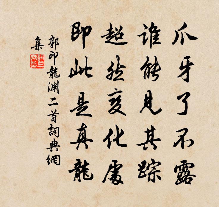 詩詞名句歷史字典書法欣賞書法字典國語詞典說文解字康熙字典古漢語字典標 題 作 者 詩 句 龍淵二首作者:郭印 朝代:宋代龍淵二首原文爪牙了不露,誰能見其蹤。超然變化處,即此是真龍。詩詞問答問:龍淵二首的作者是誰?答:郭印問:龍淵二首寫於哪個朝代?答:宋代郭印龍淵二首書法欣賞龍淵二首書法作品詩詞推薦螢火張嵲〔宋代〕徂暑初殘夜,飛螢遍曲塘。翕張舒焰短,雨注引輝長。翻屋星移位,窺簾燼吐光。未應彌輦路,聊可映書囊。乍與贈吳太博二首宋祁〔宋代〕銀兔頻年滯使麾,曲台猶掌一王儀。四巡奏頌推嚴筆,千牘程書入漢帷。駟里飛觴酣玉液,天街疊鼓候金羈。前期避難西坑用瀹韻陳著〔宋代〕頭禿鬢蕭蕭,誰知生轉勞。危心念避遠,老腳失低高。薄采義山蕨,難逢仙徑桃。如何是歸日,世事日囂囂。示安大師王安石〔宋代〕道人深北山為家,宴坐白露眠蒼霞。手扶梲杖雖老矣,走險尚可追麏麚。踞堂俯視何所有,窈窕樛木垂榠樝。深尋紀德陳情上致政太傅杜相公二首歐陽修〔宋代〕儉節清名世絕倫,坐令風俗可還淳。貌先年老因憂國,事與心違始乞身。四海儀刑瞻舊德,一◇談笑作閒人,鈴齋雜詠五言五首劉克莊〔宋代〕敝廬吾亦愛,陋巷人不堪。痴兒蝸帶屋,老子繭名庵。江上贈竇長史李白〔唐代〕漢求季布魯朱家,楚逐伍胥去章華。萬里南遷夜郎國,三年歸及長風沙。聞道青雲貴公子,錦帆遊戲西江水。人疑詠尹字(頲幼年,有京兆尹過父瑰命詠尹字)蘇頲〔唐代〕醜雖有足,甲不全身。見君無口,知伊少人。郴江百詠並序靈壽木阮閱〔宋代〕聊依枯木伴寒藤,曾為當年孔傅生。寂寞空山窮谷里,如今文杏又爭名。元暉山水圖釋紹曇〔宋代〕簇簇煙林掛酒帘,山藏古寺寂無僧。瘦筇便欲幽尋去,隔岸小舟呼不應。午憩二首楊萬里〔宋代〕晴邊雨後麥秋時,風色輕輕日色微。已隔深溪仍蘸水,卻教人折野薔薇。次韻和李寔父焰火行舒岳祥〔宋代〕山樵夏斬樗櫟枝,受晝日炙兼風吹。天寒歲晚見功用,春透肝鬲連腰肢。一室暖香勝樺燭,破衲紉縫針線續。床頭寄遠其十一李白〔唐代〕愛君芙蓉嬋娟之艷色。色可餐兮難再得。憐君冰玉清迥之明心。情不極兮意已深。朝共琅玕之綺食。夜同鴛鴦之錦黃碧李洪〔宋代〕軒台鑄鼎已飛升,留與仙祠萬古名。羽駕霓旌鎖深翠,無因暫聽步虛聲。句胡銓〔宋代〕盈尺子魚來丙穴,一瓶女酒敵新州。渡長泖投小蒸邵教授宿戴表元〔宋代〕清曉浮雙槳,黃昏值一餐。風鳴長泖浪,雲掩小蒸村。饞極知鱸美,驚還覺雁喧。同袍恩有愛,燈火細溫存。薦玄德公廟儲光羲〔唐代〕神道本無已,成化亦自然。君居寥天上,德在玉華泉。真游踐王豫,永日遲雲仙。表微在營道,明祀將祈年。靈山再用前韻寄蔡天啟王安石〔宋代〕蔡侯東方來,取友無所挾。翛翛一囊衣,偶以一書笈。定林朝自炊,有匕或無筴。時時羹藜藿,鑊大苦難燮。驕頑舟行鄿黃間雨霽得便風有感陸游〔宋代〕天青雲白十分晴,帆飽舟輕盡日行。江底魚龍貪晝睡,淮南草木借秋聲。好山縹緲何由住,華發蕭條只自驚。莫怪晏子答梁丘據佚名〔〕梁丘據死,景公召晏子而告之曰:“據忠且愛我。我欲豐厚其葬,高大其壟。”晏子曰:“敢問據之忠且愛於君者名句推薦贈遠虛盈手,傷離適斷腸。李商隱《十一月中旬至扶風界見梅花》 道可道,非常道;名可名,非常名。劉安及其門客《淮南子·道應訓》 持志如心痛。一心在痛,人安有工夫說閒語,管閒事王陽明《傳習錄·卷上·門人薛侃錄》 有孫母未去,出入無完裙。杜甫《石壕吏》 奢者富而不足,何如儉者貧而有餘。洪應明《菜根譚·概論》 海風吹不斷,江月照還空。李白《望廬山瀑布水二首》 關西老將不勝愁,駐馬聽之雙淚流。王維《隴頭吟》 細影將圓質,人間幾處看。薛濤《月》 雲物不殊鄉國異,教兒且覆掌中杯。杜甫《小至》 來歲長安春事早,勸杏花、斷莫相思死。龔自珍《金縷曲·癸酉秋出都述懷有賦》