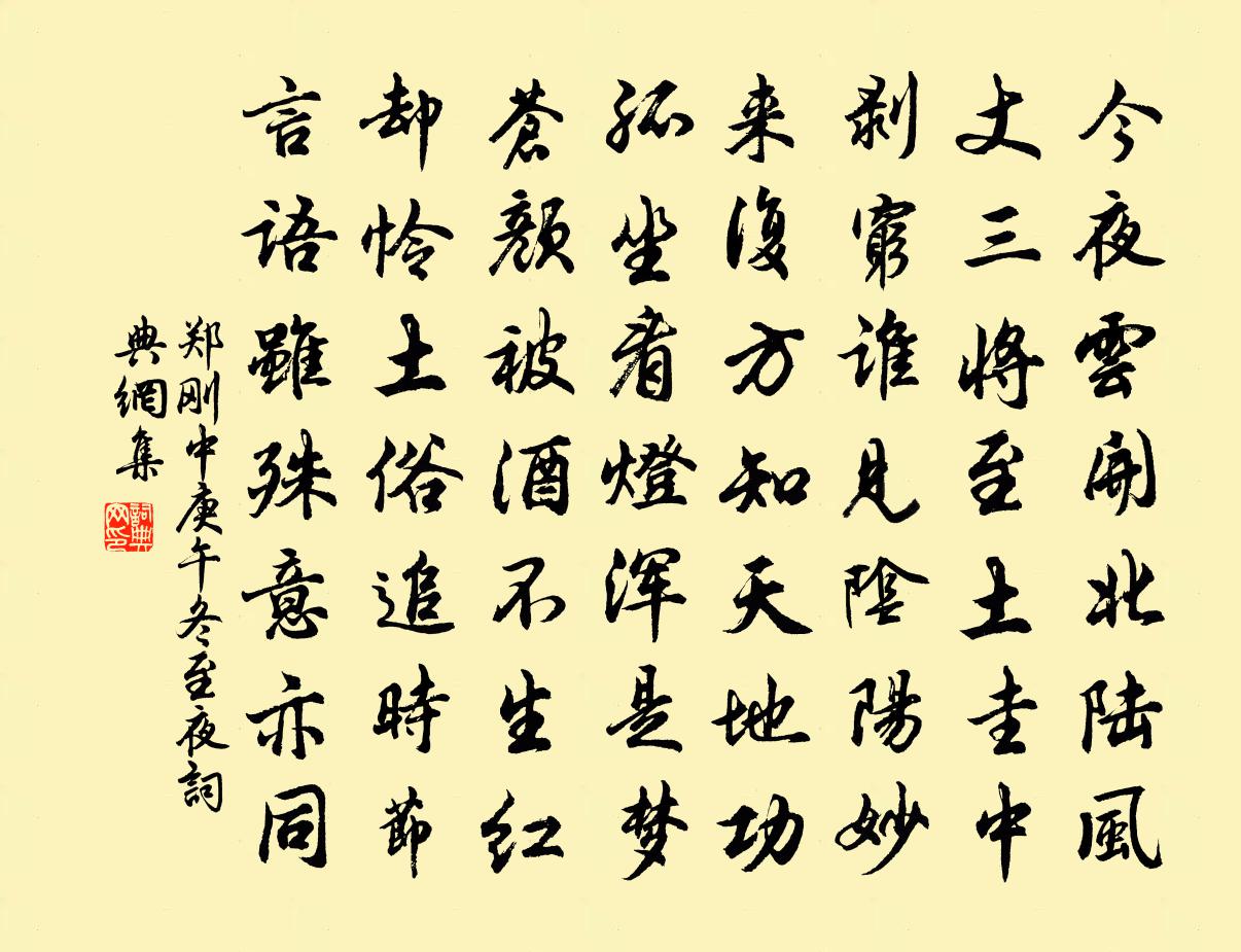 詩詞名句歷史字典書法欣賞書法字典國語詞典說文解字康熙字典古漢語字典標 題 作 者 詩 句 庚午冬至夜作者:鄭剛中 朝代:宋代庚午冬至夜原文今夜雲開北陸風,丈三將至土圭中。剝窮誰見陰陽妙,來複方知天地功。孤坐看燈渾是夢,蒼顏被酒不生紅。卻憐土俗追時節,言語雖殊意亦同。詩詞問答問:庚午冬至夜的作者是誰?答:鄭剛中問:庚午冬至夜寫於哪個朝代?答:宋代鄭剛中庚午冬至夜書法欣賞庚午冬至夜書法作品詩詞推薦擬結客少年場曾協〔宋代〕結客少年場,定交杯酒間。相傾在意氣,握手出肺肝。倉皇夜扣門,然諾曾不難。所至足賓客,後乘車班班。鄠杜頌一百則釋重顯〔宋代〕兩堂俱是杜禪和,撥動煙塵不奈何。賴得南泉能舉令,一刀兩段任偏頗。淳化鄉飲酒三十三章佚名〔宋代〕喈喈黃鳥,載飛載止。我有旨酒,嘉賓式燕且喜。次韻江州林黃中上巳日會邛州劉侍郎梓漕任直周必大〔宋代〕牙旗排檻曉鳴風,樓上何人清宴同。東道主開軍府盛,西都賓共聖賢中。詞鋒永日論堅白,輦路他年記軟紅。頗念送王大卿致政歸江陵王安石〔宋代〕九卿初命亞三司,朝吏相瞻得老師。南闕便還新印綬,東舟只載舊書詩。漢庭餞客無佳句,越水歸裝有富貲。回首樵翁森〔宋代〕妻出叮嚀夫轉聽,採薪須束擔頭輕。夜來雨過蒼苔滑,莫向巉岩險處行。雪竇中岩夜坐釋正覺〔宋代〕哀猿叫落中岩月,野客吟殘夜半燈。此景此時誰會得,白雲深處坐禪僧。梁南郊登歌詩沈約〔南北朝〕暾既明。禮告成。惟聖祖。主上靈。爵已獻。罍又盈。息羽鑰。展歌聲。僾如在。結皇情。暗室丘葵〔宋代〕一幾善惡未分時,善本無為莫偽為。暗室休言人不見,此心才動鬼神知。偈六十九首釋道寧〔宋代〕解語非乾舌,能言不是聲。非聲非舌用,方乃號圓成。妙造如如旨,還家罷問程。哭舍弟二首李中〔唐代〕鴻雁離群後,成行憶日存。誰知歸故里,只得奠吟魂。蟲蠹書盈篋,人稀草擁門。從茲長慟後,獨自奉晨昏。浮生崇壽院霜鍾雙閣韓松〔宋代〕吾聞海上多雲氣,萬狀千形各殊異。人間亦有亦等奇,二鍾之山蓋其類。高崖凌空上摩雲,下有岩隙頗幽邃。料應過野塘用杜老韻丘葵〔宋代〕蛙浮成出字,雨點作圓紋。荷葉多於草,炊煙遠似雲。水清魚可數,村近鴨成群。何日營茅屋,來茲避世紛。春晚即事趙師秀〔宋代〕一身來作吏,白日算徒勞。塵土侵衣重,年光如鬢牢。春深禽語改,溪落岸沙高。柳下垂釣者,吾今愧爾曹。泗上歌薛師心〔宋代〕北風蕭騷兮吹逝波,英雄一去兮歲月多,路草青青兮遊人過。千葉梅韓維〔宋代〕南園卉木遍春光,獨愛瓊葩掩眾芳。不為雪摧緣正色,忽隨風至是真香。未經采折攜樽酒,忍見飄零入野塘。醉客題平等院薛能〔唐代〕十里城中一院僧,各持巾缽事南能。還應笑我功名客,未解嫌官學大乘。關山五首孔武仲〔宋代〕曉上春風第一楂,豁然披眼盡天涯。原田極望人稀少,掩映茅篁數十家。江行五絕鄭獬〔宋代〕西江廟前飛來鳥,紫金作翅尾畢逋。翻空趁船接紅果,銜去卻哺林中雛。偈七首釋法泉〔宋代〕快人一言,快馬一夫。若便眼睛定動,未免紙裹麻纏。腳下是地,頭上是天。不信但看 * 月,紛紛黃葉滿山川。名句推薦明朝望鄉處,應見隴頭梅。宋之問《題大庾嶺北驛》 落花有淚因風雨,啼鳥無情自古今。屈大均《壬戌清明作》 秋風起兮木葉飛,吳江水兮鱸正肥。張翰《思吳江歌》 過目成誦,出口成章。馮夢龍《警世通言·卷三》 望雲慚高鳥,臨水愧游魚。陶淵明《始作鎮軍參軍經曲阿作》 人生得意須盡歡,莫使金樽空對月。李白《將進酒》 去意徊徨,別語愁難聽。周邦彥《蝶戀花·早行》 禍福無門,唯人所召。左丘明《左傳·襄公·襄公二十三年》 誰料蘇卿老歸國,茂陵松柏雨蕭蕭。李商隱《茂陵》 白日麗飛甍,參差皆可見。謝朓《晚登三山還望京邑》