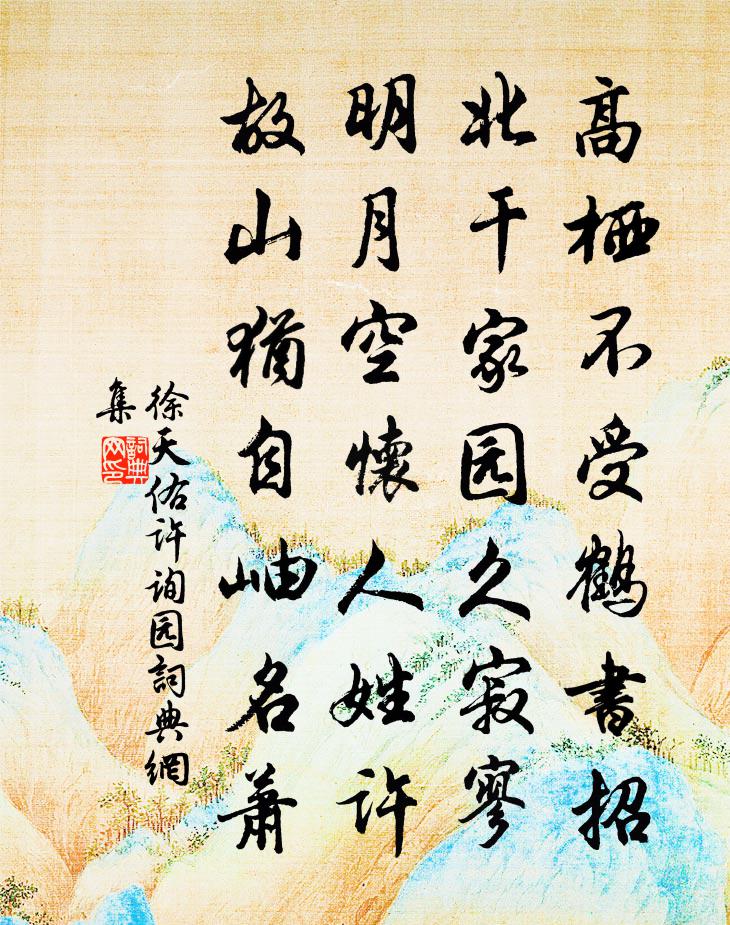 詩詞名句歷史字典書法欣賞書法字典國語詞典說文解字康熙字典古漢語字典標 題 作 者 詩 句 許詢園作者:徐天佑 朝代:宋代許詢園原文高棲不受鶴書招,北幹家園久寂寥。明月空懷人姓許,故山猶自岫名蕭。詩詞問答問:許詢園的作者是誰?答:徐天佑問:許詢園寫於哪個朝代?答:宋代徐天佑許詢園書法欣賞許詢園書法作品詩詞推薦眼兒媚周密〔宋代〕飛絲半濕惹歸雲。愁里又聞鶯。淡月鞦韆,落花庭院,幾度黃昏。十年一夢揚州路,空有少年心。不分不曉,懨懨題越王樓寄獻中丞使君劉暌〔唐代〕朱軒迥壓碧煙州,昔歲賢王是勝游。山簇劍峰朝闕遠,水如巴字繞城流。人間物象分千里,天上笙歌醉五侯。今日次韻東坡上元扈從三絕秦觀〔宋代〕端門魏闕郁崢嶸,燈火成山輦路平。不待上林鶯百囀,教坊先已進新聲。夜夢從數客雨中載酒出遊山川城闕極雄麗雲長陸游〔宋代〕有酒不謀州,能詩自勝侯。但須繩系日,安用地埋憂。射雉侵星出,看花秉燭游。殘春杜陵雨,不恨濕貂裘。賀梁溪李先生陪右府鄧肅〔宋代〕虜兵震地喧鼙鼓,黑幟插城遍樓櫓。蔽空戈甲來如雲,群盜相隨劇豺虎。胡塵漠漠四壁昏,諸將變名竄軍伍。十萬觀白鷺洲風濤劉過〔宋代〕一聲雷鼓兵風威,頃刻沖濤沒釣磯。行客駭看銀漢落,陽侯驚起玉山飛。蛟龍便爾爭先化,鷗路荒然失所依。安得戊申年七夕五絕楊億〔宋代〕明河左界鵲南飛,漢苑高樓正曝衣。一夕匆匆停弄杼,誰將錦石暫支機。南峰寺勸農曾豐〔宋代〕隊吏衙官出勸農,前驅亭午駐南峰。香烘貯霧含雲鼻,茶盪吞江綱漢胸。柳自放慵乘困思,花相學醉弄嬌容。老人霽後貽馬十二巽儲光羲〔唐代〕高天風雨散,清氣在園林。況我夜初靜,當軒鳴綠琴。雲開北堂月,庭滿南山陰。不見長裾者,空歌遊子吟。次張伯信韻題吳園畫軸蔡戡〔宋代〕誰把吳園較輞川,畫圖猶復想當年。要知故國非喬木,文採風流尚宛然。楚王張耒〔宋代〕十二巫山聳翠巒,楚王宮殿玉漓岏。定知為雨為雲處,不似當初夢裡看。句聶崇義〔宋代〕勿笑有三耳,全勝畜二心。與陳宰許月卿〔宋代〕到處逢人說大蘇,一門兄弟古今無。吹塤林五黟山馬,鼓瑟陳雙婺水鳧。定分有殊自鵬鷃,閒情無限盡龍豬。歸來次韻仇仁近用韻見示五首方回〔宋代〕久已休官臥紫陽,故園稍復葺荒涼。雖無廈屋千間廣,尚有書檠二尺長。清賞五更花過雨,珍烹十月菜經霜。客游點絳唇(題畫)劉辰翁〔宋代〕EC64指春寒,隴禽一片飛來雪。無言可說。暗啄相思結。隻影年深,也作關山別。翻成拙。落花時節。倩子規東郡懷古二首王京兆李德裕〔唐代〕河水昔將決,衝波溢川潯。崢嶸金堤下,噴薄風雷音。投馬災未弭,為魚嘆方深。惟公執珪璧,誓與身俱沉。誠信已亥雜詩 167龔自珍〔清代〕曩向真州訂古文,飛龍滂熹折紛紜。經生家法從來異,拓本模糊且餉君。王若夫謂水晶蒲萄本出其家求詩吳芾〔宋代〕君家蒲萄天下奇,奴視百果何其卑。種成滿架日蕃衍,清似水晶甘若飴。八月江南風日美,正是人家酒熟時。盤中遣興七首李流謙〔宋代〕倦倚枯株坐,起尋微逕行。魚為鑿壞遁,蟬作採薇清。彈指四時足,閉關群動平。盡言殊未可,日用本分明。惜奴嬌王之道〔宋代〕不D8CB知名,怎奈向、前緣注定。一封書、便成媒娉。千里相從,恰似尋盟合姓。泥濘。尚隔個、轎兒難近。名句推薦橫眉冷對千夫指,俯首甘為孺子牛。魯迅《自嘲》 語之所貴者意也,意有所隨。意之所隨者,不可言傳也。莊子《莊子·外篇·天道》 好雨知時節,當春乃發生。杜甫《春夜喜雨》 歌沉玉樹,古寺空有疏鍾發。李綱《六么令·次韻和賀方回金陵懷古鄱陽席上作》 務本節用財無極。荀子《荀子·成相》 亂碧萋萋,雨後江天曉。梅堯臣《蘇幕遮·草》 怒髮衝冠,憑欄處、瀟瀟雨歇。岳飛《滿江紅·寫懷》 君子之於子,愛之而勿面,使之而勿視,道之以道而勿強。荀子《荀子·大略》 有福傷財,無福傷己。佚名《增廣賢文·上集》 教亦多術矣,予不屑之教誨也者,是亦教誨之而已矣。孟子《孟子·告子章句下·第十六節》