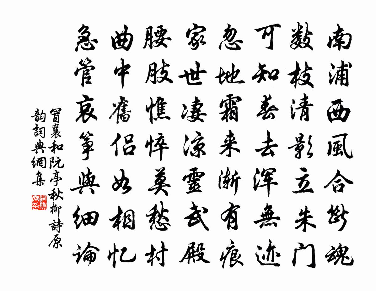 詩詞名句歷史字典書法欣賞書法字典國語詞典說文解字康熙字典古漢語字典標 題 作 者 詩 句 和阮亭《秋柳》詩原韻作者:冒襄 朝代:清代和阮亭《秋柳》詩原韻原文南浦西風合斷魂,數枝清影立朱門。可知春去渾無跡,忽地霜來漸有痕。家世淒涼靈武殿,腰肢憔悴莫愁村。曲中舊侶如相憶,急管哀箏與細論。詩詞問答問:和阮亭《秋柳》詩原韻的作者是誰?答:冒襄問:和阮亭《秋柳》詩原韻寫於哪個朝代?答:清代問:和阮亭《秋柳》詩原韻是什麼體裁?答:七律冒襄和阮亭《秋柳》詩原韻書法欣賞和阮亭《秋柳》詩原韻書法作品詩詞推薦城上初作新亭猶未名也邦人哄然稱為三槐殊不吳芾〔宋代〕我心只是憶天台,欲去無從首重回。若得此時追五柳,絕勝他日面三槐。年年白髮催人老,夜夜青山入夢來。縱有贈沈博士歌歐陽修〔宋代〕沈夫子,胡為醉翁吟,醉翁豈能知爾琴。滁山高絕滁水深,空岩悲風夜吹林。山溜白玉懸青岑,一瀉萬仞源莫尋。廖子晦以通書及龜山道鄉晦庵帖見惠曹彥約〔宋代〕文公垂憲墨淋浪,鼎立龜山更道鄉。家有一焉猶冠絕,寶茲三者見珍藏。來從疊嶂層巒里。置在光風霽月傍。收拾送趙右秋二首華岳〔宋代〕閩藩齊指右參軍,玉骨清無半點塵。一味恤刑常召禍,十年遊宦只憂貧。圜扉月照金波夜,寒谷花開玉樹春。客子飲通幽園趙汝鐩〔宋代〕典卻身上鷫鸘裘,買酒領客尋清游。欲洗胸襟塵萬斛,快上青雲展秋眸。晴沙翳天風動地,挈壺卷席移通幽。一沼宴桃源(與孫祖恭求蘼酴)周紫芝〔宋代〕舊日荼酴時候。酒涴粉香襟袖。老去惜春心,試問孫郎知否。花瘦。花瘦。剪取一枝重嗅。詩九首托南劍劉教尋亦周墓焚之趙文〔宋代〕刺血題詩寄阿儂,斷腸五十五衰翁。此詩到是衰翁到,此血由來與汝同。籬落間見凌霄偶書趙蕃〔宋代〕凌霄何自名,緣木與俱生。底事因蓬附,故為亦蔓榮。選上人素履精修仆先識於崇信岑寂之時重來見曹勛〔宋代〕我初游赤城,松竹空函丈。師時奉諸佛,略不乏供養。茲游再見之,談笑益夷曠。橫披慰老眼, * 煎夜餉。不以濫竽充數韓非〔先秦〕齊宣王使人吹竽,必三百人。南郭處士請為王吹竽,宣王說之,廩食以數百人。宣王死,湣王立,好一一聽之,處閨思施樞〔宋代〕簾底臨鸞惜歲華,鬢雲慵掠寶釵斜。落梅香斷無訊息,一樹春風屬杏花。對梅張道洽〔宋代〕數點枝頭黏白玉,一年春意動黃鐘。為渠拚受風流罪,只恐風流不到儂。觀武侯陣圖魯訔〔宋代〕西川漢鼎倚綸巾,翠石累累作陣新。一夜掃雲驚虎旅,九天飛雨泣龍鱗。當年已落中原膽,今日猶憐故國身。曾踏贈庵僧陳松龍〔宋代〕獨羨為僧者,塵緣不到門。採薪松落子,移徑竹生孫。古井汲雲氣,寒山招月魂。猶憐生死海,應□出前村。狼山崔敦禮〔宋代〕日日懷歸今得歸,舊時風物未全非。江邊鷗鳥應相笑,底事塵埃滿客衣。界石守風,望天竺、靈隱二寺皎然〔唐代〕山頂東西寺,江中旦暮潮。歸心不可到,松路在青霄。春夕遣懷劉兼〔唐代〕窮通分定莫淒涼,且放歡情入醉鄉。范蠡扁舟終去相,馮唐半世只為郎。風飄玉笛梅初落,酒泛金樽月未央。休把相和歌辭野田黃雀行僧貫休〔唐代〕高樹風多,吹爾巢落。深蒿葉暖,宜爾依薄。莫近鴟類,珠網亦惡。飲野田之清水,食野田之黃粟。深花中睡,土逍遙詠宋太宗〔宋代〕奧義通玄化,精微妙入神,功程隨志願,貶降背於真。靜默堪為法,無言事可親。次韻晁元忠西歸十首黃庭堅〔宋代〕我田失耕耘,歲暮拾枯萁。枯萁不可食,日晏抱長飢。猛虎依山林,眼有百步威。一從梁鴦食,風月何時歸。名句推薦胭脂淚,相留醉,幾時重。李煜《相見歡·林花謝了春紅》 故國神遊,多情應笑我,早生華髮。蘇軾《念奴嬌·赤壁懷古》 夫孝者,善繼人之志,善述人之事者也。子思《中庸·第十九章》 踏破鐵鞋無覓處,得來全不費工夫。馮夢龍《醒世恆言·卷十三》 福輕乎羽,莫之知載;禍重乎地,莫之知避。莊子《莊子·內篇·人間世》 朝來入庭樹,孤客最先聞。劉禹錫《秋風引》 細雨春蕪上林苑,頹垣夜月洛陽宮。陸游《書憤五首·其二》 君知否,是山西將種,曾系詩盟。劉過《沁園春·張路分秋閱》 志之難也,不在勝人,在自勝。韓非及後人《韓非子·喻老》 家山何在,雪後園林,水邊樓閣。辛棄疾《瑞鶴仙·賦梅》