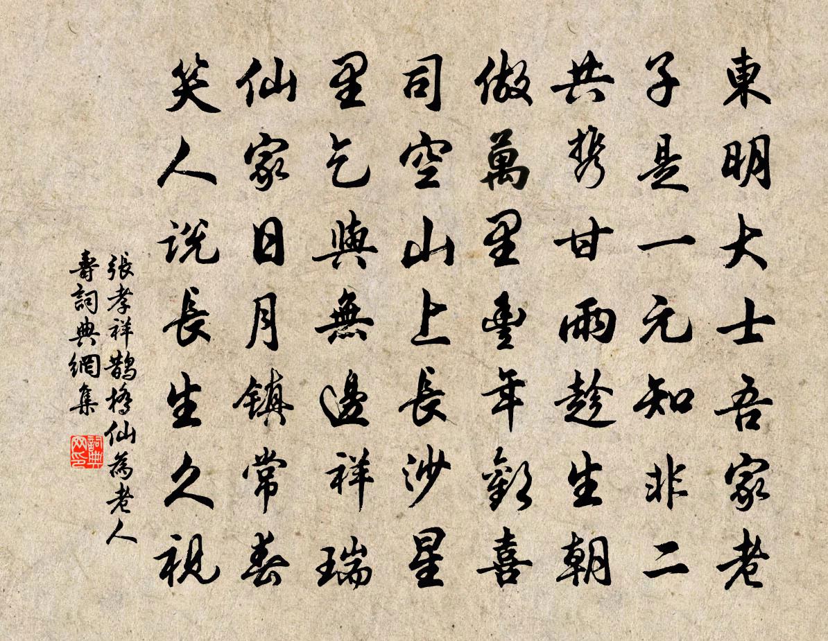 東明大士,吾家老子,是一元知非二。共攜甘雨趁生朝,做萬里、豐年歡喜。