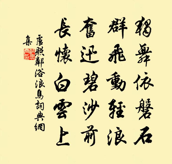 獨舞依磐石,群飛動輕浪。奮迅碧沙前,長懷白雲上。