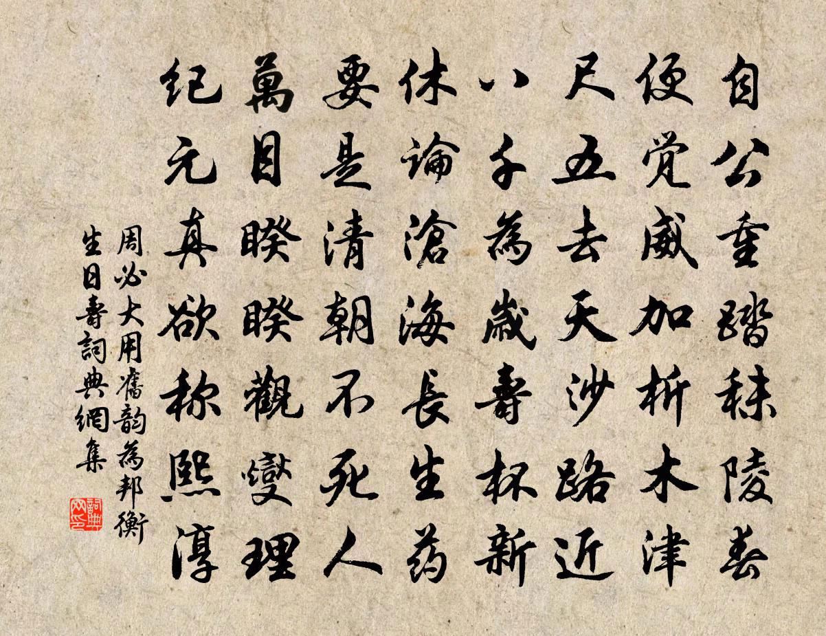詩詞名句歷史字典書法欣賞書法字典國語詞典說文解字康熙字典古漢語字典標 題 作 者 詩 句 用舊韻為邦衡生日壽作者:周必大 朝代:宋代用舊韻為邦衡生日壽原文自公重踏秣陵春,便覺威加析木津。尺五去天沙路近,八千為歲壽杯新。休論滄海長生藥,要是清朝不死人。萬目睽睽觀燮理,紀1-1元真欲稱熙淳。詩詞問答問:用舊韻為邦衡生日壽的作者是誰?答:周必大問:用舊韻為邦衡生日壽寫於哪個朝代?答:宋代周必大用舊韻為邦衡生日壽書法欣賞用舊韻為邦衡生日壽書法作品詩詞推薦句釋子耶〔宋代〕松欺胝雪千年古,竹掃溪風六月寒。泊洞庭虛中〔唐代〕槐柳未知秋,依依館驛頭。客心俱念遠,時雨自相留。浪沒貨魚市,帆高賣酒樓。夜來思展轉,故里在南州。續長恨歌范成大〔宋代〕紫薇金屋閉春陽,石竹山花卻自芳。莫道故情無覓處,領巾猶有隔生香。憶秦娥顏奎〔宋代〕水雲幽。怕黃霜竹生新愁。生新愁。如今何處,倚月明樓。龍吟杳杳天悠悠。騰蛟起舞鳴箜篌。鳴箜篌。聽吹短氣次韻子瞻記歲莫鄉俗三首其一饋歲蘇轍〔宋代〕周公制鄉禮,無有相通佐。鼎肉送子思,烝豚出陽貨。交親隨高低,豈問小與大。自從此禮衰,伏臘有飢臥。鄉人採桑子沈端節〔宋代〕昔年曾記尋芳處,短帽沖寒。竹外江乾。玉麵皮兒月下觀。而今老大風流減,百事心闌。谷底林間。坐對橫枝祗鼻書事十絕曾惇〔宋代〕淮上州州盡滅烽,今年方喜得知戎。問誰整頓乾坤了,學語兒童道相公。偈頌一百零四首釋紹曇〔宋代〕萬本青松,後人標榜。臨濟兒孫,當機不讓。千古清涼樹蔭人,法門梁棟真堪賞。詠夾徑菊薛能〔唐代〕夾徑盡黃英,不通人並行。幾曾相對綻,元自兩行生。叢比高低等,香連左右並。畔搖風勢斷,中夾日華明。間隔游當塗潘閬〔宋代〕扁舟不復見袁宏,故壘猶連謝尚城。騎鯨仙子千年恨,化石佳人萬古情。牛渚磯前浪如屋,區區名利與生輕。送宮人入道項斯〔唐代〕願隨仙女董雙成,王母前頭作伴行。初戴玉冠多誤拜,欲辭金殿別稱名。將敲碧落新齋磬,卻進昭陽舊賜箏。旦暮舟行即事夏竦〔宋代〕微陽下江樹,秋葉泛殘紅,雁背寒塘雨,帆爭晚渡風。寺橋人倒影,漁徑菊分叢。正是承平日,輕艘萬派通。古意宋祁〔宋代〕持鷸蚌謀壯,貪蟬鵲意深。漁人一拱手,彈者笑依林。鎖宿余半月得讀書喜而有賦程公許〔宋代〕日月疾跳丸,簡篇浩煙海。弓旌誤誘去,歡息可中悔。依韻和酬雷太簡見貽之什黃庶〔宋代〕生長詩與書,不信世道難。出處愧古人,章句得一官。舌強不肯柔,開口誰欣歡。十年走塵土,蹭蹬苦地寒。紆朱浣溪沙史浩〔宋代〕索得玄珠也是呆。人人有分莫胡猜。頂門一眼鎮長開。路斷玉關無轍跡,雪埋蔥嶺沒根栽。始稱達摩不曾來。好事近趙可〔元代〕密雪聽窗知,午醉晚來初覺。人與膽瓶梅蕊,共此時蕭索。倚窗閒看六花飛,風輕止還作。個裡有詩誰會,滿疏籬醉後憶山中故人(一作故人山中)王建〔唐代〕花開草復秋,雲水自悠悠。因醉暫無事,在山難免愁。遇晴須看月,斗健且登樓。暗想山中伴,如今盡白頭。蝶戀花(長沙送同官先歸邵武)呂勝己〔宋代〕屈指瓜期猶渺渺。羨子征鞍,去上長安道。到得故園春正好。桃腮杏臉迎門笑。聞道難兄登顯要。雁子云宵,花萼好事近呂勝己〔宋代〕宿面淺勻妝,梅粉旋生春色。繡草冠兒宮樣,系丁香新纈。鳳檀槽上四條弦,輕□□□攧。恰似尋陽江畔,話長安名句推薦風水人間不可無,也須陰騭兩相扶。馮夢龍《醒世恆言·卷一》 宣和舊日,臨安南渡,芳景猶自如故。劉辰翁《永遇樂·璧月初晴》 八月秋高風怒號,卷我屋上三重茅。杜甫《茅屋為秋風所破歌》 欲知卻老延齡藥,百草摧時始起花。蘇軾《趙昌寒菊》 唯君子為能通天下之志。佚名《易傳·彖傳上·同人》 言之易,行之難呂不韋《呂氏春秋·論·不苟論》 曉鏡但愁雲鬢改,夜吟應覺月光寒。李商隱《無題·相見時難別亦難》 江上往來人,但愛鱸魚美范仲淹《江上漁者》 大丈夫生於亂世,當帶三尺劍立不世之功;今所志未遂,奈何死乎!羅貫中《三國演義·第五十三回》 天相漢,民懷國。史達祖《滿江紅·九月二十一日出京懷古》