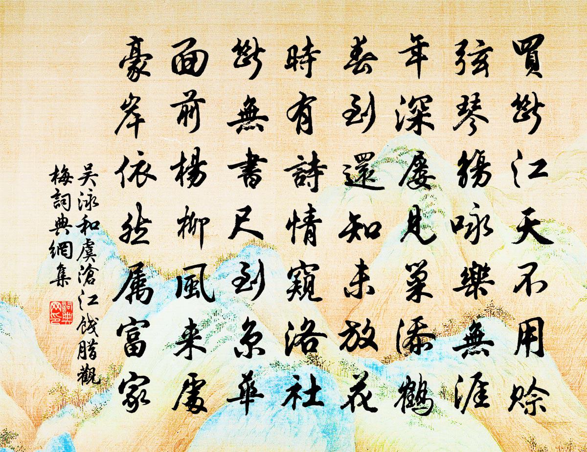 詩詞名句歷史字典書法欣賞書法字典國語詞典說文解字康熙字典古漢語字典標 題 作 者 詩 句 和虞滄江餞臘觀梅作者:吳泳 朝代:宋代和虞滄江餞臘觀梅原文買斷江天不用賒,弦琴觴詠樂無涯。年深屢見巢添鶴,春到還知未放花。時有詩情窺洛社,斷無書尺到京華。面前楊柳風來處,豪岸依然屬富家。詩詞問答問:和虞滄江餞臘觀梅的作者是誰?答:吳泳問:和虞滄江餞臘觀梅寫於哪個朝代?答:宋代吳泳和虞滄江餞臘觀梅書法欣賞和虞滄江餞臘觀梅書法作品詩詞推薦郡齋秋夕張詠〔宋代〕久負嵩雲約,年來半白頭。風驚落葉夕,雨滴戍城秋。調古將誰合,心狂謾自愁。遲回不能寐,重起憑危樓。觀化十五首黃庭堅〔宋代〕山迴路轉水深深,欲問津頭谷鳥吟。隔岸野花隨意發,小蹊猶憶去年尋。挽俞克晦丈二首趙蕃〔宋代〕好官堪底用,厚祿竟如何。詩可傳家集,名能繼世科。流風親黨競,餘慶子孫多。挽送歸無策,淒涼謾擬歌。思歸示子聿陸游〔宋代〕平生愛山水,游陟老不厭。此外惟讀書,垂死尚關念。方昔少壯時,萬里攜一劍。自從還故山,日夜就收歛。蒙恩夜行船吳文英〔宋代〕逗曉闌乾沾露水。歸期杳、畫檐鵲喜。粉汗餘香,傷秋中酒,月落桂花影里。屏曲巫山和夢倚。行雲重、夢飛不起宮詞宋白〔宋代〕蠶館春晴陰綠桑,親蠶天氣日初長。九嬪參酌前朝禮,須戴金釵十二行。畫堂春(春日)趙鼎〔宋代〕空籠簾影隔垂楊。夢回芳草池塘。杏花枝上蝶雙雙。春晝初長。強理雲鬟臨照,暗彈粉淚沾裳。自憐容艷惜流光。題姑蘇南道者庵陳造〔宋代〕城南路長勤往返,迎送何由貸吾懶。向來紅葉撲吟抱,重到綠秧圍望眼。有人閱世風前蓬,年年客我此庵中。問津招隱二首陳傅良〔宋代〕將子無登山,山上岡復岡。朝為朱陽煒,暮作陰飈涼。磴滑幽鳥啼,林深山鬼翔。子兮何所求,樂此魑魅鄉。國人昭長老請贊釋法薰〔宋代〕全無孔竅,指桑罵柳。瞎衲僧正眼,破東山暗號。三點前,三點後。起模畫樣已無端,一任傍人論好醜。西江月張伯端〔宋代〕天地才經否泰,朝昏好識屯蒙。輻來輳轂水朝宗。妙在抽添運用。得一萬般皆畢,休分南北西東。損之又損慎前功歸字謠袁去華〔宋代〕歸。目斷吾廬小翠微。斜陽外,白鳥傍山飛。題善住閣釋道璨〔宋代〕閣前溪水聲潺湲,閣後山色空巑屼。取之不得捨不得,善住道人如是觀。浩蕩春風滿天地,飛絮遊絲無定處。去無夢芙蓉(趙昌芙容圖,梅津所藏)吳文英〔宋代〕西風搖步綺。記長堤驟過,紫騮十里。斷橋南岸,人在晚霞外。錦溫花共醉。當時曾共秋被。自別霓裳,應紅銷翠頌古十首釋普岩〔宋代〕洗腸換骨老芭蕉,拄杖牛來價轉高。賣與買人人不買,翻令平地起波濤。謁金門(送林子長同年起官宣城)丘崈〔宋代〕風又雨。吹面落花紅舞。把酒不禁春思苦。別離聞杜宇。疊嶂樓頭佳處。猶想襞箋容與。思入雲山便好語。莫辭頻依韻和吳七丈詠雪二首強至〔宋代〕江邊玉樹渾無地,世上銀河自有橋。宿凍即交山口路,冷波應減海門潮。當年右席辭空在,今日扁舟興轉遙。寬褐淮南臥病感路群侍御訪別鮑溶〔唐代〕西台御史重難言,落木疏籬繞病魂。一望青雲感驄馬,款行黃草出柴門。安鄉縣西晚泊范成大〔宋代〕水闊鳥烏倦,墟寒童僕飢。一灣村縣過,百折暮江遲。曉夢孤燈見,春陰病骨知。簡書寧不畏,旅力奈先疲。游武昌東湖袁說友〔宋代〕只說西湖在帝都,武昌新又說東湖。一圍煙浪六十里,幾隊寒鷗千百雛。野木迢迢遮去雁,漁舟點點映飛烏。如何名句推薦春秋代序,陰陽慘舒,物色之動,心亦搖焉。劉勰《文心雕龍·物色》 曾與美人橋上別,恨無訊息到今朝。劉禹錫《楊柳枝 / 柳枝詞》 一夜相思,水邊清淺橫枝瘦。陳亮《點絳唇·詠梅月》 砌下落花風起,羅衣特地春寒。馮延巳《清平樂·雨晴煙晚》 綠雲擾擾,梳曉鬟也;杜牧《阿房宮賦》 燕子歸來,雕梁何處,底事呢喃語。王瀾《念奴嬌·避地溢江書於新亭》 行賢而去自賢之心,焉往而不美。韓非及後人《韓非子·說林上》 西風烈,長空雁叫霜晨月。 * 《憶秦娥·婁山關》 料峭春風吹酒醒,微冷,山頭斜照卻相迎。蘇軾《定風波·三月七日》 不寶金玉,而忠信以為寶戴聖《禮記·儒行》