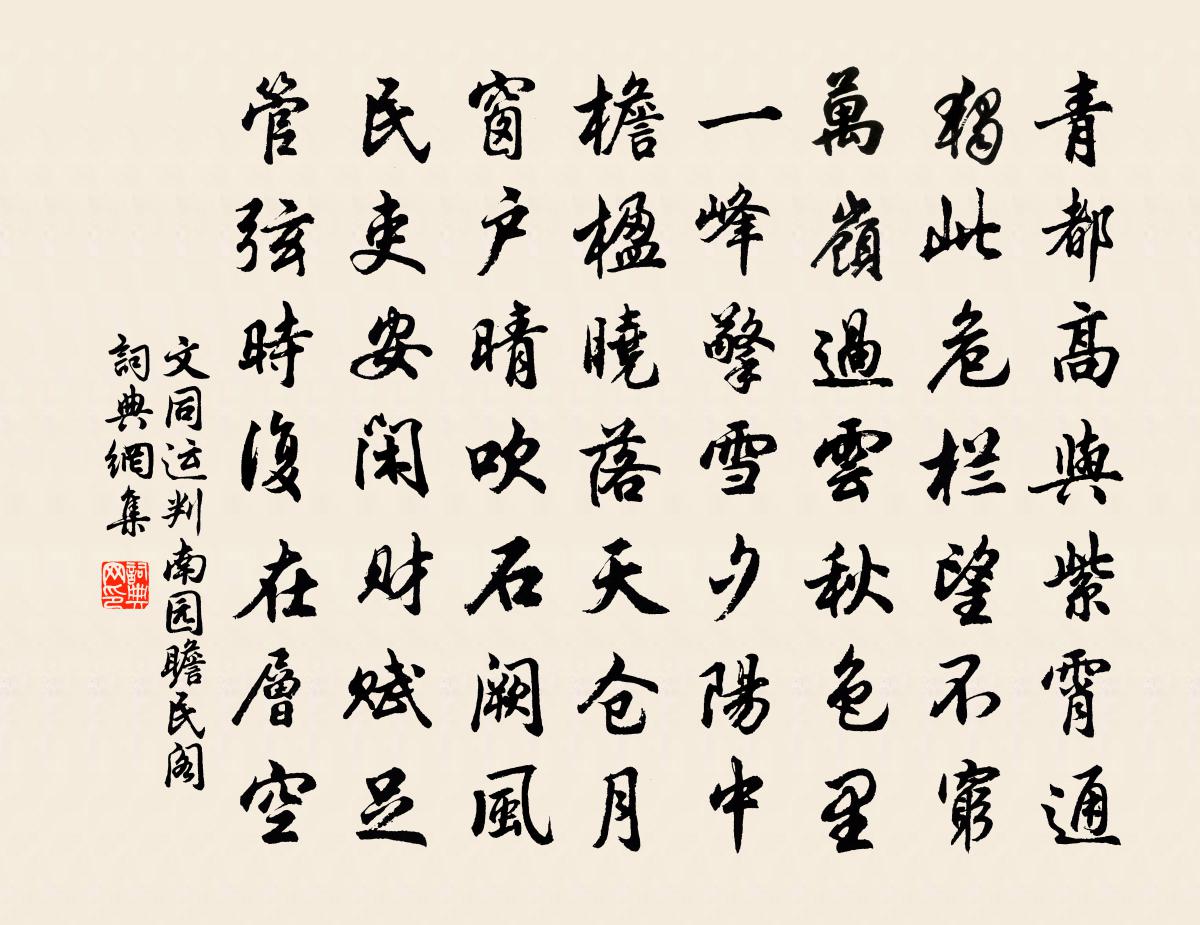 詩詞名句歷史字典書法欣賞書法字典國語詞典說文解字康熙字典古漢語字典標 題 作 者 詩 句 運判南園瞻民閣作者:文同 朝代:宋代運判南園瞻民閣原文青都高與紫霄通,獨此危欄望不窮。萬嶺過雲秋色里,一峰擎雪夕陽中。檐楹曉落天倉月,窗戶晴吹石闕風。民吏安閒財賦足,管弦時復在層空。詩詞問答問:運判南園瞻民閣的作者是誰?答:文同問:運判南園瞻民閣寫於哪個朝代?答:宋代文同運判南園瞻民閣書法欣賞運判南園瞻民閣書法作品詩詞推薦臘梅張嵲〔宋代〕朔風吹同雲,萬木不敢芳。黃衣何許仙,窈窕未離房。終期賞心會,未恨冰雪鄉。向來脂粉流,睨睥誰敢當。宜於酬盧汀諫議姚合〔唐代〕粟如流水帛如山,依念倉邊語笑間。篇什縱橫文案少,親朋撩亂吏人閒。杯觴引滿從衣濕,牆壁書多任手頑。遙賀春日田園雜興草堂後人〔宋代〕桑眼已開芳盡長,西疇東墅足相羊。麥風初暖燕爭疊,林雨忽晴蛙滿塘。野老新衣逢社喜,山妻椎髻為簪忙。紛紛西江月晏幾道〔宋代〕南苑垂鞭路冷,西樓把袂人稀。庭花猶有鬢邊枝,且插殘紅自醉。畫幕涼催燕去,香屏曉放雲歸。依前青枕夢回時教授有詩再次韻陳造〔宋代〕人間望晴雨,長若物所隔。虧成間十五,嘉穀信多厄。假手方寸丹,誠與爐煙升。風伯齟齬之,不容徹九清。玄雲寄題王晉輔專春堂陸游〔宋代〕三月風光不貸人,千紅百紫已成塵。牡丹底事開偏晚,本自無心獨占春。無悶 雨夜朱彝尊〔清代〕密雨垂絲,細細晚風,約盡浮萍池水。乍一霎黃昏,小門深閉。作弄新涼天氣。怕早有井梧飄階砌。正楚筠,簟冷鐘山番人窟曾極〔宋代〕千群鐵騎遠來侵,鑿穴鐘山用意深。天塹連空遮不斷,煙塵直到海中心。昨夜釋文珦〔宋代〕昨夜三更風作惡,墮林橡栗如飛雹。山童清曉問禪翁,翁在定中都不覺。荻塘西莊贈房元垂張光朝〔唐代〕門在荻塘西,塘高何聯聯。往昔分地利,遠近無閒田。水國信污下,霖霪即成川。苗稼盡淹沒,茲鄉獨豐年。家肥答山侶白居易〔唐代〕頷下髭鬚半是絲,光陰向後幾多時?非無解掛簪纓意,未有支持伏臘資。冒熱沖寒徒自取,隨行逐隊欲何為?更慚春日書事張耒〔宋代〕禪宮門寂寂,庭草無行跡。東風自掃階,疑是開簾客。端居感懷韋應物〔唐代〕沈沈積素抱,婉婉屬之子。永日獨無言,忽驚振衣起。方如在幃室,復悟永終已。稚子傷恩絕,盛時若流水。暄涼徂徠山齋熟寢家童報征西府從事田集賢張著作石介〔宋代〕滿徑蓬蒿懶自鋤,何人日午叩茅廬。徂徠山下一枕睡,經略府中三紙書。兵謀貴勝縱橫出,海鳥忘機飲啄餘。唯有題陳德秀畫四季枕屏圖五首潘大臨〔宋代〕茅瞻竹閣枕回溪,柳外平橋拍水低。在藻白魚知鷺下,穿林黃雀覺蟬嘶。野夕答孫郎折詩何遜〔南北朝〕山中氣色滿。墟上生煙露。杳杳星出雲。啾啾雀隱樹。虛館無賓客。幽居乏歡趣。思君意不窮。長如流水注。題宓庵壁王洋〔宋代〕西風吹徹菊花黃,喚我東籬泛一觴。白髮插花休笑我,年年汝亦負重陽。浮岡高似孫〔宋代〕山含宿凍未曾銷,鳥去仍回水路遙。千樹梅花三尺雪,一帆風力半江潮。城南雜詠二十首麗澤張栻〔宋代〕長喔伐木篇,佇立以望子。日暮飛鳥歸,門前長春水。題汪季路家藏吳彩鸞唐韻後樓鑰〔宋代〕舊說仙人吳彩鸞,日書切韻歸毫端。不應神速有如此,令人至今疑稗官。相傳此事三百載,誰知真跡儼然在。筆精名句推薦為問花何在,夜來風雨,葬楚宮傾國。周邦彥《六醜·落花》 何當痛飲黃龍府,高築神州風雨樓李大釗《口占一絕(壯別天涯未許愁)》 照野瀰瀰淺浪,橫空隱隱層霄。蘇軾《西江月·頃在黃州》 群芳過後西湖好,狼籍殘紅。歐陽修《採桑子·群芳過後西湖好》 書中自有黃金屋,書中自有顏如玉趙恆《勸學詩》 青山如黛遠村東,嫩綠長溪柳絮風。高珩《春日雜詠》 相看兩不厭,只有敬亭山。李白《獨坐敬亭山》 念去來、歲月如流,徘徊久、嘆息愁思盈。周邦彥《綺寮怨·上馬人扶殘醉》 想見廣寒宮殿,正雲梳風掠。辛棄疾《好事近·中秋席上和王路鈐》 樹繞村莊,水滿陂塘。秦觀《行香子·樹繞村莊》