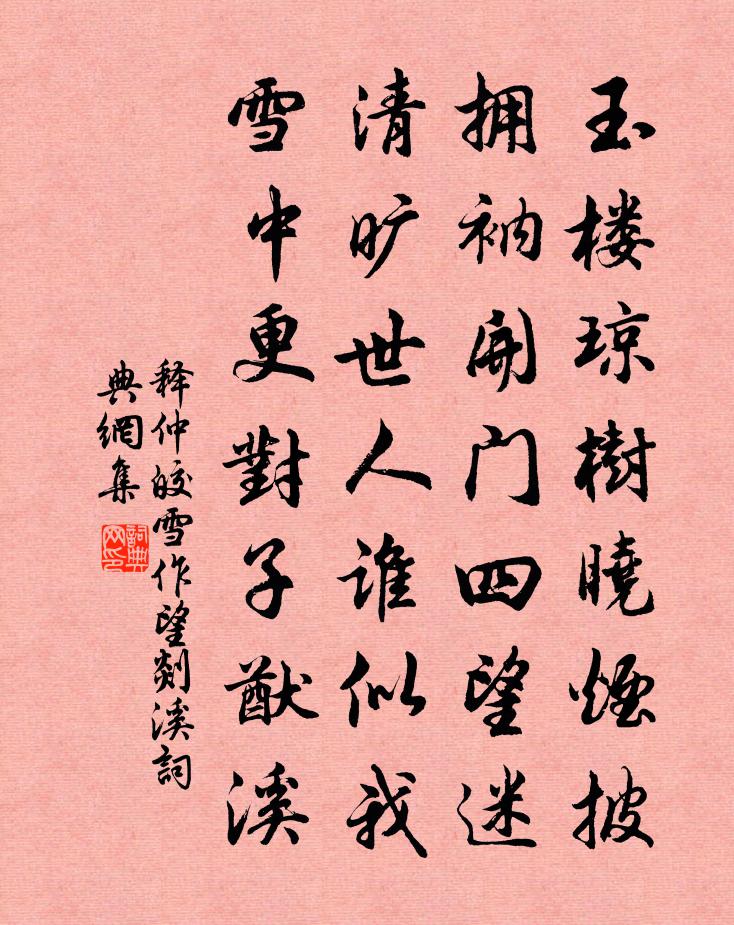 詩詞名句歷史字典書法欣賞書法字典國語詞典說文解字康熙字典古漢語字典標 題 作 者 詩 句 雪作望剡溪作者:釋仲皎 朝代:宋代雪作望剡溪原文玉樓瓊樹曉煙披,擁衲開門四望迷。清曠世人誰似我,雪中更對子猷溪。詩詞問答問:雪作望剡溪的作者是誰?答:釋仲皎問:雪作望剡溪寫於哪個朝代?答:宋代釋仲皎雪作望剡溪書法欣賞雪作望剡溪書法作品詩詞推薦長句贈弟邦達主簿姜特立〔宋代〕有弟辭我去,明日隔風煙。茭青嶺頭雲,憶別二十年。上有古峰巒,下有深澗川。我昔去家時,過此涕淚漣。汝今惜奴嬌王之道〔宋代〕甚麽因緣,恰得一年相聚。和閏月、更無剩數。說著分飛,背面偷彈玉箸。好去。記取許時言語。舊愛新人,後夜訪顏氏讀書岩呂願中〔宋代〕洞口微雲恣卷舒,石岩相對一蘧廬。賦才晉宋多夷曠,好景古今難貯儲。茗碗已驚浮雪浪,齋廚俄聽響鯨魚。子云小重山(家人生日)毛滂〔宋代〕鶴舞青青雪裡松。冰開龜在藻,綠蒙茸。一成不記蕊珠宮。蟠桃熟,應待幾東風。玉酒紫金鍾。非煙羅幕暖,寶熏讀書三首陳杰〔宋代〕汝以為多學,吾猶及闕文。憂端已秦誓,糟粕尚三墳。何事吟邵雍〔宋代〕何事教人用意深,出塵些子索沉吟。施為欲似千鈞駑,磨礪當如百鍊金。釣水誤持生殺柄,著棋閒動戰爭心。一杯朝中措(五月菊)朱翌〔宋代〕玉台金盞對炎光。全似去年香。有意莊嚴端午,不應忘卻重陽。菖蒲九葉,金英滿把,同泛瑤觴。舊日東籬陶令,憶母陳藻〔宋代〕上綴珠璣為屋蓋,旁堆翡翠作屏風。醉翁不見身貧賤,臥向涼飈清露中。送晝公聯句皎然〔唐代〕相逢情不厭,惜別意難為。 ——韓章吾道應無住,前期未可知。 ——皎然輕霜凋古木,寒水縮荒陂。 ——韓得天經書問宋庠〔宋代〕久臥堪憂巷,驚聞不滅書。高風五柳外,深意八行餘。努力邀加飯,相逢約下車。殷勤長跪讀,雙睫費漣如。純陽會白玉蟾〔宋代〕一點薰風舞綠槐,祝融袞火從南來。海棠落地蜂蝶去,池館無人蓮未開。溶溶一掬清和髓,純乾已作牝馬矣。岳瀆定風波·兩兩輕紅半暈腮蘇軾〔宋代〕十月九日,孟亨之置酒秋香亭。有雙拒霜,獨向君猷而開,坐客喜笑,以為非使君莫可當此花,故作是篇。兩兩輕洛下寓懷薛能〔唐代〕胡為遭遇孰為官,朝野君親各自歡。敢向官途爭虎首,尚嫌身累愛豬肝。冰霜谷口晨樵遠,星火爐邊夜坐寒。唯有扇子詩李石〔宋代〕一介吾儒孰重輕,青天蜀道少人行。芋魁豆飯吾儒事,不若歸來谷口耕。十二時頌釋文準〔宋代〕日南午,理事相諳更相互。三門拈向燈籠頭,休問他家覓歸路。梅葉茵〔宋代〕疏影幾黃錯,明明野水濱。未風先信息,無雪更精神。一白見真色,萬紅隨後塵。自來共下飲,肺腑盡生春。湖上客舍睡起徐寶之〔宋代〕濕雲冉冉樹藏鴉,秋岸無人小艇斜。細雨入簾新睡起,晚□吹落木犀花。感昔陸游〔宋代〕三著朝冠入上都,黃封頻醉渴相如。馬慵立仗寧辭斥?蘭偶當門敢怨鋤?富貴尚思還此笏,衰殘故合愛吾廬。燈前三月廿七日偶作簡仲鹹王禹偁〔宋代〕一未量移一轉勛,貂冠羊胃總非真。韶光只有兩三日,浮世稀逢七十人。掅杏勸君重酌酒,牡丹邀我且尋春。請看寄題丹丘梵才上人山居釋遵式〔宋代〕禪家真隱處,翠谷倚城隍。海近雲歸早,山孤鳥雲長。石當泉脈潤,風度柏枝香。此地容吾否,中霄去意狂。名句推薦莫見乎隱,莫顯乎微,故君子慎其獨也。子思《禮記·中庸》 冰泮寒塘水綠,雨余百草皆生。韋應物《三台》 臨砌影,寒香亂、凍梅藏韻。吳文英《花犯·郭希道送水仙索賦》 窗含西嶺千秋雪,門泊東吳萬里船。杜甫《絕句》 允恭克讓,光被四表,格於上下。佚名《尚書·虞書·堯典》 已見寒梅發,復聞啼鳥聲。王維《雜詩三首 / 雜詠三首》 時來天地皆同力,運去英雄不自由。羅隱《籌筆驛》 永夜角聲悲自語,客心愁破正思家。汪元量《望江南·幽州九日》 秋風吹地百草乾,華容碧影生晚寒。李賀《開愁歌》 高詞迥映,如朗月之懸光;疊意回舒,若重岩之積秀。房玄齡《晉書·列傳·第二十四章》