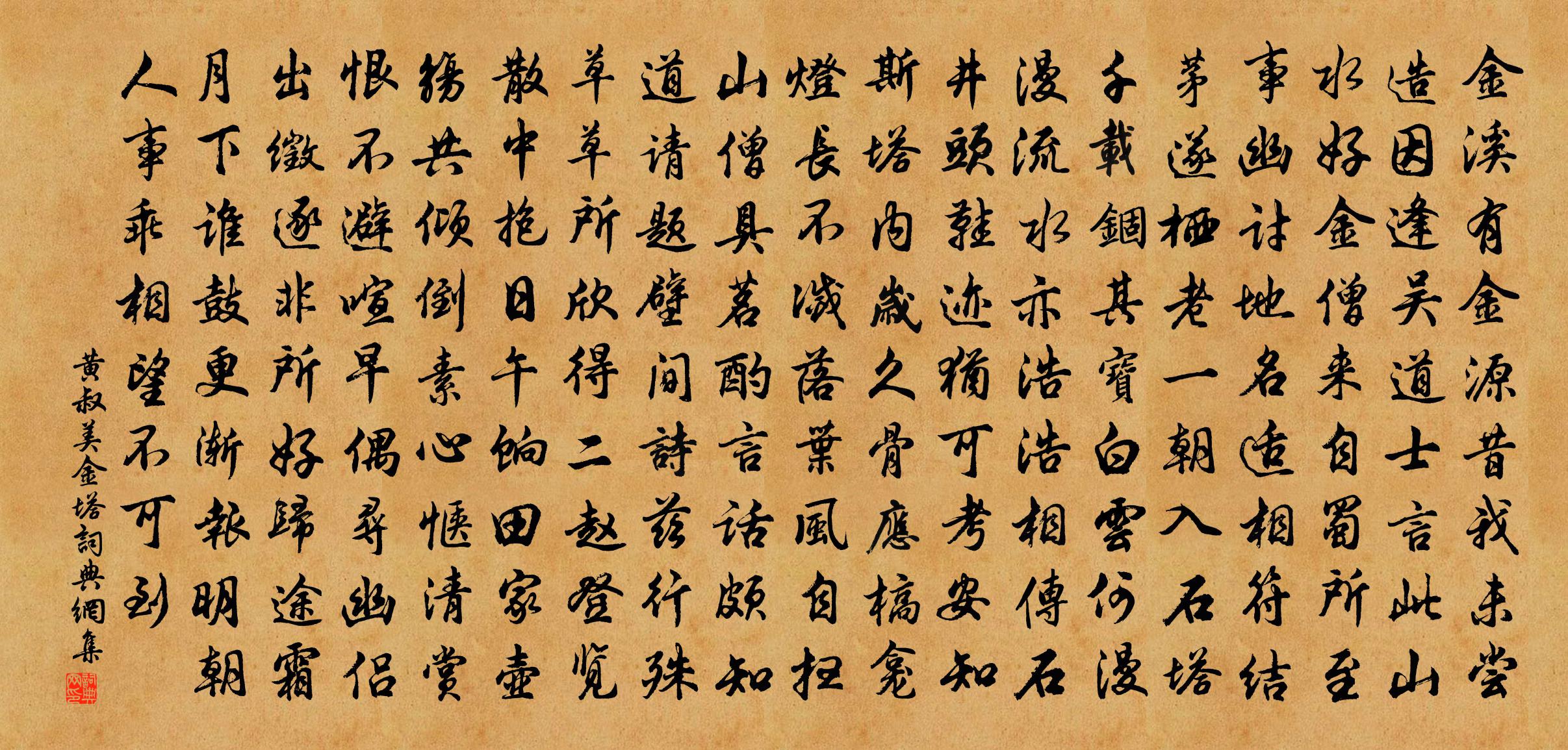 詩詞名句歷史字典書法欣賞書法字典國語詞典說文解字康熙字典古漢語字典標 題 作 者 詩 句 金塔作者:黃叔美 朝代:宋代金塔原文金溪有金源,昔我未嘗造。因逢吳道士,言此山水好。金僧來自蜀,所至事幽討。地名適相符,結茅遂棲老。一朝入石塔,千載錮其寶。白云何漫漫,流水亦浩浩。相傳石井頭,鞋跡猶可考。安知斯塔內,歲久骨應槁。龕燈長不滅,落葉風自掃。山僧具茗酌,言話頗知道。請題壁間詩,茲行殊草草。所欣得二趙,登覽散中抱。日午餉田家,壺觴共傾倒。素心愜清賞,恨不避喧早。偶尋幽侶出,徵逐非所好。歸途霜月下,誰鼓更漸報。明朝人事乖,相望不可到。詩詞問答問:金塔的作者是誰?答:黃叔美問:金塔寫於哪個朝代?答:宋代黃叔美金塔書法欣賞金塔書法作品詩詞推薦遊仙詞三十三首王鎡〔宋代〕紫雲繚繞玉城開,張許真人入奏台。大帝正答雷雨事,寶函捧出又回來。上留田行陸機〔魏晉〕嗟行人之藹藹。駿馬陟原風馳。輕舟泛川雷邁。寒往暑來相尋。零雪霏霏集宇。悲風徘徊入襟。歲華冉冉方除。我寄王振拾遺(戊辰歲)齊己〔唐代〕折檻意何如,平安信不虛。近來焚諫草,深去覓山居。□□□□□,□□□□余。分明知在處,難寄亂離書。貞懿皇后輓詞錢起〔唐代〕淑麗詩傳美,徽章禮飾哀。有恩加象服,無日祀高禖。曉月孤秋殿,寒山出夜台。通靈深眷想,青鳥獨飛來。國門東(好女兒〔四〕首)賀鑄〔宋代〕車馬匆匆。會國門東。信人間、自古銷魂處,指紅塵北道,碧波南浦,黃葉西風。堠館娟娟新月,從今夜、與誰同八聲甘州 依託何仙姑,見嗚鶴餘音卷六佚名〔宋代〕千門萬戶,盡七傾八倒,掘地尋天。真箇玄妙,返作笑胡言。無為大道人行少,向*怪途中,有萬千傷感,**卻諷留夢炎羅志仁〔宋代〕齧雪蘇郎受苦辛,庾公老作北朝臣。當年龍首黃扉者,猶是衡門一樣人。梅花喜神譜就實六枝宋伯仁〔宋代〕一竿風雨寒,獨點嚴陵瀨。苟非伸腳眠,曷見光武大。江上戴復古〔宋代〕江上維舟穩,人間行路難。數朝花雨細,一夜社風寒。燕語能留客,蛙鳴豈為官。苦吟成底事,贏得瘦團欒。和木犀虞儔〔宋代〕岩桂無人也自芳,月宮仙子道家妝。露溥仙掌三秋色,風動枝頭十里香。先世栽培雖地僻,近年卜築發天藏。後堂謁金門袁去華〔宋代〕煙水闊。夜久風生苹末。東舫西船人語絕。四更山吐月。客里光陰電抹。不記離家時節。樓上單于聽未徹。又催征莆陽餉荔子陸游〔宋代〕江驛山程日夜馳,筠籠初拆露猶滋。星球皺玉雖奇品,終憶戎州綠荔枝。挽劉學諭玗廖行之〔宋代〕聲猷驚俗舊,科第策名新。筮仕甫從志,辭官復為親。誰期一朝患,遽殞百年身。平昔經綸事,而今已古人。晚行田間書事三首趙蕃〔宋代〕郎罷肩犂稚子前,牛和熟路不須牽。歸來飯倒羹初糝,洗腳還將草履穿。四威儀釋慧空〔宋代〕住,對火浩歌敲火箸。有客來,爐中出煨芋。內直以金橘送七兄周必大〔宋代〕晝臥玉堂殿,眼看金彈丸。禹包經歲月,鄭驛助杯盤。黃帶霜前綠,甘移醉後酸。江湖有兄弟,此日憶團欒。悟道余芑舒〔宋代〕何人解管身中事,今我才知學有源。養得心源身事畢,春花秋月共忘言。五月初作陸游〔宋代〕鄰舍舂新麥,家人拾晚蠶。推移逢夏五,賦與嘆朝三。遣日須棋局,忘憂賴酒甔。幽居有高致,多取未為貪。挽少師相國李公張元乾〔宋代〕壯志深憂國,丹心篤愛君。謗書興眾枉,諫疏在奇勳。風咽梁谿水,山悲湛峴雲。空餘雙舞鶴,鼓吹不堪聞。伯父祖善耆老好學於所居紫陽溪後小馬鞍山為黃庭堅〔宋代〕樵入千岩靜,松含萬籟寒。兒童給行李,藜蓧對衣冠。小檻聊防虎,時來即解鞍。阿翁吹笛罷,懷昔淚相看。名句推薦造化鍾神秀,陰陽割昏曉。杜甫《望岳》 東岩富松竹,歲暮幸同歸。王勃《送盧主簿》 念疇昔風流,暗傷如許。柳如是《金明池·詠寒柳》 萬里妾心愁更苦,十春和淚看嬋娟。華清淑《望江南·燕塞雪》 樓兒忒小不藏愁。幾度和雲飛去、覓歸舟蔣捷《虞美人·梳樓》 春透水波明,寒峭花枝瘦。秦湛《卜運算元·春情》 殷勤昨夜三更雨,又得浮生一日涼。蘇軾《鷓鴣天·林斷山明竹隱牆》 楓葉千枝復萬枝,江橋掩映暮帆遲。魚玄機《江陵愁望寄子安》 營州少年厭原野,狐裘蒙茸獵城下。高適《營州歌》 恨無千日酒,空斷九迴腸。劉彤《臨江仙·千里長安名利客》