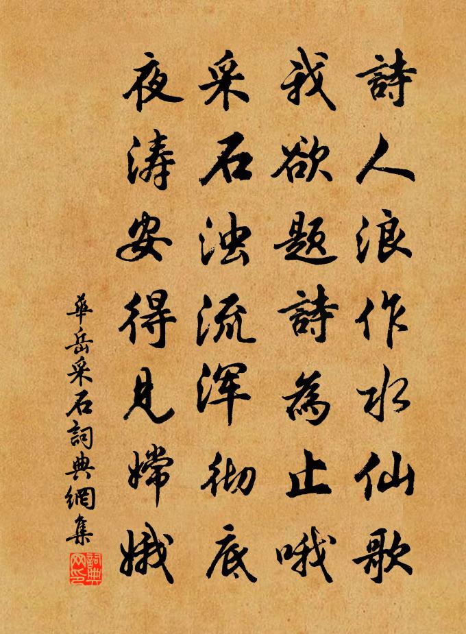 詩詞名句歷史字典書法欣賞書法字典國語詞典說文解字康熙字典古漢語字典標 題 作 者 詩 句 採石作者:華岳 朝代:宋代採石原文詩人浪作水仙歌,我欲題詩為止喔。採石濁流渾徹底,夜濤安得見嫦娥。詩詞問答問:採石的作者是誰?答:華岳問:採石寫於哪個朝代?答:宋代華岳採石書法欣賞採石書法作品詩詞推薦浣溪沙張翥〔元代〕珍重千金一諾同。小紅樓上舞筵中。誰知別路太匆匆。愁殺二分無賴月,憑將萬里有情風。為傳訊息宋家東。贈鄰女(一作寄李億員外)魚玄機〔唐代〕羞日遮羅袖,愁春懶起妝。易求無價寶,難得有心郎。枕上潛垂淚,花間暗斷腸。自能窺宋玉,何必恨王昌。贈魏國憲穆公主輓歌詞二首權德輿〔唐代〕漢制榮車服,周詩美肅雍。禮尊同姓主,恩錫大名封。外館留圖史,陰堂閉德容。睿詞悲薤露,千古仰芳蹤。秦樓雞犬陸游〔宋代〕貧家也復謹朝昏,小犬今年乞近村。糖秕無多深媿汝,狺狺終夜護籬門。鳳棲梧 客吳江張可久〔元代〕釣雪亭空人老矣。短笛春風,來往魚童喜。白石嘰頭青鏡里。一篙香暖桐花水。波面白虹收不起。兩兩沙鷗,逐逐端午內中帖子詞皇帝閣王珪〔唐代〕泰一扶皇運,真人感赤精。更逢端午節,君德萬方明。碧玉歌蕭衍〔南北朝〕杏梁日始照。蕙席歡未極。碧玉奉金杯。綠酒助花色。訴衷情(章貢別懷)嚴仁〔宋代〕一聲水調解蘭舟。人間無此愁。無情江水東流去,與我淚爭流。人已遠,更回頭。苦凝眸。斷魂何處,梅花岸曲,楊柳曹豳〔宋代〕春至風花各自榮,就中楊柳最多情。自從初學宮腰舞,直至飄綿不老成。次韻王定國得潁倅二首蘇軾〔宋代〕滔滔四海我知津,每愧先生植杖芸。自少多言晚聞道,從今閉口不論文。灩翻白獸樽中酒,歸煮青泥坊底芹。要識挽平山菊澗陳普〔宋代〕獲接阿戎裾,殷勤便手盧。開緘伯淳坐,入夢孔明廬。敬事期身役,摳趨刻歲余。天翁如錯誤,流涕看苫苴。送金潮州三首劉克莊〔宋代〕虞翻骨體素多屯,垂老遭逢白髮新。豈有一辭裨袞斧,亦無三制報絲綸。孤臣命薄難諧世,明主恩深欠殺身。不道念往王炎〔宋代〕有姑共饘粥,有子自抱乳。人亦有困窮,子獨最艱苦。晚歲未即安,此身先逝矣。逝者不可作,在者誰與處。欲以慶清朝佚名〔宋代〕朏月生西,杓星建未,畫堂晝景偏長。天生英傑,獨向此炎光。超卓凡塵表物,精神秋水自清涼。真奇特,清溝挺水調歌頭 壽雪齊王惲〔元代〕高齋際晴雪,萬象入遐觀。文章在公餘事,聞望到歐韓。千古微茫洙泗,浩浩發源伊洛,百折障狂瀾。歌詠武公志讀故許昌薛尚書詩集鄭谷〔唐代〕篇篇高且真,真為國風陳。澹薄雖師古,縱橫得意新。翦裁成幾篋,唱和是誰人。華岳題無敵,黃河句絕倫。吟殘次曾宏甫見過二首韻曾幾〔宋代〕客有過蘭若,交情似竹林。野花無可落,村酒不宜斟。又得清新句,如聞謦欬音。南坡盟好在,為問幾時尋。虞美人吳儆〔宋代〕雙眸翦水團香雪。雲際看新月。生綃籠粉倚窗紗。全似瑤池疏影、浸梅花。金翹翠靨雙蛾淺。斂袂低歌扇。羞紅膩昭君怨(送晁楚老游荊門)辛棄疾〔宋代〕夜雨剪殘春韭。明日重斟別酒。君去問曹瞞。好 * 。試看如今白髮。卻為中年離別。風雨正崔嵬。早歸來。林可山至葉茵〔宋代〕梅花山底伴雲閒,謾逐閒雲出故山。君慰我思君莫去,一時先遣白雲還。名句推薦東風楊柳欲青青。煙淡雨初晴。晏殊《訴衷情·東風楊柳欲青青》 武帝宮中人去盡,年年春色為誰來。岑參《登古鄴城》 功名富貴逐世轉移,而氣節千載一時。洪應明《菜根譚·概論》 多情只有春庭月,猶為離人照落花。張泌《寄人》 撥雪尋春,燒燈續晝。毛滂《踏莎行·元夕》 長相思,摧心肝。李白《長相思三首》 欹枕數秋天,蟾蜍下早弦。納蘭性德《菩薩蠻·蕭蕭幾葉風兼雨》 三顧頻煩天下計,兩朝開濟老臣心。杜甫《蜀相》 順天意者,義政也;反天意者,力政也。墨子《墨子·26章 天志(上)》 黃河萬里觸山動,盤渦轂轉秦地雷。李白《西嶽雲台歌送丹丘子》