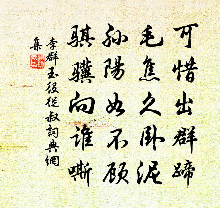 詩詞名句歷史字典書法欣賞書法字典國語詞典說文解字康熙字典古漢語字典標 題 作 者 詩 句 役從叔作者:李群玉 朝代:唐代役從叔原文可惜出群蹄,毛焦久臥泥。孫陽如不顧,騏驥向誰嘶。詩詞問答問:役從叔的作者是誰?答:李群玉問:役從叔寫於哪個朝代?答:唐代李群玉役從叔書法欣賞役從叔書法作品注釋全唐詩:卷570-14詩詞推薦赤土崗一層塔易士達〔宋代〕山矮仙靈偏起敬,水無深淺有龍韜。近來不數稱尖者,此塔雖低反自高。殘句:王禹偁〔宋代〕且留重戴士風多。初夏雜興陸游〔宋代〕咄咄無窮事,騰騰暫寓身。月生知改朔,花盡覺經春。市哄朝沽酒,巫歌夜樂神。興來隨眾出,一笑不妨新。松原山行七絕趙蕃〔宋代〕涉水穿雲殊好在,自知元是箇中人。何時粗畢尚平志,衡岳匡廬收此身。淳熙三年發皇后冊寶十三首佚名〔宋代〕容典既膺,台備既正。羽術外列,揚顏中映。如帝如天,以莊以靚。六宮承式,二南流詠。夏夜陸游〔宋代〕散發荒池上,秋聲滿綠蒲。磷飛乘月暗,梟語似人呼。學問無新得,功名負壯圖。拾薪炊麥飯,隨事且枝梧。出微王峽讀子厚詩恍然偶作二絕句張嵲〔宋代〕驚湍絕壁窮天險,山水如斯世莫知。林邑峰巒瘴江水,發揮須待柳州詩。小重山(詹德秀生日)王之道〔宋代〕要識長生輩赤松。朱顏和綠髮,正丰茸。當年今日墮仙宮。佳氣鬱,香靄菊花風。一醉拚千鍾。小槽新釀美,玉泉王丞自鄞城歸又許入剡戴表元〔宋代〕江城醉別太匆匆,風雪家園一笑同。盡健不妨天予老,絕清那許鬼欺窮。簡書異日關誰事,燈火寒鄉賴此翁。幾度晚舟過臨平吳龍翰〔宋代〕煙鍾舂起夕陽愁,森森臨平春事幽。惟有風蒲愛吟客,岸邊繚亂綰行舟。和史志道侍郎游朝陽岩曾協〔宋代〕興來小渡喚方舟,霽色天教足勝游。但覺賞心追昔事,不知飛詔下皇州。班行便覺九天近,登覽何辭一日留。懸想清心鏡 因何先生往寧海,作詞以寄鄉人馬鈺〔元代〕勸鄉人,當省悟。浮利浮名,不堅不固。妻男是、走骨行屍,自身是臭腐。早因頭,投真趣。學取馬風,樂然歸去徑坂左司使君惠和近詩為親而喜合天理之公得趙汝騰〔宋代〕何曾學圃學為農,陋巷蕭然白髮翁。便拜馮唐長郎署,更榮弘景相中。詔褒忠孝垂青史,上想儀型遣畫工。莊叟湛頌古二十一首釋正覺〔宋代〕千鄉萬里尋知己,一語臨禨不契梁。面壁九年居少室,覓心千古累神光。伏虎壇胡融〔宋代〕顗公天人師,猛虎屢欲瞋。形體掘槁木,鷙心化為仁。猥廁龍象側,而作貓犬馴。礪齒怖天魔,掉尾迎山君。西伯酬趙二侍御使西軍贈兩省舊僚之作張九齡〔唐代〕石室先鳴者,金門待制同。操刀嘗願割,持斧竟稱雄。應敵兵初起,緣邊虜欲空。使車經隴月,征旆繞河風。忽枉雨望方岳〔宋代〕前溪雨埋村,咫尺不我過。雷霆但濛鴻,林莽亦掀簸。竟微一飄灑,起此北窗臥。對面自胡越,孰為天宇大。得非論語絕句一百首張九成〔宋代〕夫子當時議逸民,舉皆未必見其真。唯吾無可無不可,所以巍然號聖人。奉和聖制送張尚書巡邊胡皓〔唐代〕燕公為漢將,武德奉文思。利用經戎莽,英圖葉聖詒。塞沙制長策,窮石卷搖旗。萬里要相賀,三邊又在茲。棱威謝侯彥明惠白蓮栽張栻〔宋代〕添得湖光百畝余,湖邊早已成菰蒲。更移玉井峰頭種,還有花開十丈無。名句推薦春草如有情,山中尚含綠李白《金門答蘇秀才》 共敵不如分敵,敵陽不如敵陰。佚名《三十六計·圍魏救趙》 越鳥巢乾後,歸飛體更輕。李商隱《晚晴》 人煙寒橘柚,秋色老梧桐。李白《秋登宣城謝朓北樓》 長相思,長相思。晏幾道《長相思·長相思》 爐火照天地,紅星亂紫煙。李白《秋浦歌十七首》 俄而未霰零,密雪下。謝惠連《雪賦》 人之生利也,然且猶尚有節;葬埋者,人之死利也,夫何獨無節於此乎。墨子《墨子·22章 節用(下)》 京口瓜洲一水間,鐘山只隔數重山王安石《泊船瓜洲》 烏啼鵲噪昏喬木,清明寒食誰家哭。白居易《寒食野望吟》
