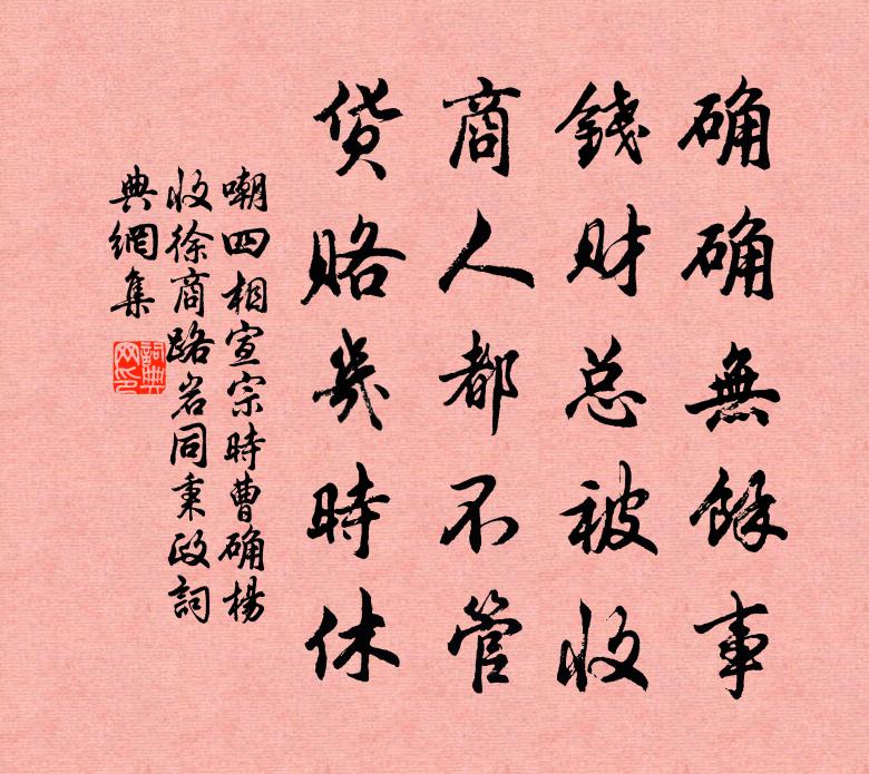 確確無餘事,錢財總被收。商人都不管,貨賂幾時休。