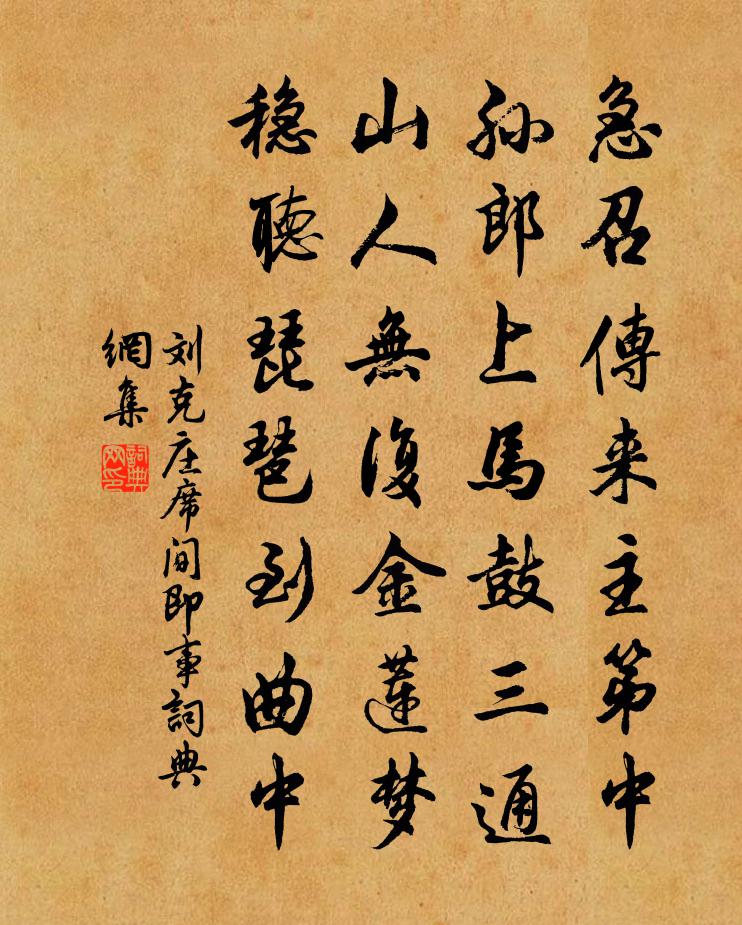 急召傳來主第中,孫郎上馬鼓三通。山人無復金蓮夢,穩聽琵琶到曲中。