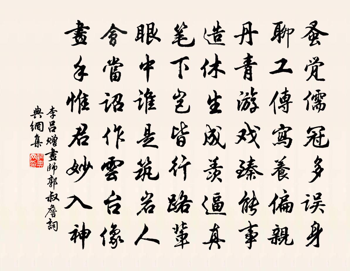 詩詞名句歷史字典書法欣賞書法字典國語詞典說文解字康熙字典古漢語字典標 題 作 者 詩 句 贈畫師郭叔詹作者:李呂 朝代:宋代贈畫師郭叔詹原文蚤覺儒冠多誤身,聊工傳寫養偏親。丹青遊戲臻能事,造休生成羨逼真。筆下豈皆行路輩,眼中誰是築岩人。會當詔作雲台像,畫手惟君妙入神。詩詞問答問:贈畫師郭叔詹的作者是誰?答:李呂問:贈畫師郭叔詹寫於哪個朝代?答:宋代李呂贈畫師郭叔詹書法欣賞贈畫師郭叔詹書法作品詩詞推薦和陳及之孫應時〔宋代〕不妨客子歸路滑,且喜雨來天破慳。劍南劍北好顏色,吾從心事略相關。宮詞楊皇后〔宋代〕小樣龍盤集翠毬,金羈緩控五花騮。繡旗高處鈞天奏,御捧先過第一籌。元日立春三絕秦觀〔宋代〕此度春非草草回,美人休著剪刀催。直須殘臘十分盡,始共新年一併來。鴛鴦湖棹歌 之一朱彝尊〔清代〕蟹舍漁村兩岸平,菱花十里棹歌聲。依家放鶴洲前水,夜半真如塔火明。朝中措元好問〔金代〕御香新拆紫囊封。苒苒綠雲叢。開晚只嗔寒勒,妝成又怕晴烘。化工也為,花中第一,薰染偏濃。誰有石家紅錦,長干行陳與義〔宋代〕妾家長乾里,春慵晏未起。花香襲夢回,略略事梳洗。妝檯罷窺鏡,盛色照江水。郎帆十幅輕,渾不聞櫓聲。曲岸病後遇王倚飲,贈歌杜甫〔唐代〕麟角鳳觜世莫識,煎膠續弦奇自見。尚看王生抱此懷,在於甫也何由羨。且遇王生慰疇昔,素知賤子甘貧賤。酷見和景仁瓊林席上偶成司馬光〔宋代〕念昔瓊林賜宴歸,彩衣綠綬正相宜。將雛雖復慰心喜,負米翻成觸目悲。殿角花猶紅勝火,樽前發自白如絲。桂林宣武軍鎮作王彥威〔唐代〕天兵十萬勇如貔,正是酬恩報國時。汴水波瀾喧鼓角,隋堤楊柳拂旌旗。前驅紅旆關西將,坐間青娥趙國姬。寄語和薛先輩見寄初秋寓懷即事之作二十韻韋莊〔唐代〕玉律初移候,清風乍遠襟。一聲蟬到耳,千炬火然心。岳靜雲堆翠,樓高日半沉。引愁憎暮角,驚夢怯殘砧。露白江上使風呈裴宣州耀卿張九齡〔唐代〕江路與天連,風帆何淼然。遙林浪出沒,孤舫鳥聯翩。常愛千鈞重,深思萬事捐。報恩非徇祿,還逐賈人船。紹興朝日十首佚名〔宋代〕[太簇為徵]周祀及軒,漢制中宮,漢制中宮。肸鄉是屈,禮神以兄。我潔期壁,我肥斯性。神兮燕享,鑒觀孔明辭東廟途中作曾豐〔宋代〕海近微茫白,山窮次第平。固然天遠大,加以眼高明。草木驚秋意,松先撓客情。西風莫相惱,歸計此回成。聞杜鵑趙時韶〔宋代〕雨過山山翠欲流,杜鵑要好莫啼休。錦城宮殿多菸草,枉與春風作對頭。寄院中諸公孟郊〔唐代〕奕奕秋水傍,駸駸綠雲蹄。月仙有高曜,靈鳳無卑棲。翠色繞雲谷,碧華凝月溪。竹林遞歷覽,雲寺行攀躋。冠豸贈南嶽宣義大師英公蘇德祥〔宋代〕學就書聞在道林,幾年辛苦用身心。九霄雨露酬知早,百首風騷立意深。青白野雲閒里臥,古今碑碣醉中尋。因何次韻仁近見和懷歸五首方回〔宋代〕端能何地脫塵寰,萬壑松風夢寐間。無限三槐仍九棘,孰知東國與西山。聲名赫奕終非福,滋味悠長莫若閒。馬足西溪冬夜曾協〔宋代〕並埋松柏與雲齊,月夜青山一望低。山鳥不驚人跡絕,步隨流水到前溪。弋陽訪古施肩吾〔唐代〕行逢葛溪水,不見葛仙人。空拋青竹杖,咒作葛陂神。次韻季長見示陸游〔宋代〕倚遍南樓十二欄,長歌相屬寓悲歡。空懷鐵馬橫戈意,未試冰河墮指寒。成敗極知無定勢,是非元自要徐觀。中原名句推薦語來江色暮,獨自下寒煙。李白《尋雍尊師隱居》 因風吹火,用力不多。佚名《增廣賢文·上集》 差若毫釐,謬以千里。魏收《魏書·列傳·卷六十六》 沙場烽火連胡月,海畔雲山擁薊城。祖詠《望薊門》 歌中醉倒誰能恨,唱罷歸來酒未消。晏幾道《鷓鴣天·小令尊前見玉簫》 教人怎不傷情。覺幾度、魂飛夢驚。劉過《柳梢青·送盧梅坡》 不覺新涼似水,相思兩鬢如霜。劉辰翁《西江月·新秋寫興》 浮雲終日行,遊子久不至。杜甫《夢李白二首·其二》 長江巨浪征人淚,一夜西風共白頭。宋琬《江上阻風》 東風楊柳欲青青。煙淡雨初晴。晏殊《訴衷情·東風楊柳欲青青》