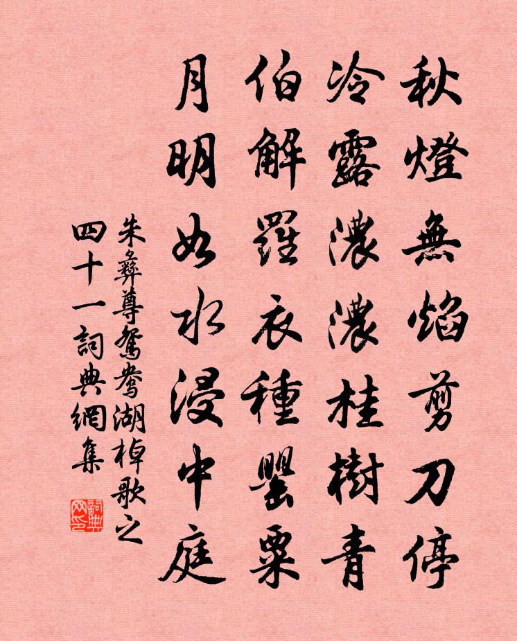 朱彝尊鴛鴦湖棹歌 之四十一書法欣賞