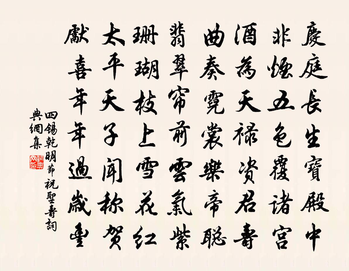 詩詞名句歷史字典書法欣賞書法字典國語詞典說文解字康熙字典古漢語字典標 題 作 者 詩 句 乾明節祝聖壽作者:四錫 朝代:宋代乾明節祝聖壽原文慶庭長生寶殿中,非煙五色覆諸宮。酒為天祿資君壽,曲奏霓裳樂帝聰。翡翠簾前雲氣紫,珊瑚枝上雪花紅。太平天子聞稱賀,先喜年年過歲豐。詩詞問答問:乾明節祝聖壽的作者是誰?答:四錫問:乾明節祝聖壽寫於哪個朝代?答:宋代四錫乾明節祝聖壽書法欣賞乾明節祝聖壽書法作品詩詞推薦玉麟堂會諸司觀牡丹酴醾三絕范成大〔宋代〕莫向花前惜酒杯,一年一度有花開。浮生滿百今強半,歲歲看花得幾回。東皋十首晁補之〔宋代〕新植青桐小逕成,兩行萱草一時榮。春風百卉芳菲盡,長夏幽花卻稱情。木蘭花/玉樓春張先〔宋代〕去年春入芳菲國。青蕊如梅終忍摘。闌邊徒欲說相思,綠蠟密緘朱粉飾。歸來故苑重尋覓。花滿舊枝心更惜。鴛鴦句劉玄英〔宋代〕拋離火宅三千指,屏去門兵十萬家。雙溪驛翁世修〔宋代〕明月不隨雙派去,白雲長為數峰留。夜窗星火歸漁艇,曉檻晴嵐映市橋。次楊樂道韻六首其六用樂道舍人韻書十日事呈王安石〔宋代〕東門人物亂如麻,想見新韉照路華。午鼓已傳三刻漏,從官初賜一杯茶。匆匆殿下催分首,擾擾宮前聽賣花。歸去生查子楚娘〔宋代〕去年梅雪天,千里人歸遠。今歲雪梅天,千里人追怨。鐵石作心腸,鐵石剛猶軟。江海比君恩,江海深猶淺。無兔而用雞毛無直乾而用粗竹坐是二者故封川鄭剛中〔宋代〕小鏤松梢作管城,肉枯鱗瘦不妨輕。快隨醉客翩翩處,尚帶山頭風雨聲。李先輩昆仲見過宋祁〔宋代〕有客過窮巷,門羅日晏開。南州一榻下,平轝二龍來。霏雪欣談塵,炊菰乏案杯。自慚鄰壁焰,時照不燃灰。小師清泰請贊釋大觀〔宋代〕瞥喜瞥嗔,沒頭沒腦。道泰時清,生風起草。等閒相撞,黑漆竹篦劈面來。無禪可談,三寸舌頭胡亂掃。九九百百冬日懷竟陵管氏梅橋四首張耒〔宋代〕小小園林點點梅,如今綽約為誰開。只應清夜新霜里,依舊橫斜倒影來。秋雨排悶十韻陸游〔宋代〕今夏久無雨,從秋卻少晴。空濛迷遠望,蕭瑟送寒聲。衣潤香偏著,書蒸蠹欲生。壞檐聞瓦墮,漲水見堤平。溝溢十絕句呈章茂深安撫陳造〔宋代〕詩伯於今第一流,清篇傳誦到鰲頭。共推句法源流遠,伯仲夔州只楚州。過長灘李新〔宋代〕尾劄泥塗賤此笛,手提雞肋巒虛名。蘆花伴我頭俱白,山色迎秋意轉清。沙軟馬留金褭印,雁歸灘列水犀兵。尚能贈王君詔道人郭印〔宋代〕潤屋金多笑不居,卻從象罔索玄珠。千年古鏡心長靜,萬里飛雲身自孤。空里結空空復有,夢中占夢夢元無。休將贈泉守趙表之二首黃公度〔宋代〕扁舟昔艤浙江邊,曾醉王孫玳瑁筵。竹杖芒鞵晚城上,金荷銀燭夜堂前。宦遊我輩聊復爾,聚散人間亦偶然。誰料和代器之蘇軾〔宋代〕雨過郊原一番新,尋芳車馬踏無塵。普天冷食聞前古,蕭寺清游屬兩人。不作佺期問新曆,頗同之問感余春。明年宮詞效王建五首張耒〔宋代〕蓮燭千枝夜宴遲,君王索筆寫新詩。宮人和得爭先進,偏愛宋家兄弟詞。木蘭花慢(柳浪聞鶯)周密〔宋代〕晴空搖翠浪,畫禽靜、霽煙收。聽暗柳啼鶯,新簧弄巧,如度秦謳。誰綢。翠絲萬縷,颺金梭、宛轉織芳愁。風裊踏莎行(泰妓胡芳來常隸籍,以其端嚴如木偶,人因目之為佛,乃作是雲)蔡伸〔宋代〕如是我聞,金仙出世。一超直入如來地。慈悲方便濟群生,端嚴妙相誰能比。四眾歸依,悉皆歡喜。有情同赴龍華名句推薦婿為燕國王,身被詔獄加。李白《秦女休行》 曾伴浮雲歸晚翠,猶陪落日泛秋聲。高蟾《金陵晚望》 情似遊絲,人如飛絮。淚珠閣定空相覷。周紫芝《踏莎行·情似遊絲》 仁不異遠,義不辭難班固《漢書·紀·武帝紀》 紛披乍依迥,掣曳或隨風。李世民《詠興國寺佛殿前幡》 明犯強漢者,雖遠必誅。班固《漢書·傳·傅常鄭甘陳段傳》 記當日、門掩梨花,翦燈深夜語。史達祖《綺羅香·詠春雨》 君子不自大其事,不自尚其功戴聖《禮記·表記》 西風多少恨,吹不散眉彎。納蘭性德《臨江仙·寒柳》 凡與敵戰,須要選揀勇將銳卒,使為先鋒,一則壯我志,一則挫敵威。佚名《百戰奇略·第一卷·選戰》