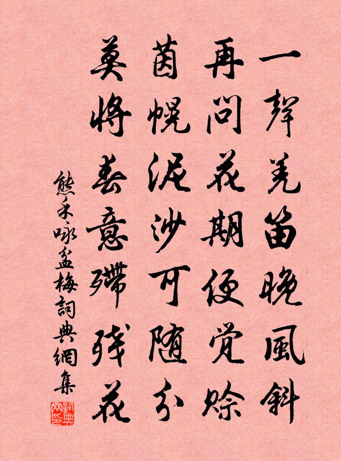 詩詞名句歷史字典書法欣賞書法字典國語詞典說文解字康熙字典古漢語字典標 題 作 者 詩 句 詠盆梅作者:熊禾 朝代:宋代詠盆梅原文一聲羌笛晚風斜,再問花期便覺賒。茵幌泥沙可隨分,莫將春意殢殘花。詩詞問答問:詠盆梅的作者是誰?答:熊禾問:詠盆梅寫於哪個朝代?答:宋代熊禾詠盆梅書法欣賞詠盆梅書法作品詩詞推薦送虔州通判周茂叔對移永州程師孟〔宋代〕移官遠過耒陽西,好景重重合盡題。永水自然勝灨水,浯溪應不讓濂溪。沙頭候吏瞻旗腳,境上鄉人待馬蹄。會是句楊億〔宋代〕愁里酒盃浮太白,夢回香塚上孤青。偈頌十二首釋道璨〔宋代〕土木場中輥一回,平生已眼豁然開。廣寒宮殿無關鑰,撞破髑髏歸去來。沁園春(同前)劉克莊〔宋代〕我夢見君,戴飛霞冠,著宮錦袍。與牧之高會,齊山詩酒,謫仙同載,採石風濤。萬卷星羅,千篇電掃,肯學窮兒大滌洞天留題倪允文〔宋代〕巢父灘頭甫著鞭,名山入眼驛程邊。迂迴僅費商於地,領袖寧煩一介先。木蘭花(海棠·三之二·林鐘商)柳永〔宋代〕東風催露千嬌面。欲綻紅深開處淺。日高梳洗甚時忄欠,點滴燕脂勻未遍。霏微雨罷殘陽院。洗出都城新錦段。美次韻張守勸耕二首陳造〔宋代〕三揖清揚歲兩更,煩公倒屣費逢迎。抽簪仕籍心彌厲,撰屨詞壇計欲成。西洛況聞高紙價,蘇州從昔擅詩聲。拙衰觀瀑布圖劉宰〔宋代〕仰觀山模糊,俯視山歷歷。見卑不見高,此恨通今昔。觀者笑且言,畫手非用力。安知畫工心獨苦,世上悠悠幾人仁宗皇帝輓辭四首王安石〔宋代〕憑几微言絕,群臣涕泗揮。哀號 * 陛,縞素九重圍。天上仙遊遠,宮中御座非。最悲帷幄侍,不復未明衣。【中呂】紅繡鞋_竹衫兒並刀喬吉〔元代〕竹衫兒並刀剪龍鬚為寸,玉絲穿龜背成文,襟袖清涼不沾塵。汗香晴帶雨,肩瘦冷搜雲,是玲瓏剔透人。浹背全無祝英台近(後溪次韻日熙堂主人)周密〔宋代〕殢餘酲,尋舊雨,愁與病相半。綠意陰陰,絲竹靜深院。絕憐事逐春移,淚隨花落,似翦斷、鮫房珠串。喜重見。除日答夢得同發楚州白居易〔唐代〕共作千里伴,俱為一郡回。歲陰中路盡,鄉思先春來。山雪晚猶在,淮冰晴欲開。歸歟吟可作,休戀主人杯。臨清樓釋行海〔宋代〕樓影斜侵賀鑑湖,月隨天遠極蒼梧。青山不受秦封禪,白鳥猶驚越霸圖。煙帶夕陽籠野樹,雨生春漲沒平蕪。好詩問春吟邵雍〔宋代〕自古言花須說鶯,鶯花本合一時行。因何花謝鶯才至,浪得鶯花相與名。輒欲問春春不應,私於蜂蝶有何情。流鶯重到霅隴衛宗武〔宋代〕少壯記曾游,茲來營首丘。青山不改色,白髮自多愁。寂寂千年晚,蕭蕭風雨秋。世緣何日了,一笑問盟鷗。鹽角兒歐陽修〔宋代〕人生最苦,少年不得,鴛幃相守。西風時節,那堪話別,雙蛾頻皺。暗消魂,重回首。奈心兒里、彼此皆有。後時送蓬庵梵老王炎〔宋代〕緩行聊復倩人扶,炯炯精神兩碧矑。落筆語言清透骨,恐公胸次有冰壺。登巾山陳知柔〔宋代〕司馬胸中著雲夢,杜陵眼底蓋乾坤。吾衰不復論茲事,飽看孤帆落遠村。鷓鴣天劉秉忠〔元代〕殘月低簾掛玉鉤。東風簾*思如秋。夢魂不被楊花攪,池面還添翠壓稠。紅叱撥,翠驊騮。青山隱隱水悠悠。行人憶舊遊(題南樓)龍端是〔宋代〕問南樓月色,十載相疏,何似今宵。舊雨菰蒲國,想波光雁影,遠撼沅瀟。擬蘇堤上楊柳,煙碧為誰搖。嘆庾扇塵名句推薦君子泰而不驕,小人驕而不泰。孔子弟子《論語·子路篇》 剛待不思量,吹一片、簫聲過牆。項鴻祚《太常引·客中聞歌》 元宵佳節,融和天氣,次第豈無風雨。李清照《永遇樂·落日熔金》 弄兒床前戲,看婦機中織鮑照《擬行路難·其六》 洞門高閣靄餘輝,桃李陰陰柳絮飛。王維《酬郭給事 / 贈郭給事》 榮以榮人者榮,禍以禍人者禍。來俊臣《羅織經·瓜蔓卷第十二》 關山多雨雪,風水損毛衣。李遠《詠雁》 傷心千古,秦淮一片明月!薩都剌《念奴嬌·登石頭城次東坡韻》 語之所貴者意也,意有所隨。意之所隨者,不可言傳也。莊子《莊子·外篇·天道》 日日雨不斷,愁殺望山人。賈島《望山》
