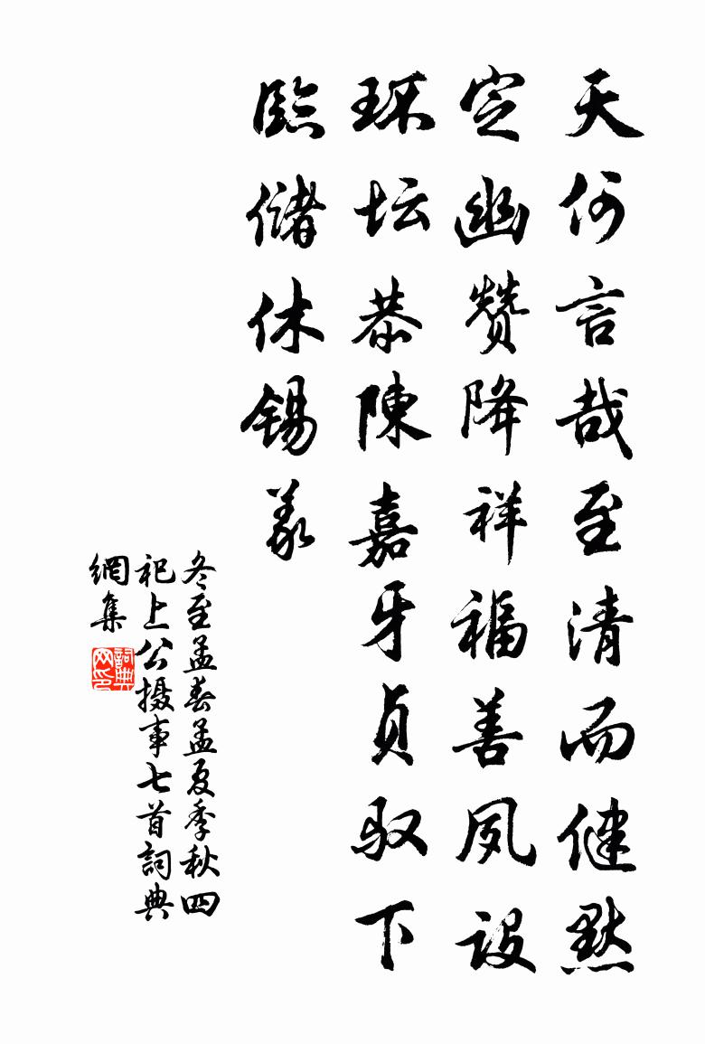 詩詞名句歷史字典書法欣賞書法字典國語詞典說文解字康熙字典古漢語字典標 題 作 者 詩 句 冬至孟春孟夏季秋四祀上公攝事七首作者:佚名 朝代:宋代原文天何言哉,至清而健。默定幽贊,降祥福善。夙設環壇,恭陳嘉牙。貞馭下臨,儲休錫義。詩詞問答問:《冬至孟春孟夏季秋四祀上公攝事七首》的作者是誰?答:佚名問:該詩寫於哪個朝代?答:宋代問:佚名的名句有哪些?答:佚名名句大全書法欣賞冬至孟春孟夏季秋四祀上公攝事七首書法作品詩詞推薦和程德裕頌五首黃庭堅〔宋代〕如來剎剎與塵塵,北斗南箕透法身。金粟默然軻好辯,唱歌須是帝鄉人。劉監倉家煎米粉作餅子余云為甚酥潘邠老家造蘇軾〔宋代〕一杯連坐兩髯棋,數片深紅入座飛。十分瀲灩君休訴,且看桃花好麵皮。野飲花間百物無,杖頭惟掛一葫蘆。已傾江上楓成彥雄〔唐代〕江楓自蓊鬱,不競松筠力。一葉落漁家,殘陽帶秋色。明日復理夢中意作陸游〔宋代〕白盡髭鬚兩頰紅,頹然自以放名翁。客從謝事歸時散,詩到無人愛處工。高掛蒲帆上黃鶴,獨吹銅笛過垂虹。閒人【正宮】端正好_高隱訪知音薛昂夫〔元代〕高隱訪知音習酬和,也不問名利如何。不貪不愛隨緣過,把世事都參破。【滾繡球】嘆光陰疾似梭,想人生能幾何旅食有作趙蕃〔宋代〕旅食頻年倦,田居樂事遙。春余桑枯靜,波泛鷺鷗驕。折竹深防筍,撐船滿載苗。新詩隨見寫,舊發不勝凋。聞西兵復至又為逃隱計二首陳著〔宋代〕軍屯多似撒星沙,夜月猶聞奏月笳。尚有空囊隨杜甫,幸無複壁累王涯。草根木實逃生飯,石室泥龕到處家。天下秋晚雜書三十首方回〔宋代〕獨吟不愧聲,獨立不愧影。獨行不愧屐,獨臥不愧枕。昏昏十日醉,炯炯一夕醒。古瓶插殘菊,老碗貯凍茗。三嗅送談命曾南翔二首楊萬里〔宋代〕官職牽人也可憐,老來那更問行年。渠儂解事無它語,道我慈親壽八千。柳枝朱敦儒〔宋代〕江南岸,江北岸。折送行人無盡時。恨分離。酒一杯,淚雙垂。君到長安百事違。幾時歸。句歐陽鈇〔宋代〕巷南巷北人招飲,一雨一晴花耐看。詠月三首王安石〔宋代〕寒光乍洗山川瑩,清影遙分草樹纖。萬里更無雲物動,中天只有兔隨蟾。依韻自和送詩寄潘歛州梅堯臣〔宋代〕潘侯擅詩筆,五色神授江。世家有大勛,佐舜同厖降。子孫逢太平,少小事書窗。源流本慷慨,吐論皆經邦。量猶庭前一蓮著花樓鑰〔宋代〕門外荷蓮浥露華,綠雲平地擁秋霞。病夫不能出門去,且看庭前第一花。桂州歲暮戎昱〔唐代〕歲暮天涯客,寒窗欲曉時。君恩空自感,鄉思夢先知。重誼人愁別,驚棲鵲戀枝。不堪樓上角,南向海風吹。南望樓盧僎〔唐代〕去國三巴遠,登樓萬里春。傷心江上客,不是故鄉人。答劉長卿蛇浦橋月下重送嚴維〔唐代〕月色今宵最明,庭閒夜久天清。寂寞多年老宦,殷勤遠別深情。溪臨修竹煙色,風落高梧雨聲。耿耿相看不寐,遙簡單令胡寅〔宋代〕十月絺無斁,中冬木尚榮。原為寒玉佩,思灌閬風清。之子牛刀暇,尋余兔逕行。已攜從事至,旋覺大庖盈。荒郡摸魚兒劉辰翁〔宋代〕正何須、陽關腸斷,吳姬苦勸人酒。中年懷抱縈縈處,看取伴煙和柳。柳搖首。笑飛到家山,已是酴醿後。留連話夢如愚珙劉子翬〔宋代〕驚破池塘夢,宵長不再眠。寒聲搖谷口,側月到床邊。一自芝蘭遠,都無翰墨傳。老懷安得寫,孤詠不成篇。名句推薦雷雨窈冥而未半,皦日籠光於綺寮。左思《三都賦》 晚鴉飛去,一枝花影送黃昏夏完淳《婆羅門引·春盡夜》 閣雪雲低,卷沙風急,驚雁失序。吳文英《永遇樂·探梅次時齋韻》 風驅急雨灑高城,雲壓輕雷殷地聲。劉基《五月十九日大雨》 大家做事尋常,小家做事慌張。佚名《增廣賢文·上集》 嚴近乎矜,然嚴是正氣,矜是乖氣;故持身貴嚴,而不可矜。王永彬《圍爐夜話·第四三則》 笛中聞折柳,春色未曾看。李白《塞下曲六首·其一》 遠夢歸侵曉,家書到隔年。杜牧《旅宿》 昔時人已沒,今日水猶寒。駱賓王《於易水送人 / 於易水送別》 夜中不能寐,起坐彈鳴琴。阮籍《詠懷八十二首·其一》