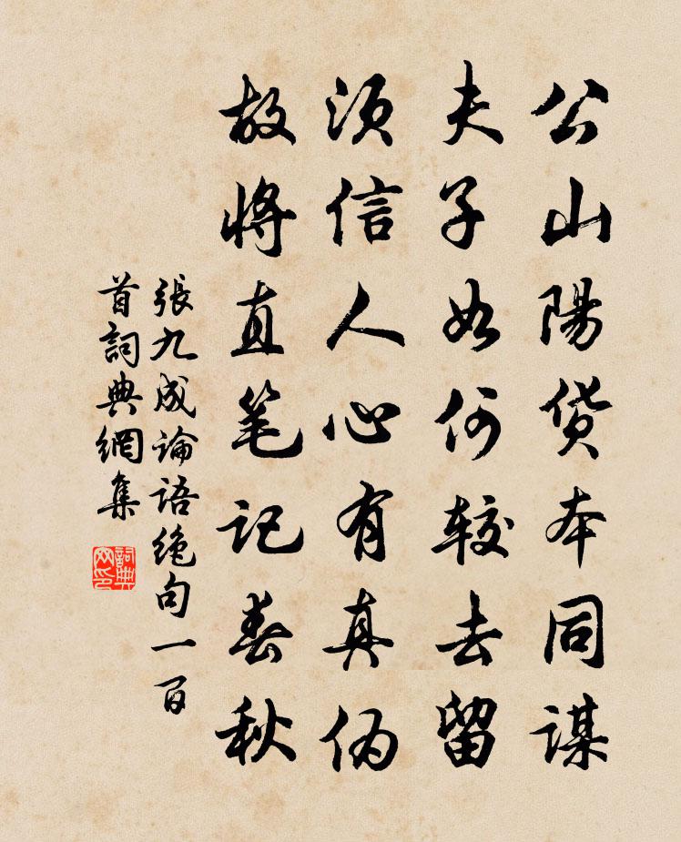 詩詞名句歷史字典書法欣賞書法字典國語詞典說文解字康熙字典古漢語字典標 題 作 者 詩 句 論語絕句一百首作者:張九成 朝代:宋代論語絕句一百首原文公山陽貨本同謀,夫子如何較去留。須信人心有真偽,故將直筆記春秋。詩詞問答問:論語絕句一百首的作者是誰?答:張九成問:論語絕句一百首寫於哪個朝代?答:宋代張九成論語絕句一百首書法欣賞論語絕句一百首書法作品詩詞推薦和余汝霖雪七絕胡寅〔宋代〕無數天花斗舞風,迷離玉色映寒空。共夸破臘逾三白,更喜新詩報屢豐。詠史孫應時〔宋代〕咄咄歸來技已窮,函書翻欲媚桓公。佳兒似此何須數,空使諸人恕乃翁。捧檄家山史衛卿〔宋代〕間居愧未能,淮幕冷於冰。家檄官無俸,山吟客有僧。池荒眠鷺石,樹折飲猿藤。寥薄誰相問,孤明雨夜燈。眉州借景亭汪元量〔宋代〕巍亭借景引壺觴,元佑詩人翰墨香。蒼峽雷霆龍意氣,碧崖煙雨豹文章。隔鄰修竹娟娟靜,夾道枯桑冉冉黃。水泛再韻謝張持甫過訪二首劉宰〔宋代〕道自周衰說異同,眼明伊洛振遺風。過人高行非難事,入聖微言本大公。道在鬼神常共在,術窮天地本無窮。三才平湖樂·采菱人語隔秋煙王惲〔元代〕采菱人語隔秋煙,波靜如橫練。入手風光莫流轉,共留連,畫船一笑春風面。江山信美,終非吾土,問何日是歸年舟中午睡楊萬里〔宋代〕一葉搖無定,昏然妙思通。化為漆園蝶,飛入大槐宮。有酒相勾引,無茶作寇戎。平生眠不足,還債櫓聲中。愁台王安石〔宋代〕頹垣斷漸有平沙,老木荒榛 * 家。河勢東南吹地坼,天形西北倚城斜。傾壺語罷還登眺,岸幘詩成卻嘆嗟。萬事偈頌一百二十三首釋普度〔宋代〕用文武火,運惡鉗錐。死學者偷心,開人天眼目。大用機前轉轆轆,十分慈悲,十分惡毒。六踞名藍兮一笑來歸,鞦韆韓偓〔唐代〕池塘夜歇清明雨,繞院無塵近花塢。五絲繩系出牆遲,力盡才瞵見鄰圃。下來嬌喘未能調,斜倚朱闌久無語。無語臨蛻遺詩晏潁〔宋代〕江外三千里,人間十八年。此行誰復見,一鶴上遼天。春日淇上作(一作漢口春)李嘉祐〔唐代〕淇上春風漲,鴛鴦逐浪飛。清明桑葉小,度雨杏花稀。衛女紅妝薄,王孫白馬肥。相將踏青去,不解惜羅衣。鹹淳元年乙丑冬同金陵制幕諸公游舊烏衣巷新陳著〔宋代〕王謝風流墮渺茫,黯然懷舊見新堂。山無多樹夕陽遠,梅始一花春意長。燕去有時來畫屋,鶴飛何日到青岡。休言次韻王適新燕蘇轍〔宋代〕好雨纖纖潤客衣,新來雙燕力猶微。似嫌春早無人見,故待簾開掠地飛。南國花期知不遠,中原寒劇未應歸。養雛頌古三十一首釋梵琮〔宋代〕燒紙無端引崇來,看看家鬼返為災。 * 弄門戶,背手掩來順手開。湘靈鼓瑟魏璀〔唐代〕瑤瑟多哀怨,朱弦且莫聽。扁舟三楚客,叢竹二妃靈。淅瀝聞餘響,依稀欲辨形。柱間寒水碧,曲里暮山青。良馬鸚鵡曲 四皓屏馮子振〔元代〕張良更姓記橋住。夜待旦遇個師父。一編書不為封留,字字鹹陽膏雨。借箸籌滅項興劉,到底學神仙去。待商山西卜運算元 謁友不遇王哲〔元代〕曩者見張公,索寫詞中信。王哲今朝故故來,甚沒個人相近。回首跨清飈,隨足雲霞趁。卻入全真復舊堂,把一點游棲霞宮張景脩〔宋代〕偶先諸邑過棲霞,恰費盧仝七碗茶。此會果然□邂逅,轉相尋覓到仙家。殿前歡·楚懷王貫雲石〔元代〕楚懷王,忠臣跳入汨羅江。《離騷》讀罷空惆悵,日月同光。傷心來笑一場,笑你個三閭強,為甚不身心放?滄浪名句推薦居高位者易驕,處佚樂者易侈。張廷玉《明史·列傳·卷二十四》 歸時休放燭光紅,待踏馬蹄清夜月。李煜《木蘭花·曉妝初了明肌雪》 來是空言去絕蹤,月斜樓上五更鐘。李商隱《無題四首》 幸於始者怠於終,繕其辭者嗜其利。曹雪芹《紅樓夢·第五十六回》 此已被私慾隔斷,不是知行的本體了。王陽明《傳習錄·卷上·徐愛錄》 安居不用架高堂,書中自有黃金屋。趙恆《勸學詩》 同為懶慢園林客,共對蕭條雨雪天。白居易《雪夜小飲贈夢得》 夫因兵死守蓬茅,麻薴衣衫鬢髮焦。杜荀鶴《山中寡婦 / 時世行》 北風夜卷赤亭口,一夜天山雪更厚。岑參《天山雪歌送蕭治歸京》 花意爭春,先出歲寒枝。辛棄疾《江神子·賦梅寄余叔良》