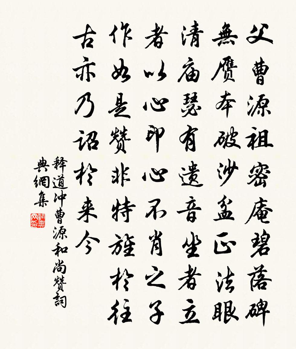 詩詞名句歷史字典書法欣賞書法字典國語詞典說文解字康熙字典古漢語字典標 題 作 者 詩 句 曹源和尚贊作者:釋道沖 朝代:宋代曹源和尚贊原文父曹源,祖密庵。碧落碑,無贗本。破沙盆,正1*1法眼。清廟瑟有遺音,坐者立者,以心印心。不肖之子,作如是贊。非特旌於往古,亦乃詔於來今。詩詞問答問:曹源和尚贊的作者是誰?答:釋道沖問:曹源和尚贊寫於哪個朝代?答:宋代釋道沖曹源和尚贊書法欣賞曹源和尚贊書法作品詩詞推薦滿庭芳 己卯七月十一日得穎吳景奎〔元代〕露洗新秋,天浮灝氣,桐孫初長庭隅。繃裁紅錦,門左記垂弧。白髮萱親笑道,於今見、四葉喜榮敷。天台路,吾送芮尊師王貞白〔唐代〕石上菖蒲節節靈,先生服食得長生。早知避世憂身老,近日登山覺步輕。黃鶴待傳蓬島信,丹書應換蕊宮名。他年秋遊六首邵雍〔宋代〕九月風光雖已暮,中州景物未全衰。眼觀秋色千萬里,手把黃花三兩枝。美酒易消閒歲月,青銅休照老容儀。若言題范文正公書伯夷頌後秦檜〔宋代〕高賢邈已遠,凜凜生氣存。韓范不時有,此心誰與論。沁園春佚名〔宋代〕大道無名,大音希聲,大器晚成。笑迷人管見,不言便了,似鑽冰取火,紐石為繩。使盡精神,虛勞神用,緣木求羈游餞別王勃〔唐代〕客心懸隴路,遊子倦江乾。槿豐朝砌靜,筱密夜窗寒。琴聲銷別恨,風景駐離歡。寧覺山川遠,悠悠旅思難。白雲庵四首逍遙子〔宋代〕洞底草蒲綠作坡,松根況有茯苓多。自能飽飯太平日,不學式微歌浩歌。詠梅陳亮〔宋代〕疏枝橫玉瘦,小萼點珠光。一朵忽先發,百花皆事香。欲傳春信息,不怕雪埋藏。玉笛休三弄,東君政主張。二月社日到都門見花卉初發宋庠〔宋代〕走馬東來冒驛塵,今年重識帝城春。自憐已作衰瓮熊,苑樹宮花笑 * 。舞曲歌辭。吳俞兒舞歌。劍俞陸龜蒙〔唐代〕枝月喉,棹霜脊,北斗離離在寒碧。龍魂清,虎尾白,秋照海心同一色。纛影咤沙乾影側。神豪發直,四睨之人股詩一首徐似道〔宋代〕一瓶儲粟一囊錢,兒學箕裘女紡磚。更買小丘吾事畢,勘書評畫了殘年。鄧器先北窗曾協〔宋代〕今人競圖南,朗朗百間屋。夫子胡不然,向晦一窗足。北窗吾亦愛,嘗謂所樂獨。豈知交遊中,昌歜或同欲。光澄頌古十首釋端裕〔宋代〕高堂公子醉雙陸,亂撒明珠發異光。一擲輸贏誰辨得,滿盤骰子不成雙。謁金門趙彥端〔宋代〕朱戶密。鎮鎖一庭春日。畫幕黃簾芳草碧。游蜂初未識。脆管么弦無力。青子綠陰如織。花滿深宮無路入。舊遊渾飽食王之道〔宋代〕予亦屬厭耳,女寬何嘆三。一簞儻知足,八珍自忘貪。駝峰擅西北,瑤柱夸東南。但願無是餒,藜羹非我慚。勿執古寄韓潮州劉叉〔唐代〕古人皆執古,不辭凍餓悲。今人亦執古,自取行坐危。老菊凌霜葩,獰松抱雪姿。武王亦至明,寧哀首陽飢。仲尼金峨途中鄭清之〔宋代〕石路索紆水繞村,酒帘深處見柴門。橫塘樹密鳩攜婦,老屋籬深犢有孫。麥莟菜花成綿繡,筍牙薤甲當雞豚。竹輿游近村陸游〔宋代〕行歷茶岡到藥園,卻從釣瀨入樵村。半衰半健意蕭散,不雨不晴天晏溫。薯蕷傍籬寒引蔓,菖蒲絡石瘦生根。參差中原民謠渡浮橋周麟之〔宋代〕流浮橋,黃流噴薄翻雲濤。駢頭巨艦寸金縴,翼以巨木維虹腰。戍河老兵三太息,顧語行人淚沾臆。去年造橋民力踏雲行劉處玄〔元代〕到處為家,鶉居無戀。要行便去雲遊轉。陰陽之外物難拘,長安咫尺真非遠。道樂希夷,死生永免。亘初一點光如名句推薦桑野就耕父,荷鋤隨牧童。孟浩然《田家元日》 未能拋得杭州去,一半勾留是此湖。白居易《春題湖上》 我報路長嗟日暮,學詩謾有驚人句。李清照《漁家傲·天接雲濤連曉霧》 所敬者寡,而悅者眾,此之謂要道也。孔子及其弟子《孝經·廣要道》 莫聽穿林打葉聲,何妨吟嘯且徐行。蘇軾《定風波·莫聽穿林打葉聲》 不知細葉誰裁出,二月春風似剪刀。賀知章《詠柳 / 柳枝詞》 白日麗飛甍,參差皆可見。謝朓《晚登三山還望京邑》 桃花塢裏桃花庵,桃花庵裏桃花仙。唐寅《桃花庵歌》 潯陽江頭夜送客,楓葉荻花秋瑟瑟。白居易《琵琶行 / 琵琶引》 自古逢秋悲寂寥,我言秋日勝春朝。劉禹錫《秋詞》