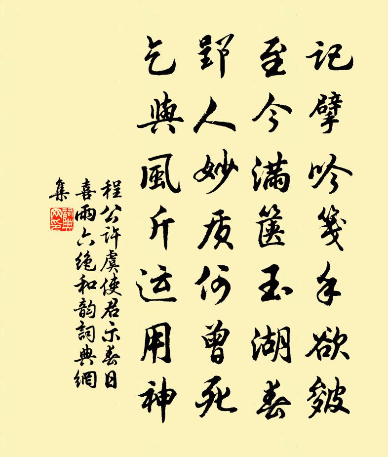 詩詞名句歷史字典書法欣賞書法字典國語詞典說文解字康熙字典古漢語字典標 題 作 者 詩 句 虞使君示春日喜雨六絕和韻作者:程公許 朝代:宋代虞使君示春日喜雨六絕和韻原文記擘吟箋手欲皴,至今滿篋玉湖春。郢人妙質何曾死,乞與風斤運用神。詩詞問答問:虞使君示春日喜雨六絕和韻的作者是誰?答:程公許問:虞使君示春日喜雨六絕和韻寫於哪個朝代?答:宋代程公許虞使君示春日喜雨六絕和韻書法欣賞虞使君示春日喜雨六絕和韻書法作品詩詞推薦初寒獨居戲作陸游〔宋代〕開殼得紫栗,帶葉摘黃甘。獨臥維摩室,誰同彌勒龕?宗文樹雞柵,靈照挈蔬籃。一段無生話,燈籠可與談。題畫廿四首唐寅〔明代〕山亭寥落接人稀,泥補柴門葉補衣。不起竹床頭似雪,已無心去問襌機。送友人往太原李頻〔唐代〕離亭聊把酒,此路徹邊頭。草白雁來盡,時清人去游。汾河流晉地,塞雪滿并州。別後相思夜,空看北斗愁。和醉中襲美先起次韻陸龜蒙〔唐代〕莫唱艷歌凝翠黛,已通仙籍在金閨。他時若寄相思淚,紅粉痕應伴紫泥。三姑石安麐〔宋代〕霧鬢煙鬟彷佛梳,老翁指點說三姑。娉婷不嫁非無意,誰是人間大丈夫。湖舟即事顧逢〔宋代〕樓閣青山里,闌乾幾處憑。樂同湖上酒,清在坐中僧。水影飛雙蝶,風聲磨一鷹。夕陽堪入畫,金蚓走春冰。賀新郎(西湖作呈章判鎮、留知縣)葛長庚〔宋代〕萬頃湖光綠。是處里、芙蓉金盞,木犀金粟。鷁御飄飄行水谷,正是蟹香橙熟。山色似、風梳雨沐。攜取阿嬌命豪贈僧五首。宗實上人(實即樊司空之子舍官位妻子出家)白居易〔唐代〕榮華恩愛棄成唾,戒定真如和作香。今古雖殊同一法,瞿曇拋卻轉輪王。淳熙八年端午帖子詞太上皇后合六首崔敦詩〔宋代〕萬年枝下綠陰長,拂石時來坐晚涼。別殿筌歌催宴早,千門鋪月靜焚香。古意宋祁〔宋代〕肆威矜逐逐,索黨恣狺狺。盜跖真知道,餘財欲汙人。表兄劉東玉提乾輓詩二首張鎡〔宋代〕襁褓予多疾,三年托謂陽。未能看擊罋,常是戲登床。轉首塵埃里,驚心歲月長。挽兄齎志去,傾淚人詩章。和韓子文五首曾協〔宋代〕誰人解遣醉時醒,始變鳴禽第一聲。似向幽人催蠟屐,水邊沙際看春生。孔廟口號李花開〔唐代〕破落三間屋,蕭條一旅人。不知負何事,生死厄於陳。珊知浴求頌釋正覺〔宋代〕妙觸宣明不洗塵,楞嚴會上悟心人。潛鱗窟宅半篙水,枯木形骸一杓春。涓滴量同法界性,發毛垢淨虛空身。南國漁家傲黃庭堅〔宋代〕憶昔藥山生一虎。華亭船上尋人渡。散卻夾山拈坐具。呈見處。繁驢橛上合頭語。千戶垂絲君看取。離鉤三寸無生次韻郭梅邊湯孤松見寄趙文〔宋代〕杜門卻掃馮敬通,何人載酒暖此翁。晝長書罷啼鳥寂,山水似我清而窮。山僧攜來兩詩卷,筆勢迅疾如追鋒。漁歌過故人舊宅王喬〔唐代〕故人軒騎罷歸來,舊宅園林閒不開。唯餘挾瑟樓中婦,哭向平生歌舞台。塞上鄭嚴〔唐代〕出門何處問西東,指畫翻為語論同。到此客頭潛覺白,未秋山葉已飄紅。帳前影落傳書雁,日下聲交失馬翁。早晚陪使君早春西亭送王贊府赴選(得歸字)岑參〔唐代〕西亭系五馬,為送故人歸。客舍草新出,關門花欲飛。到來逢歲酒,卻去換春衣。吏部應相待,如君才調稀。朝中措(和張文伯寒食日雨)王之道〔宋代〕從來寒食半陰晴。花底聽歌聲。昨夜滿城風雨,惜花還繫心情。海棠枝上,朱唇翠袖,欲斗輕盈。須藉嫣然一笑,名句推薦見善,修然必以自存也;見不善,愀然必以自省也。善在身,介然必以自好也;不善在身,菑然必以自惡也。荀子《荀子·修身》 關關雎鳩,在河之洲。窈窕淑女,君子好逑。佚名《關雎》 關山正飛雪,烽火斷無煙。王維《隴西行》 脈脈花疏天淡,雲來去、數枝雪。范成大《霜天曉角·梅》 佇立傷神。無奈輕寒著摸人。朱淑真《減字木蘭花·春怨》 遙知兄弟登高處,遍插茱萸少一人。王維《九月九日憶山東兄弟 / 九月九憶山東兄弟》 君子之於子,愛之而勿面,使之而勿視,道之以道而勿強。荀子《荀子·大略》 英雄者,胸懷大志,腹有良謀,有包藏宇宙之機,吞吐天地之志者也。羅貫中《三國演義·第二十一回》 思歸未可得,書此謝情人。李白《送郄昂謫巴中》 天覆吾,地載吾,天地生吾有意無。李泌《長歌行》