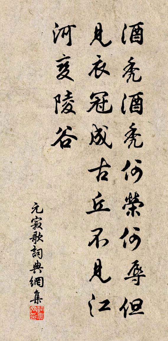 詩詞名句歷史字典書法欣賞書法字典國語詞典說文解字康熙字典古漢語字典標 題 作 者 詩 句 歌作者:元寂 朝代:唐代歌原文酒禿酒禿,何榮何辱。但見衣冠成古丘,不見江河變陵谷。詩詞問答問:歌的作者是誰?答:元寂問:歌寫於哪個朝代?答:唐代問:歌是什麼體裁?答:雜言元寂歌書法欣賞歌書法作品注釋全唐詩:卷825-33詩詞推薦朝元引四首陳陶〔唐代〕帝燭熒煌下九天,蓬萊宮曉玉爐煙。無央鸞鳳隨金母,來賀薰風一萬年。正殿雲開露冕旒,下方珠翠壓鰲頭。天雞灞上崔塗〔唐代〕長安名利路,役役古由今。征騎少閒日,綠楊無舊陰。水侵秦甸闊,草接漢陵深。紫閣曾過處,依稀白鳥沈。挽卓元夫國博一首劉克莊〔宋代〕仲氏聯芳比酥酪,長君獨冷飽虀鹹。五升日糴尤清苦,一枕風來且黑甜。儒館誰憐鄭公老,潁川空說許丞廉。朔齋呈陸嚴州五首趙蕃〔宋代〕簿領古白下,檄書走臨川。陳詩道所懷,奈此巍巍然。臨分得聞見,語以故有連。此意亦厚矣,乖離今十年。四牛圖頌釋元淨〔宋代〕混沌不分處,三緣未合時。神通難可測,佛眼莫能窺。坦蕩全軀白,安眠露地肥。為躭春色好,又被業風吹。錢知微卜賣天津橋佚名〔唐代〕兩頭點土,中心虛懸。人足踏跋,不肯下錢。立春范成大〔宋代〕候管灰初動,條風已發春。萬靈歸化育,一氣驗平均。農事牛先示,人情蠖欲伸。憂哉漢疏廣,樽酒過嘉辰。癸巳生日二首方回〔宋代〕夜來終日雨如傾,曉起樓頭喜漸晴。血氣衰微吾道勝,欲心死絕此身生。一區宅愧先人業,萬首詩垂後世名。蚊喙渡淮喜而有作姜特立〔宋代〕船過淮南岸,心如已到家。何常異風景,正爾辨戎華。病體辭深轍,征衣脫舊沙。江南即仙國,何必上星槎。蝶戀花·桐葉晨飄蛩夜語陸游〔宋代〕桐葉晨飄蛩夜語。旅思秋光,黯黯長安路。忽記橫戈盤馬處。散關清渭應如故。江海輕舟今已具。一卷兵書,嘆息東歸擬再訪呂所盤舟便不果盤有詩因次韻以謝丘葵〔宋代〕對酒殷勤問後期,出門一步便相思。自從剡曲回舟後,長憶巴山聽雨時。鶴髮無成應念我,貂裘已敝欲從誰。歸途次韻和酬知開封縣錢易學士見寄三首魏野〔宋代〕遠勞仙館客,相勉寄詩來。豈有口更嘆,兼無心可灰。貧資閒壽命,吟助道梯媒。信拙過朝暮,除能泥酒杯。贈施堯年老人葛立方〔宋代〕從今九夏即期頤,小楷猶搜賀雨詩。未得雨時曾過我,見君憂色上龐眉。暗香張炎〔宋代〕商隱。羽音遼邈。怪四檐晝悄,近來無鵲。木葉吹寒,極目凝思倚江閣。不信相如便老,猶未減、當時遊樂。但趁自邊江赴守鄱陽黃原道中作李彌遜〔宋代〕海南三年一夢成,北來重聽偃溪聲。凝雲帶雨留愁住,茂樹隨山送客行。秔稻沿崖畦上下,茅茨枕谷路縱橫。莫從司馬遷墓牟融〔唐代〕落落長才負不羈,中原回首益堪悲。英雄此日誰能薦,聲價當時眾所推。一代高風留異國,百年遺蹟剩殘碑。經過送錢承制赴廣西路分都監蘇軾〔宋代〕當年床我作表忠床碑,坐覺床江山氣未衰。舞鳳尚從天目下,收駒時有渥窪姿。踞床到處堪吹笛,橫槊何人解賦詩依韻和蔡相公宣賜王珪〔唐代〕翠芳亭畔曉霜寒,朱實離離覆御欄。況是園林都未有,初無法土略相干。黃欺晚菊垂金砌,圓並明珠落鈿盤。珍重游蘭溪 / 游沙湖蘇軾〔宋代〕黃州東南三十里為沙湖,亦曰螺師店。予買田其間,因往相田得疾。聞麻橋人龐安常善醫而聾。遂往求療。安常雖山中即事文天祥〔宋代〕山中方雨笠,天外忽晴絲。夕釣江澄練,春行路布棋。乾坤供俯仰,歲月任差池。有酒如澠在,何妨日問奇。名句推薦荷葉羅裙一色裁,芙蓉向臉兩邊開。王昌齡《採蓮曲》 誰問旗亭,美酒斗十千。賀鑄《行路難·縛虎手》 幾硯昔年游,於今成十秋。司馬光《送龔章判官之衛州·新及第》 度德而處之,量力而行之左丘明《左傳·隱公·隱公十一年》 晨起動征鐸,客行悲故鄉。溫庭筠《商山早行》 是以聖人不期修古,不法常可,論世之事,因為之備。韓非及後人《韓非子·五蠹》 重重疊疊上瑤台,幾度呼童掃不開。蘇軾《花影》 嶺水爭分路轉迷,桄榔椰葉暗蠻溪。李德裕《謫嶺南道中作》 眉睫才交,夢裡便不能張主;眼光落地,泉下又安得分明。陳繼儒《小窗幽記·集醒篇》 江山留勝跡,我輩復登臨。孟浩然《與諸子登峴山》